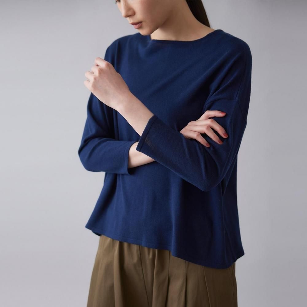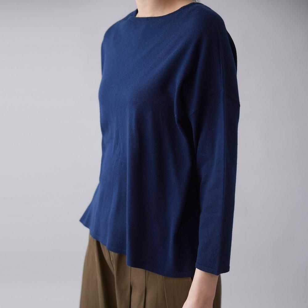 カシミヤのように滑らかな質感を持つウール100%のニットです。