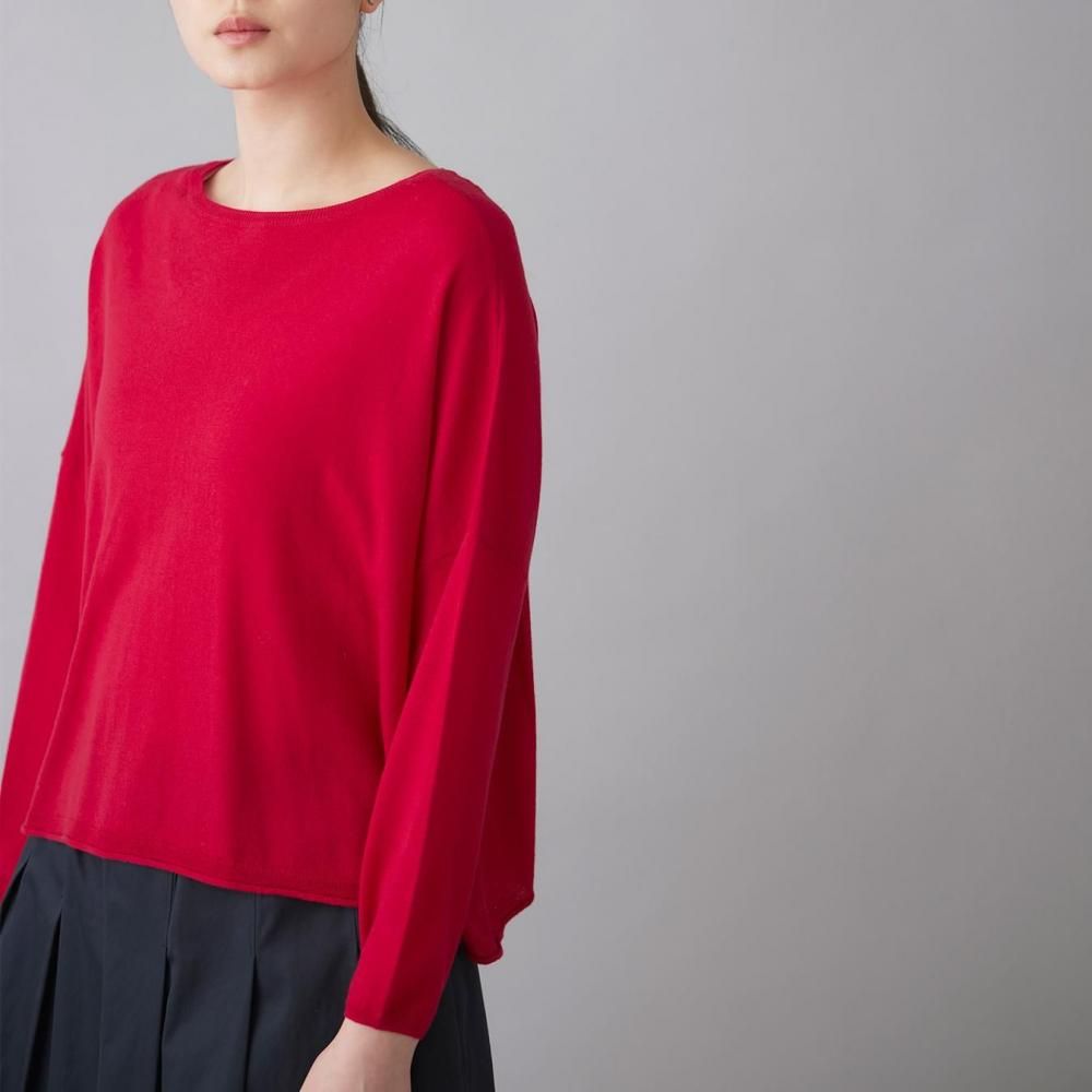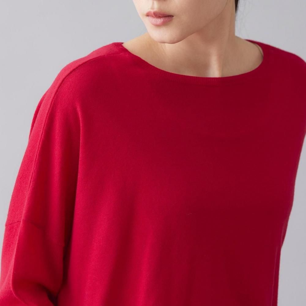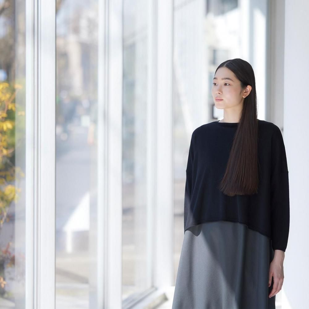 カシミヤのように滑らかな質感を持つウール100%のニットです。