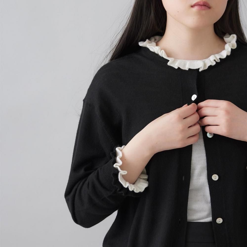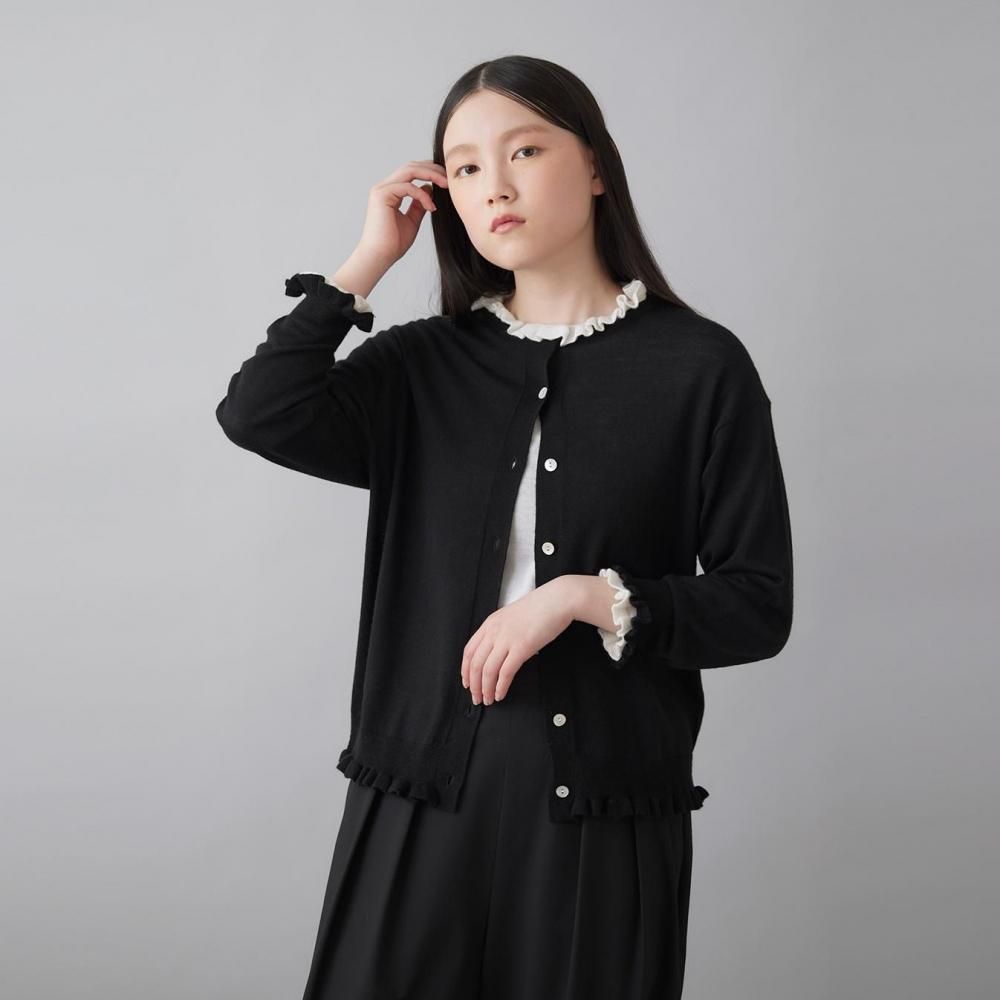 シーンを選ばず活躍する定番クロ。ラッフルの甘さを引き締め、大人のシックな着こなしを演出します。