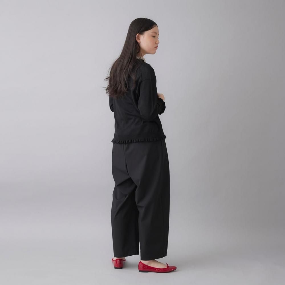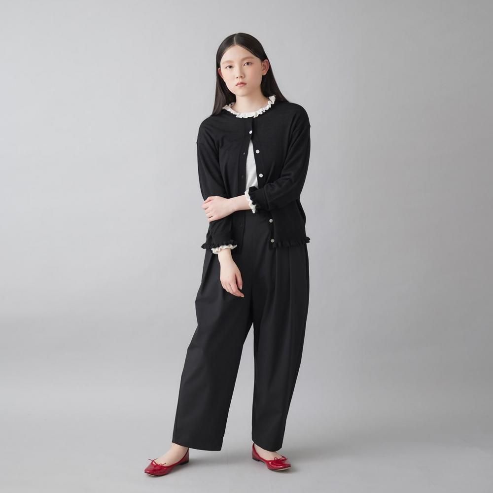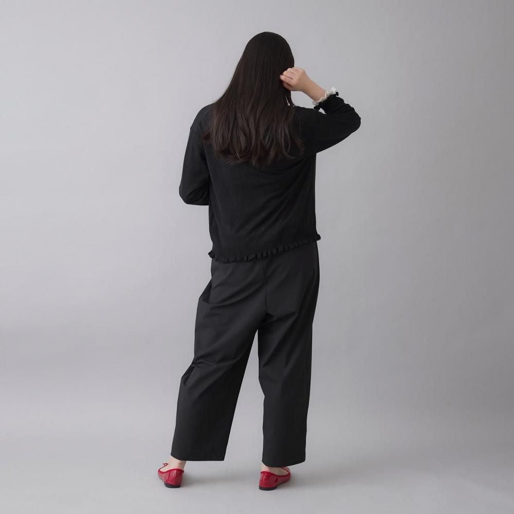 クロは、シーンを選ばず活躍する定番。ラッフルの甘さを引き締め、大人のシックな着こなしを演出します。