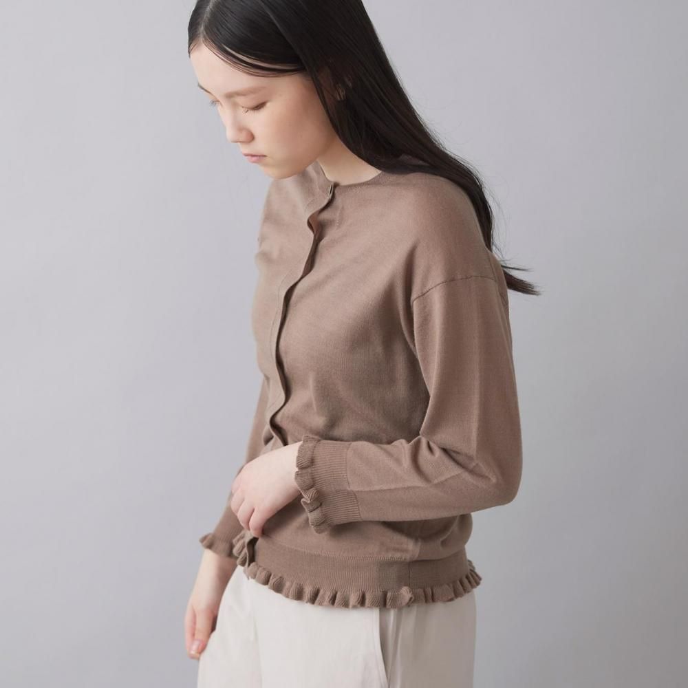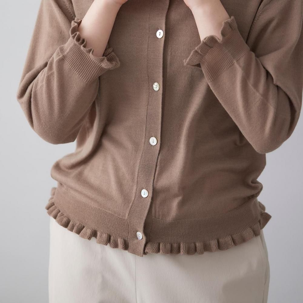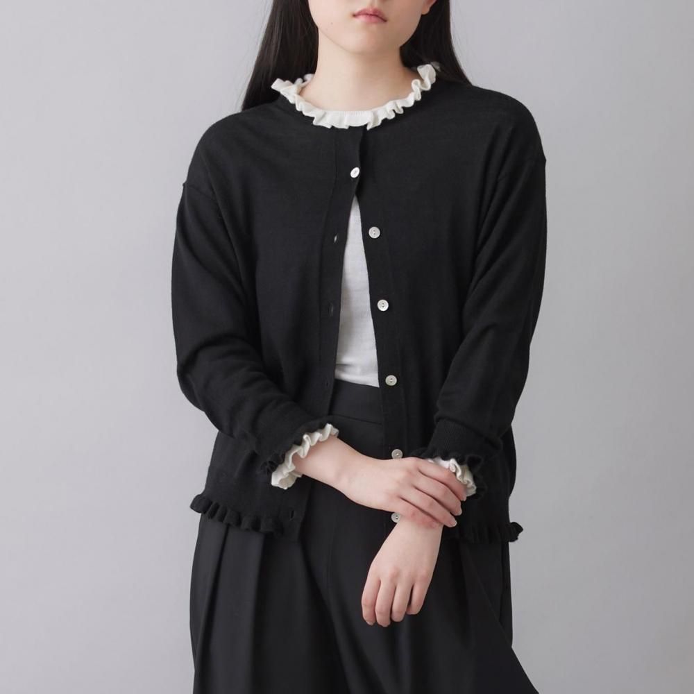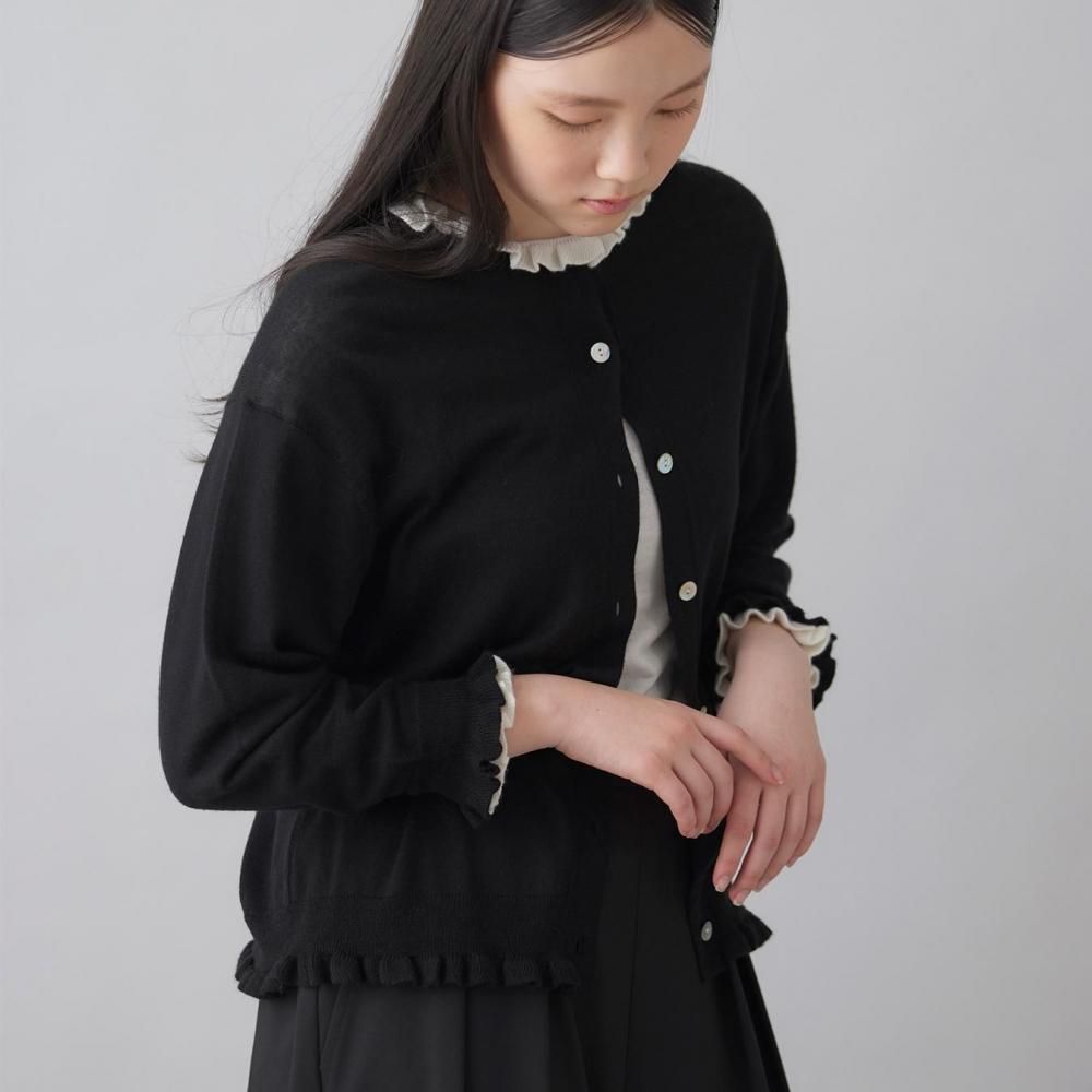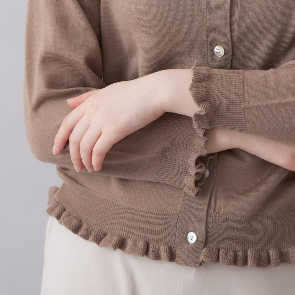 裾と袖口にあしらったラッフルが、さりげないフェミニンさを添えるカーディガン。