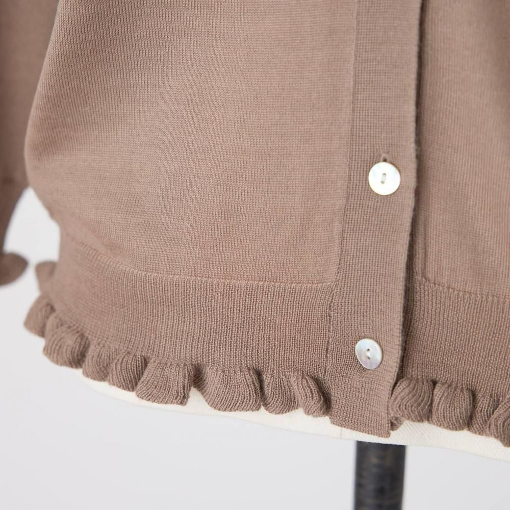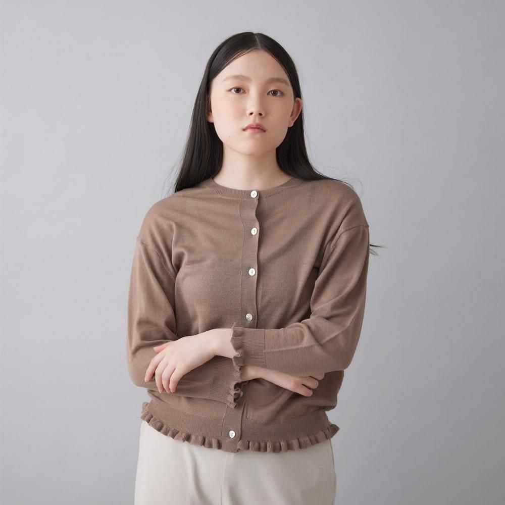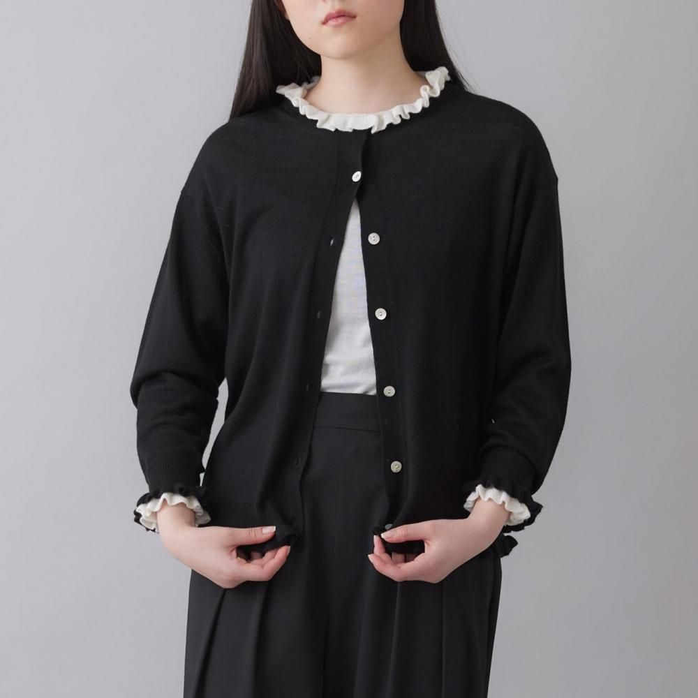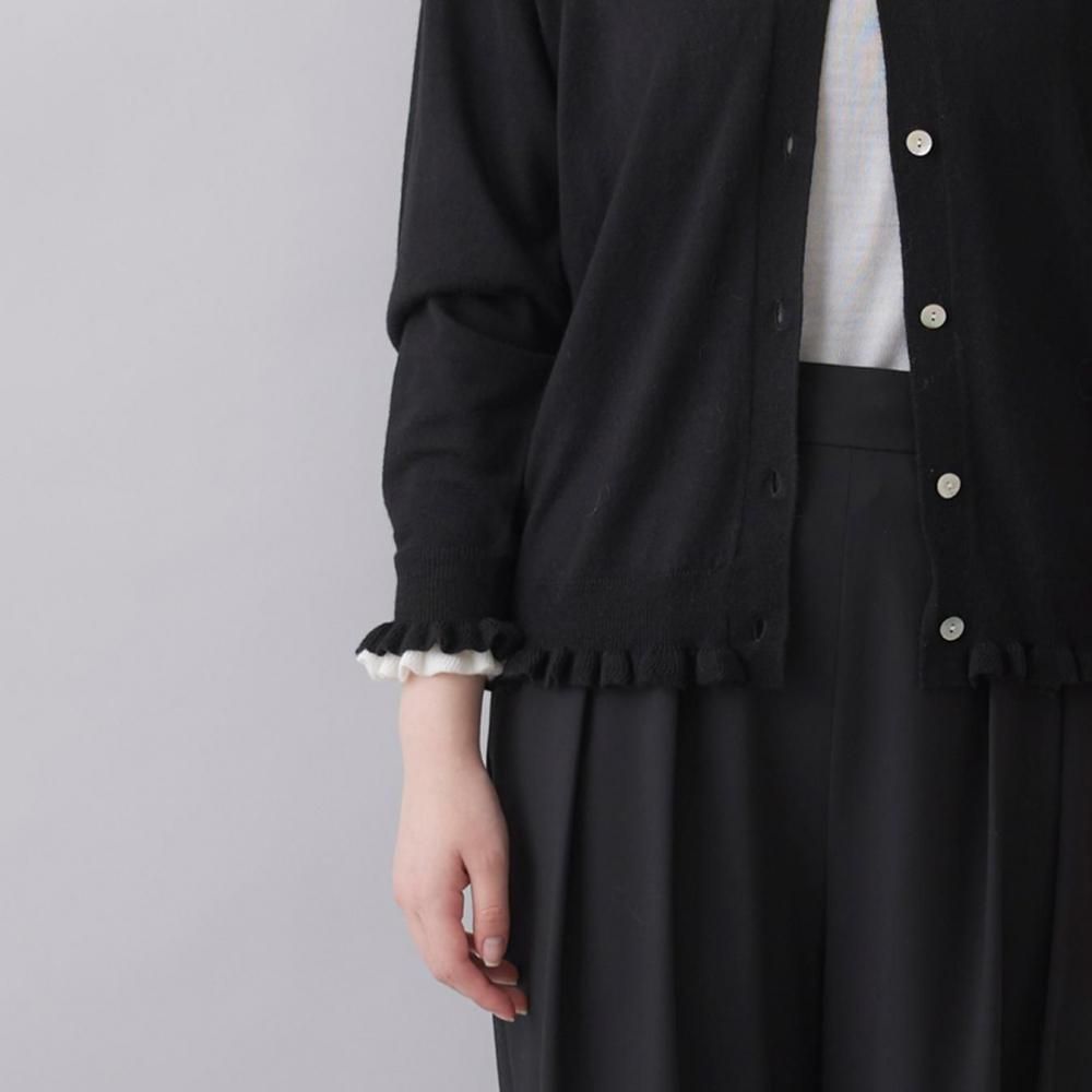 裾と袖口にあしらったラッフルが、さりげないフェミニンさを添えるカーディガン。