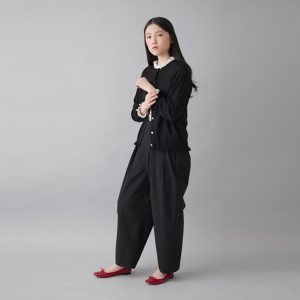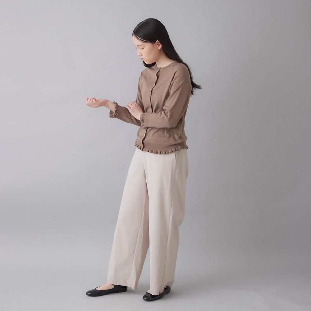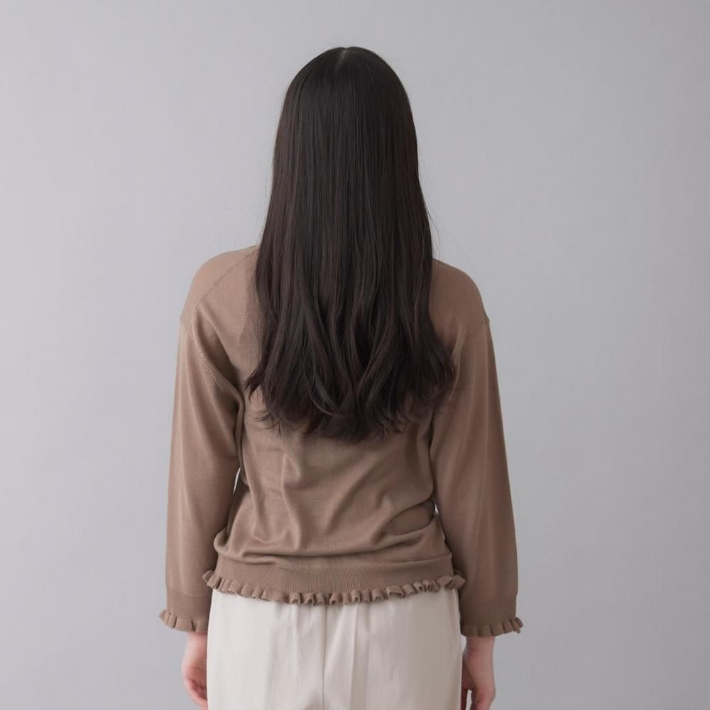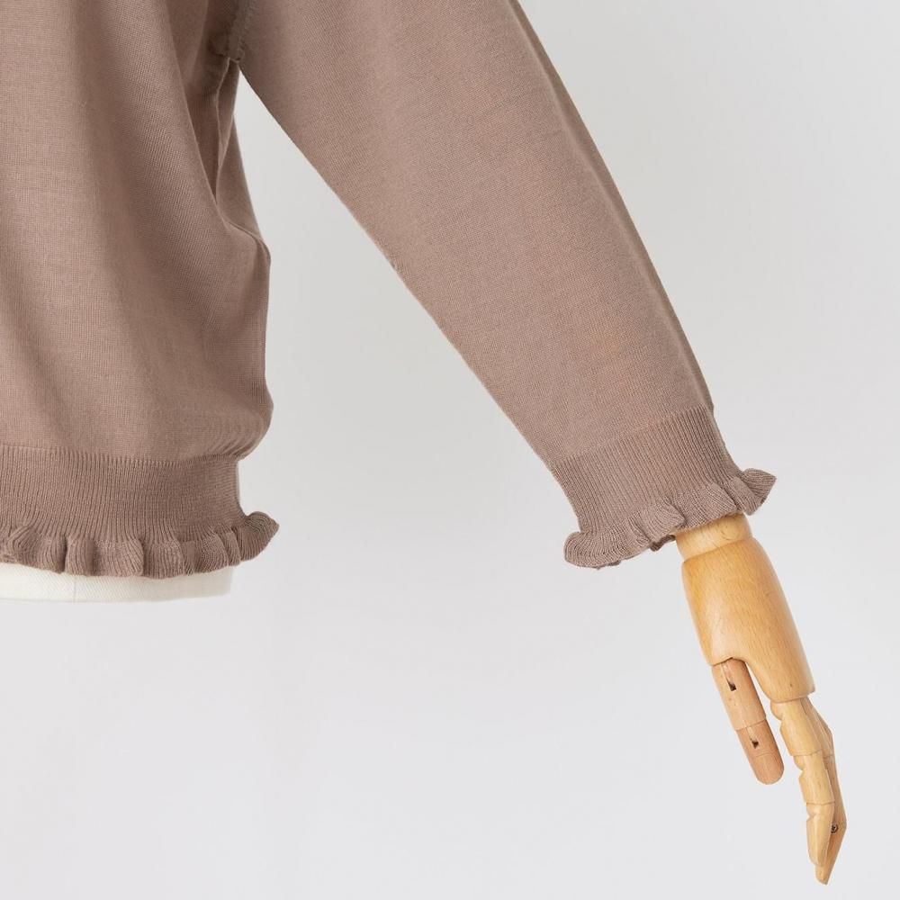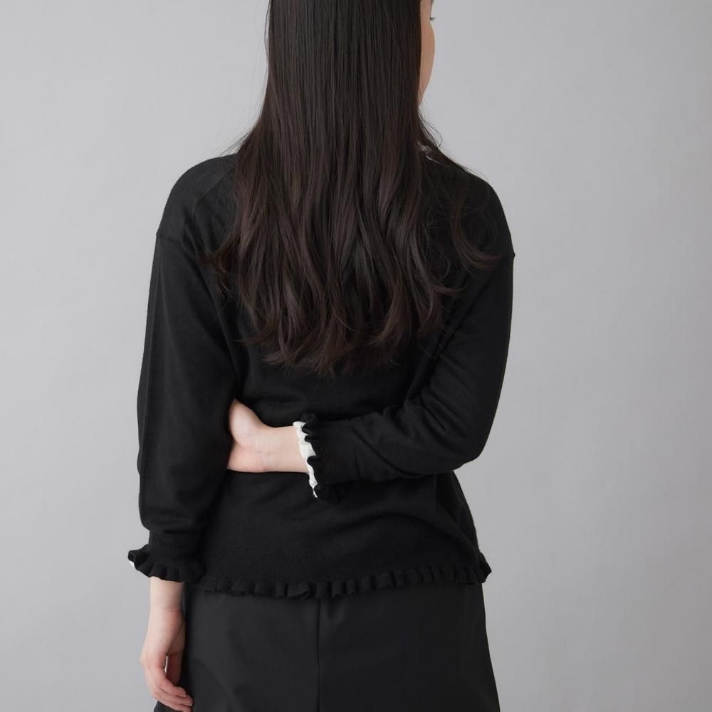 裾と袖口にあしらったラッフルが、さりげないフェミニンさを添えるカーディガン。