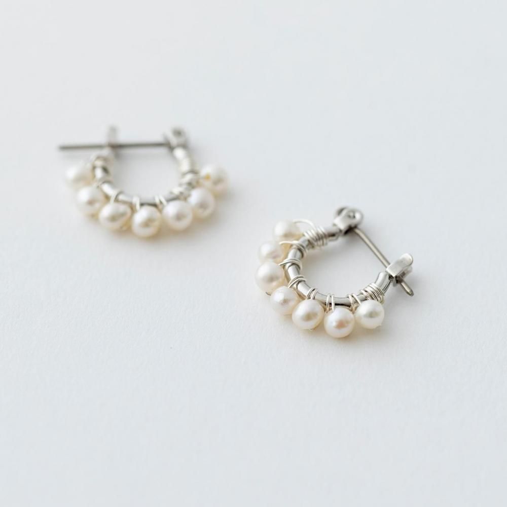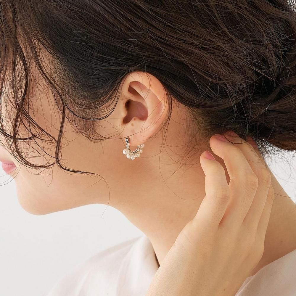 小さく揺れる繊細なパールは光を受けて静かに輝き、顔周りを明るく見せてくれます。