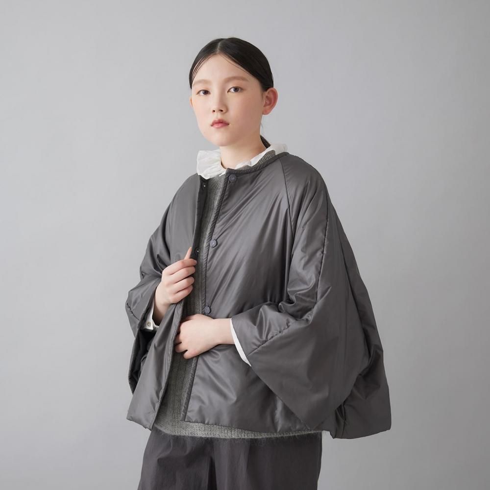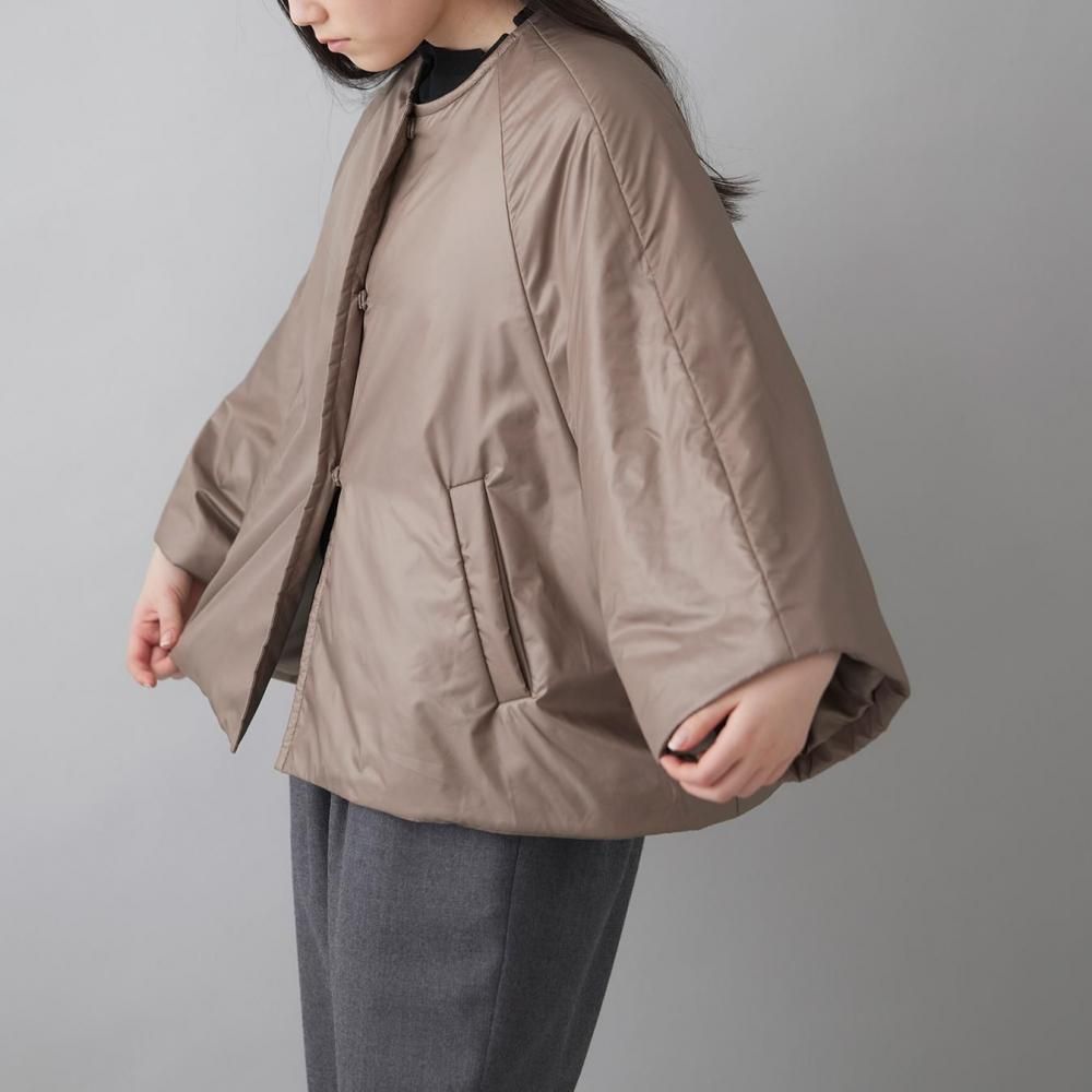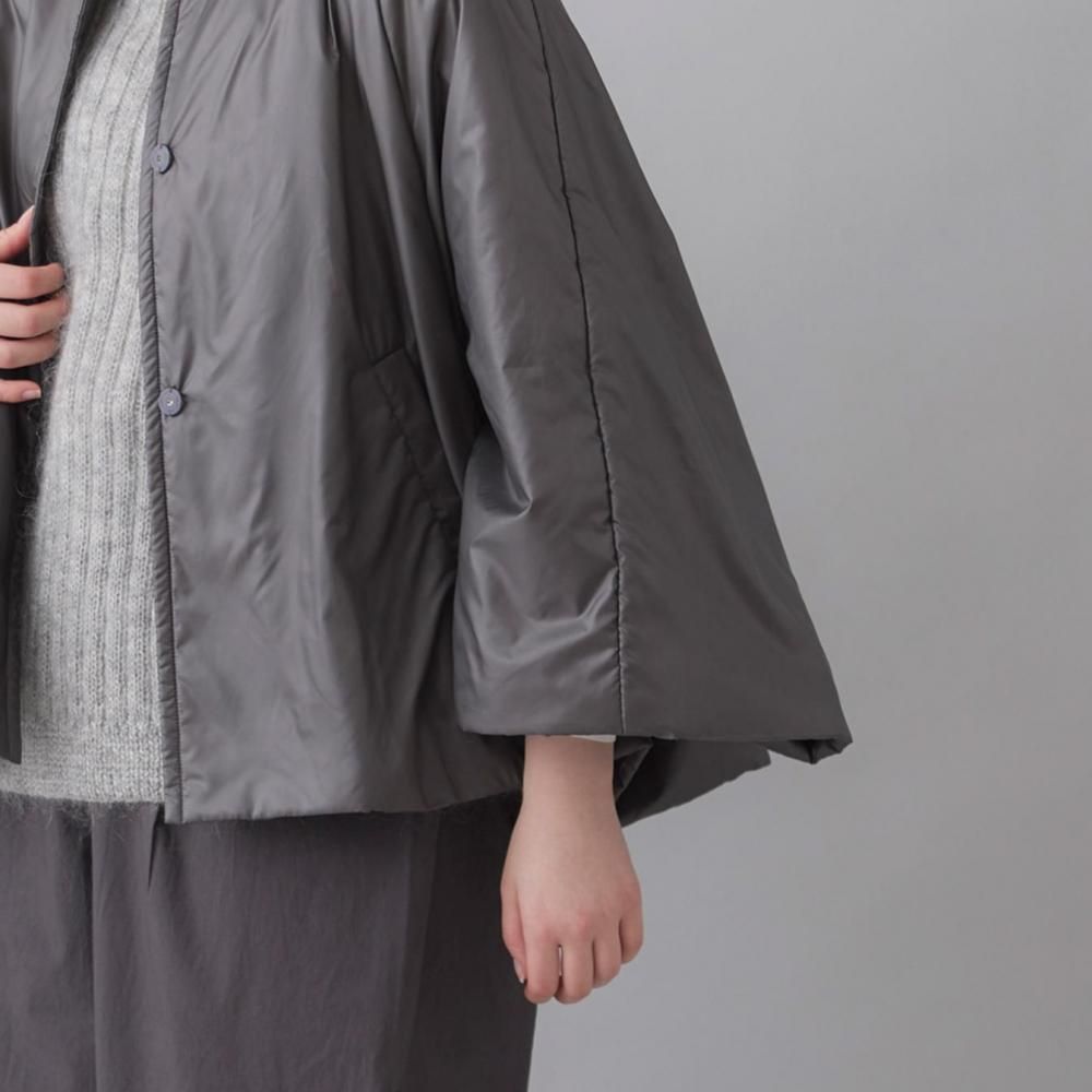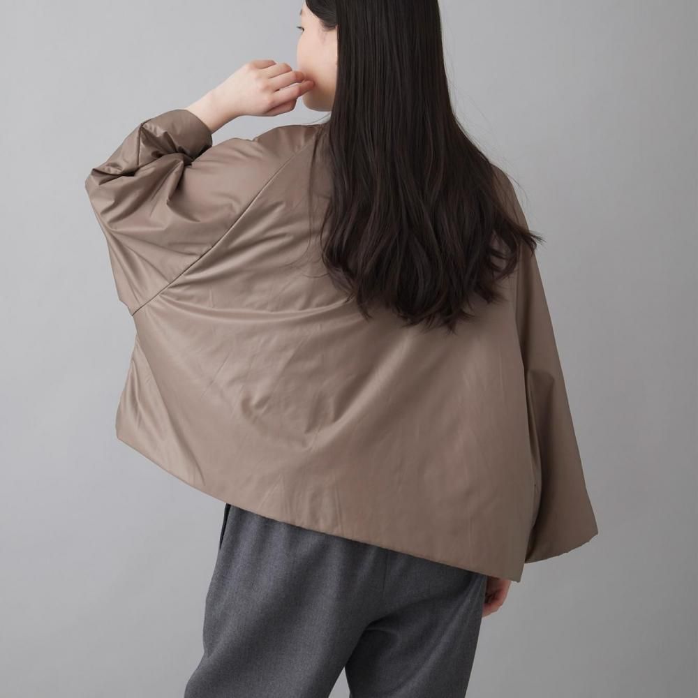 ポンチョのようにゆったりとしたシルエットに、ショート丈を組み合わせたライトアウター。