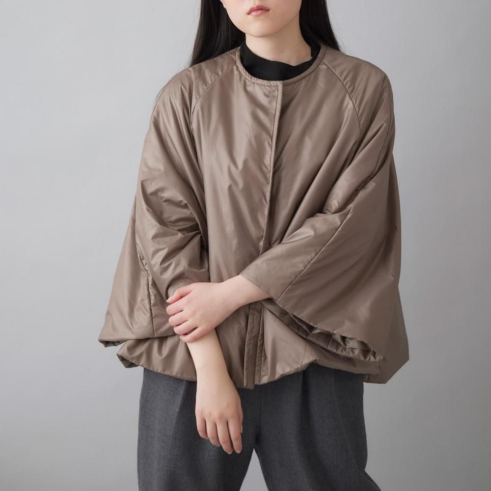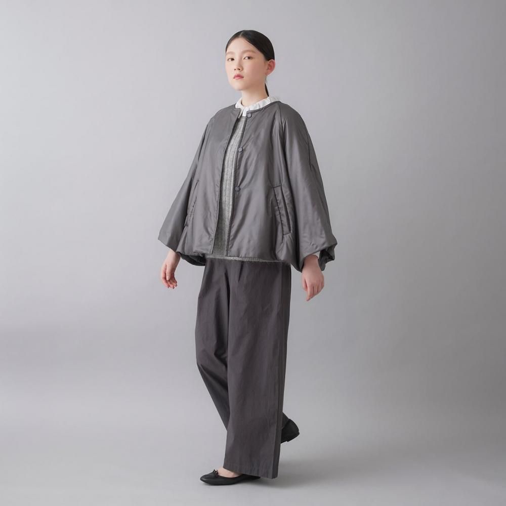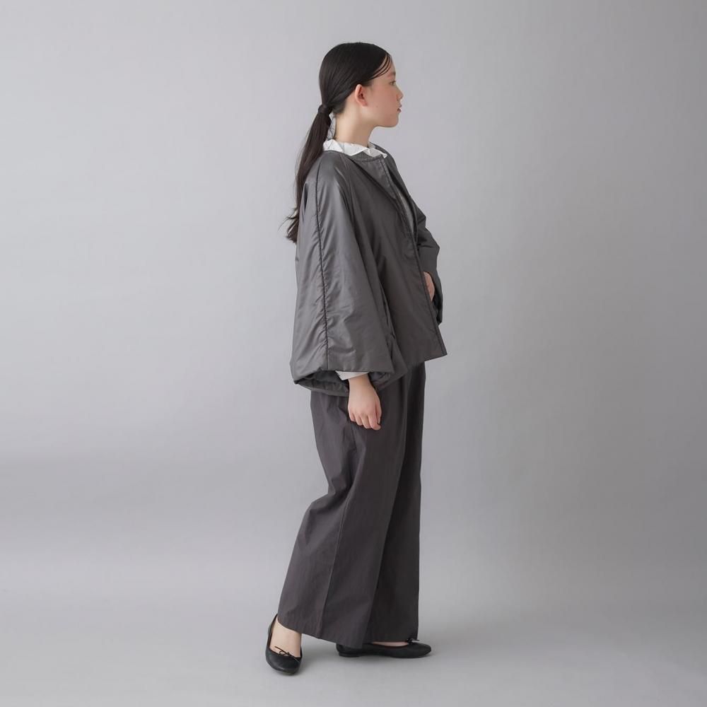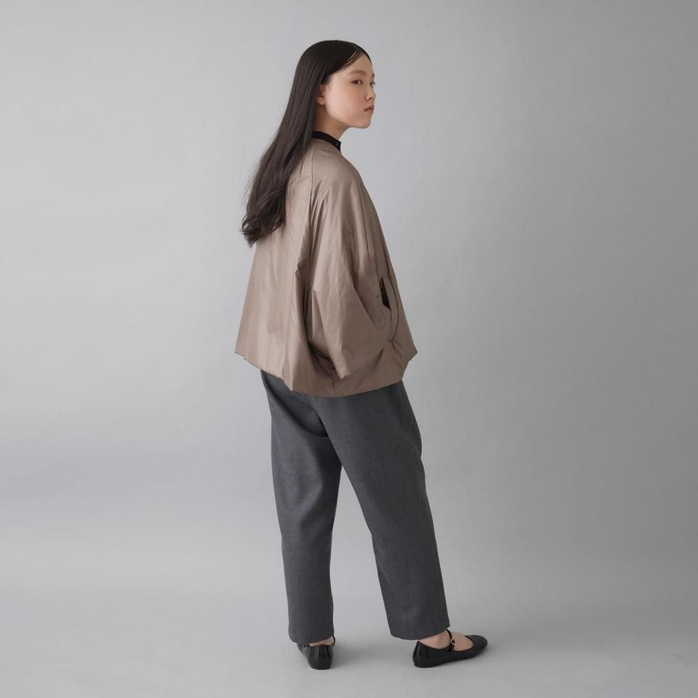 ポンチョのようにゆったりとしたシルエットに、ショート丈を組み合わせたライトアウター。