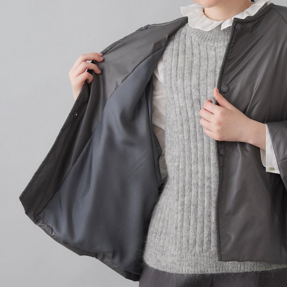 ショート丈ならではの軽やかさで、インナーとのレイヤードもバランスよく決まります。