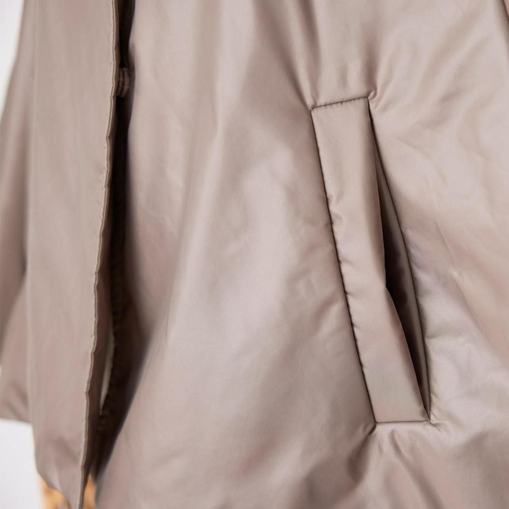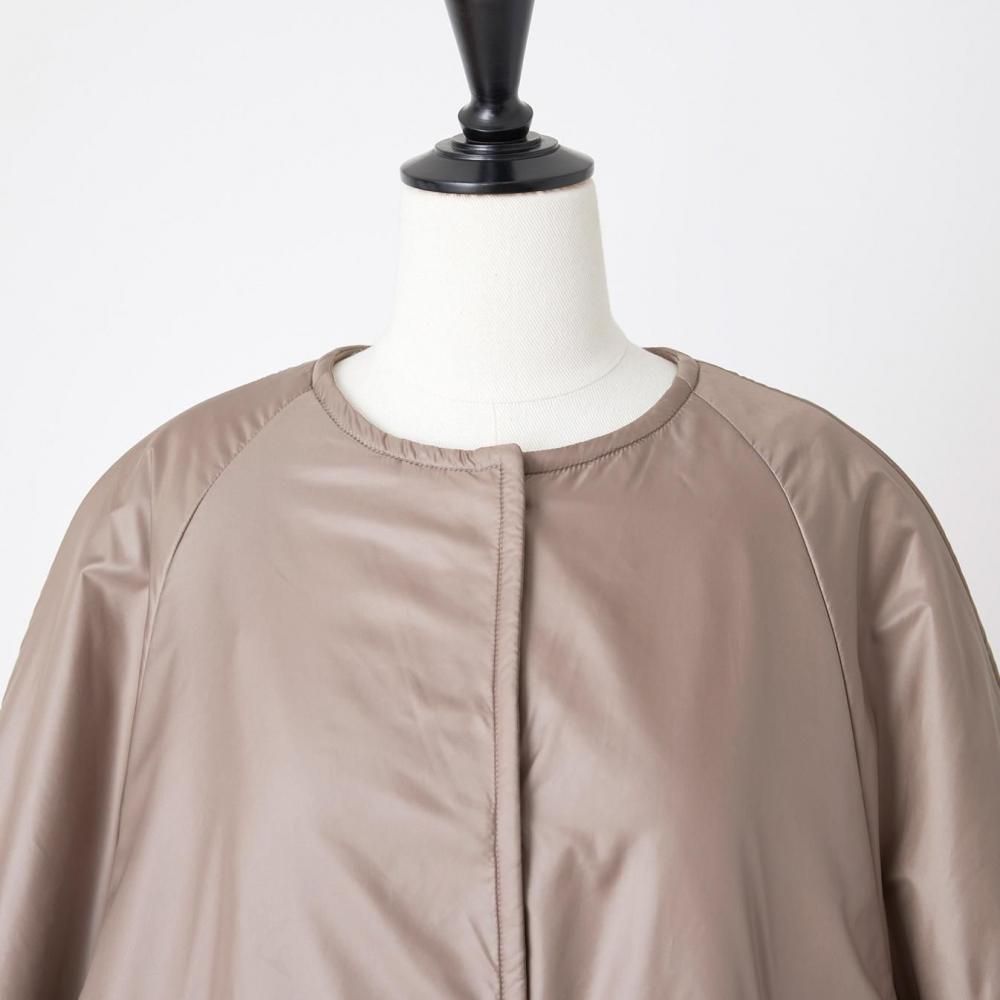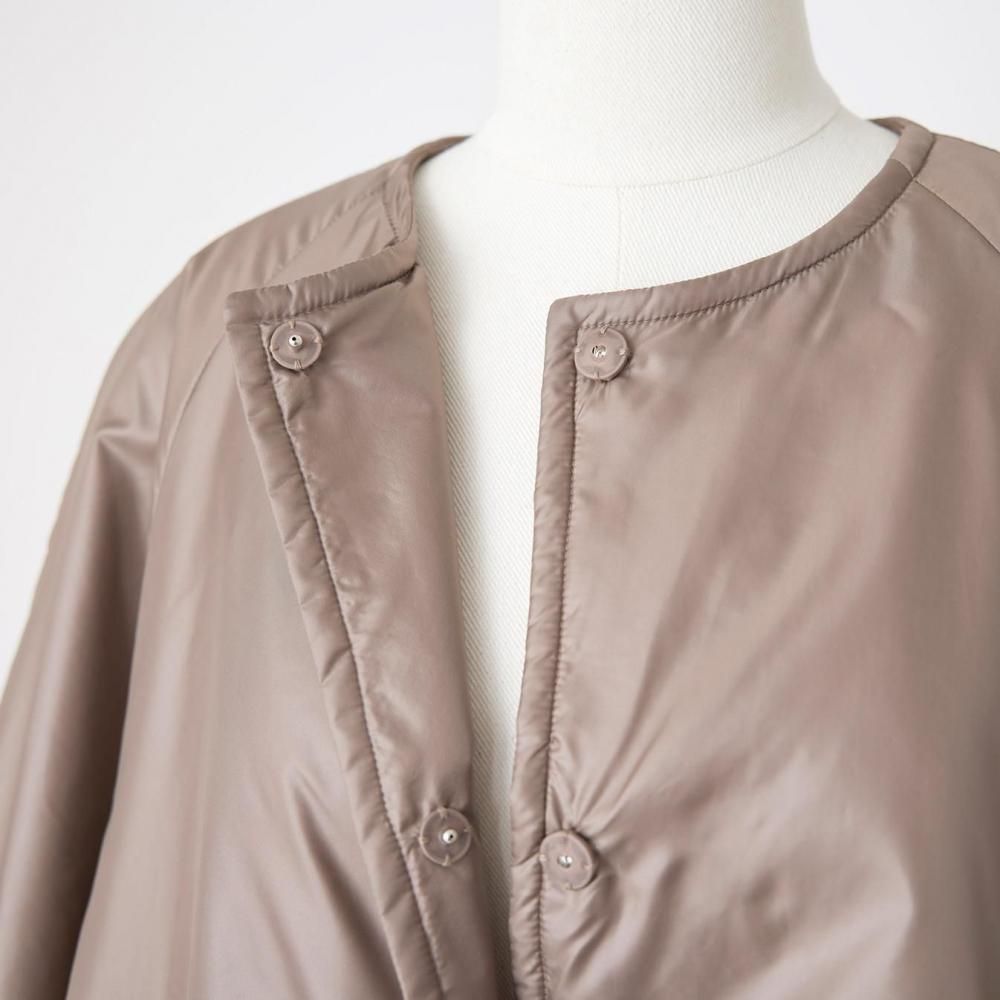 ノーカラー仕様で首元をすっきりと見せ、ストールやマフラーなど巻物とのコーディネートも楽しめます。