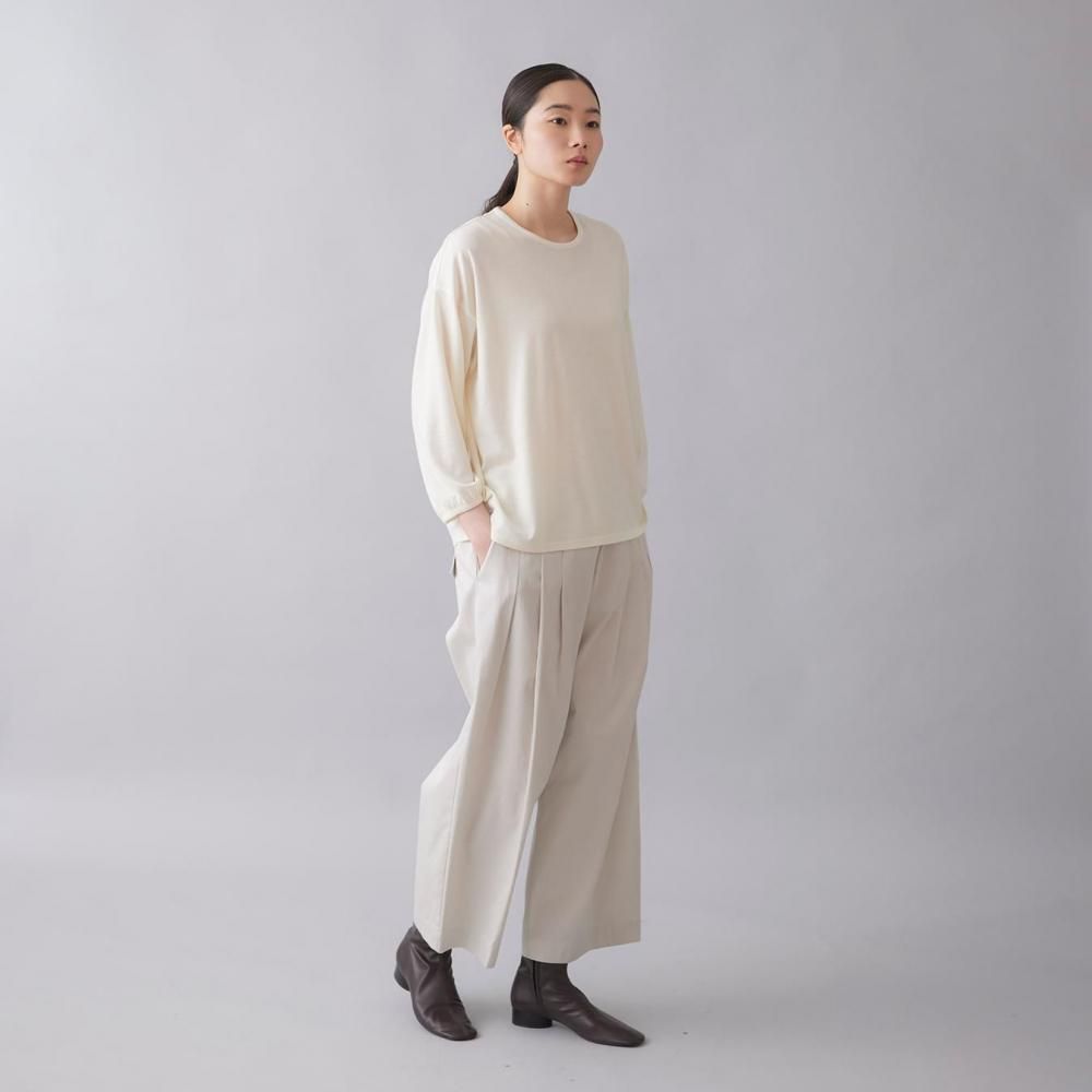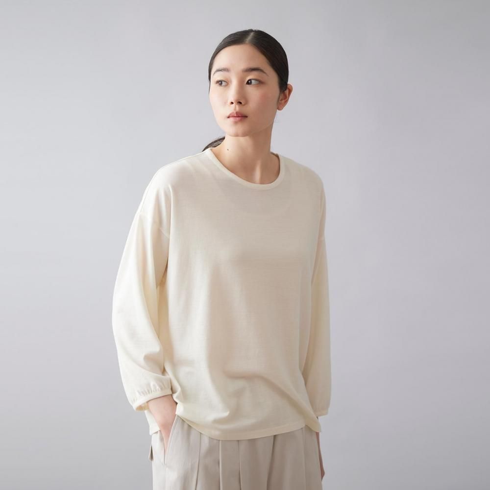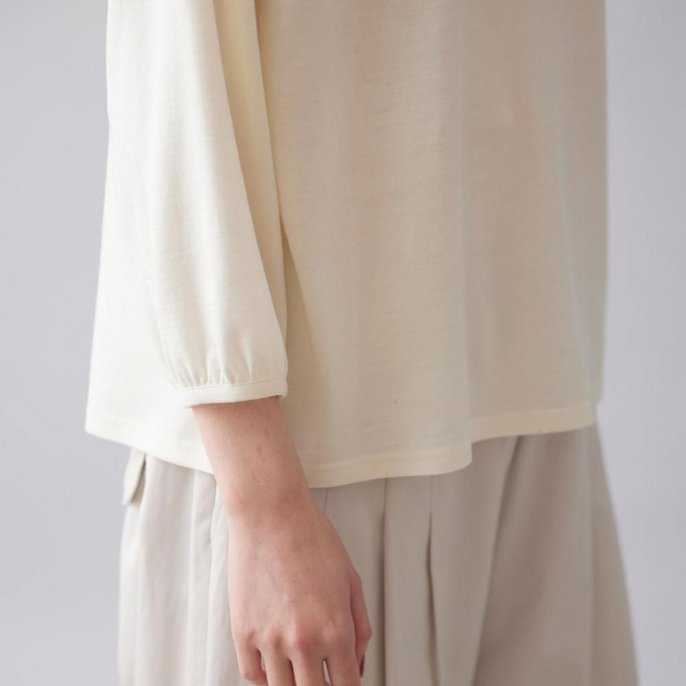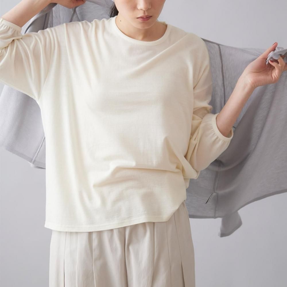 袖口に入ったさりげないギャザーが、女性らしいやわらかさを添えています。