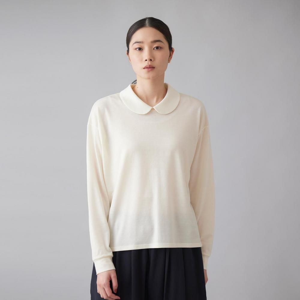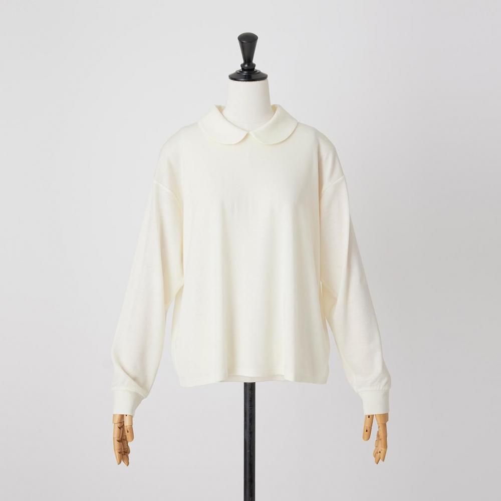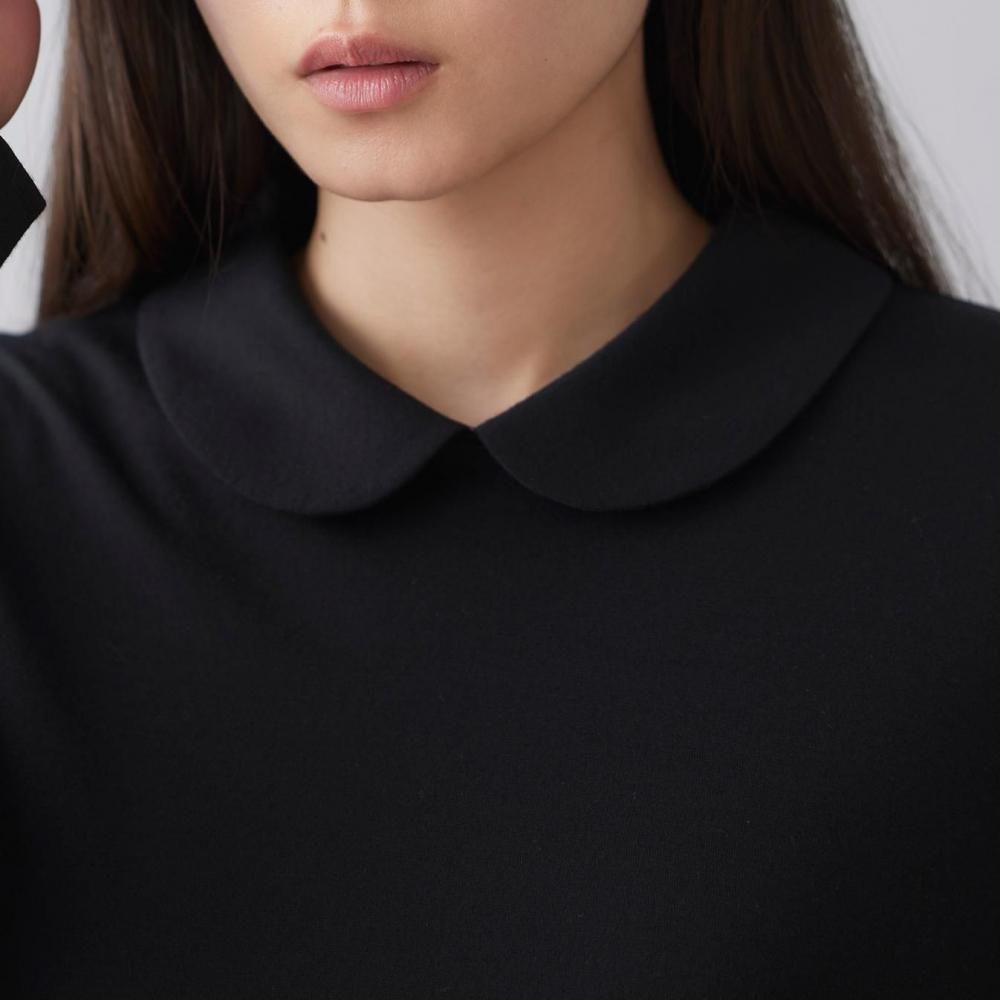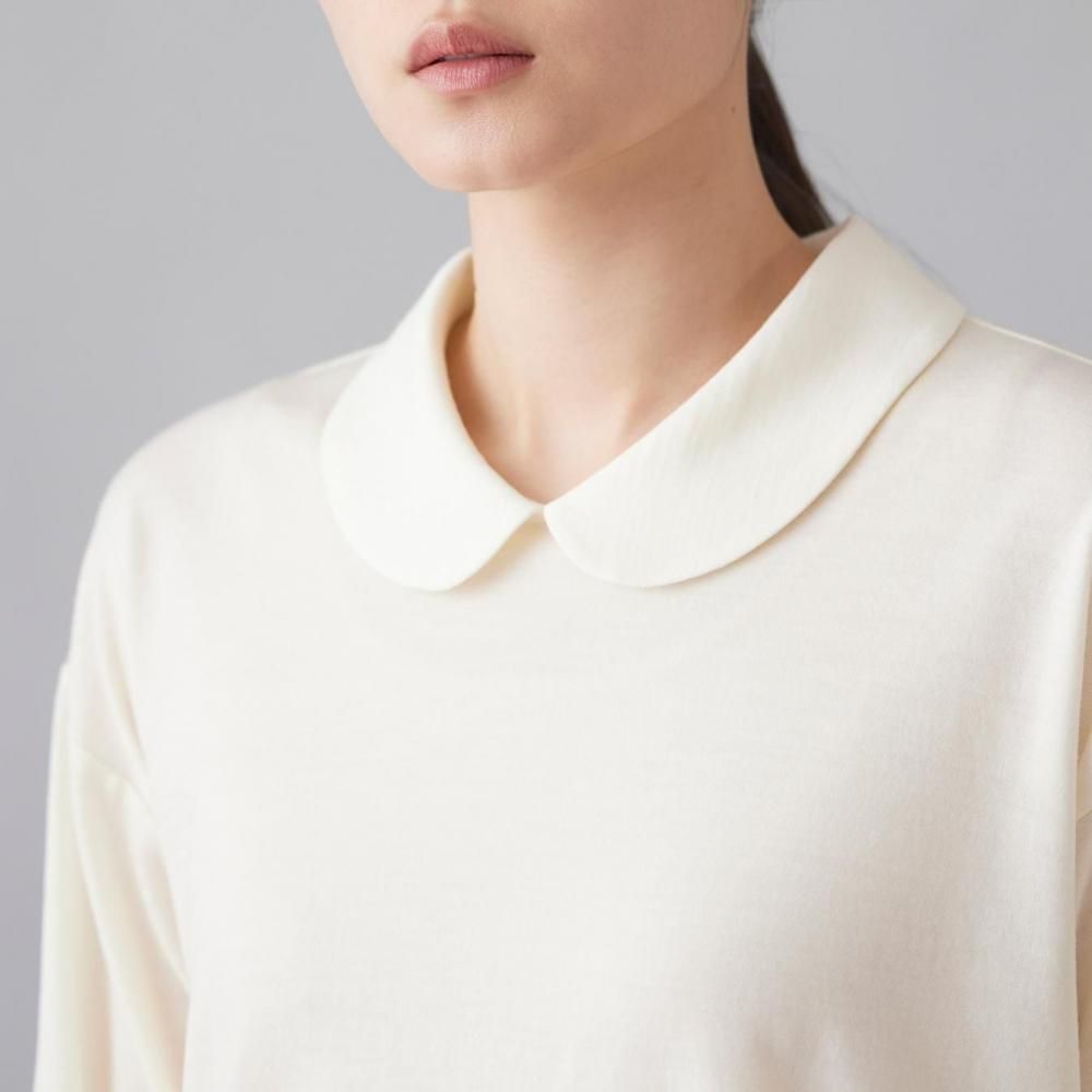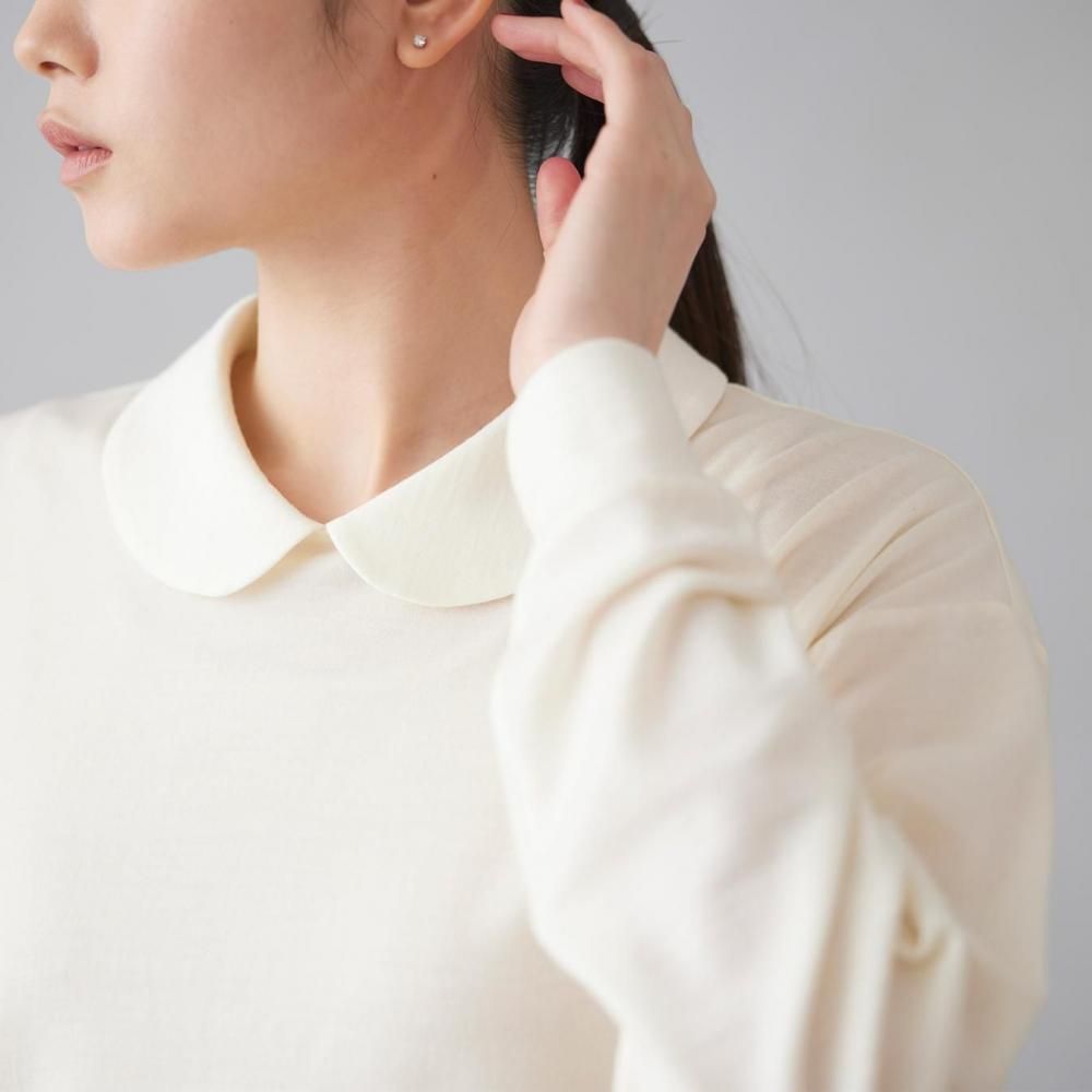 やわらかな丸襟が顔まわりをやさしく包み、女性らしい印象に。