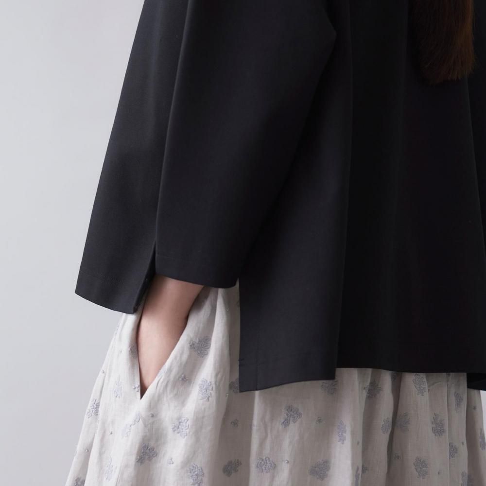 やや厚みのある素材が季節の変わり目にも頼もしく、インナー次第でロングシーズン着ていただけることも魅力です。