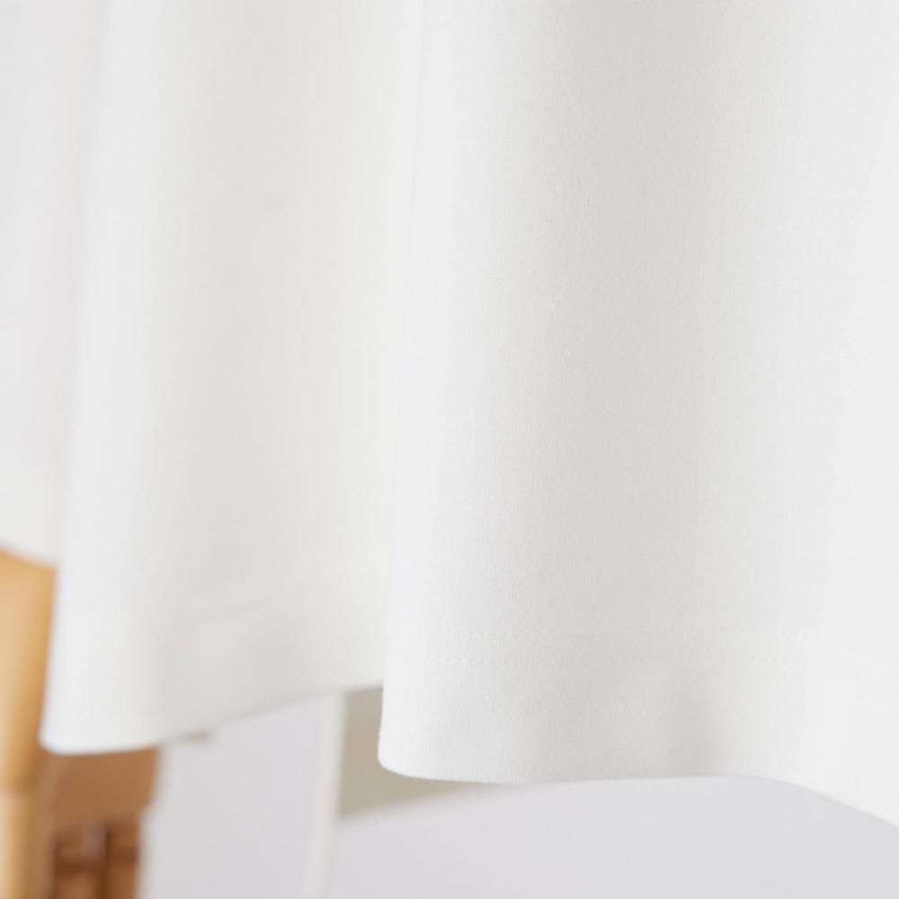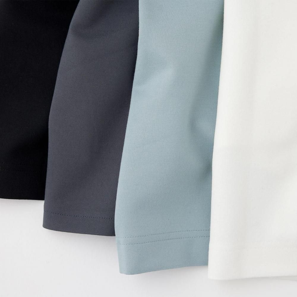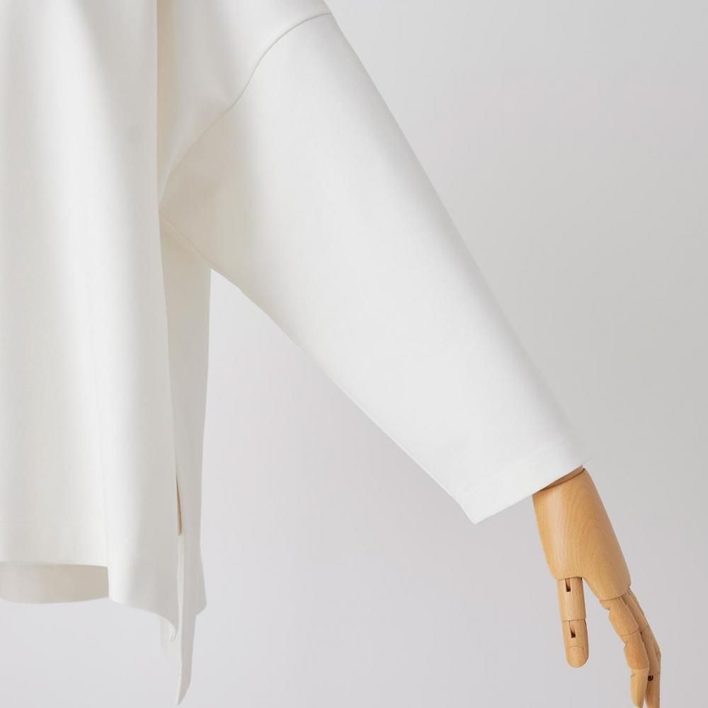 毛羽が少なくなめらかなストレッチポンチ素材が、ほどよいハリと反発感で美しいシルエットをつくり、身体のラインを拾わずすっきりと見せてくれます。