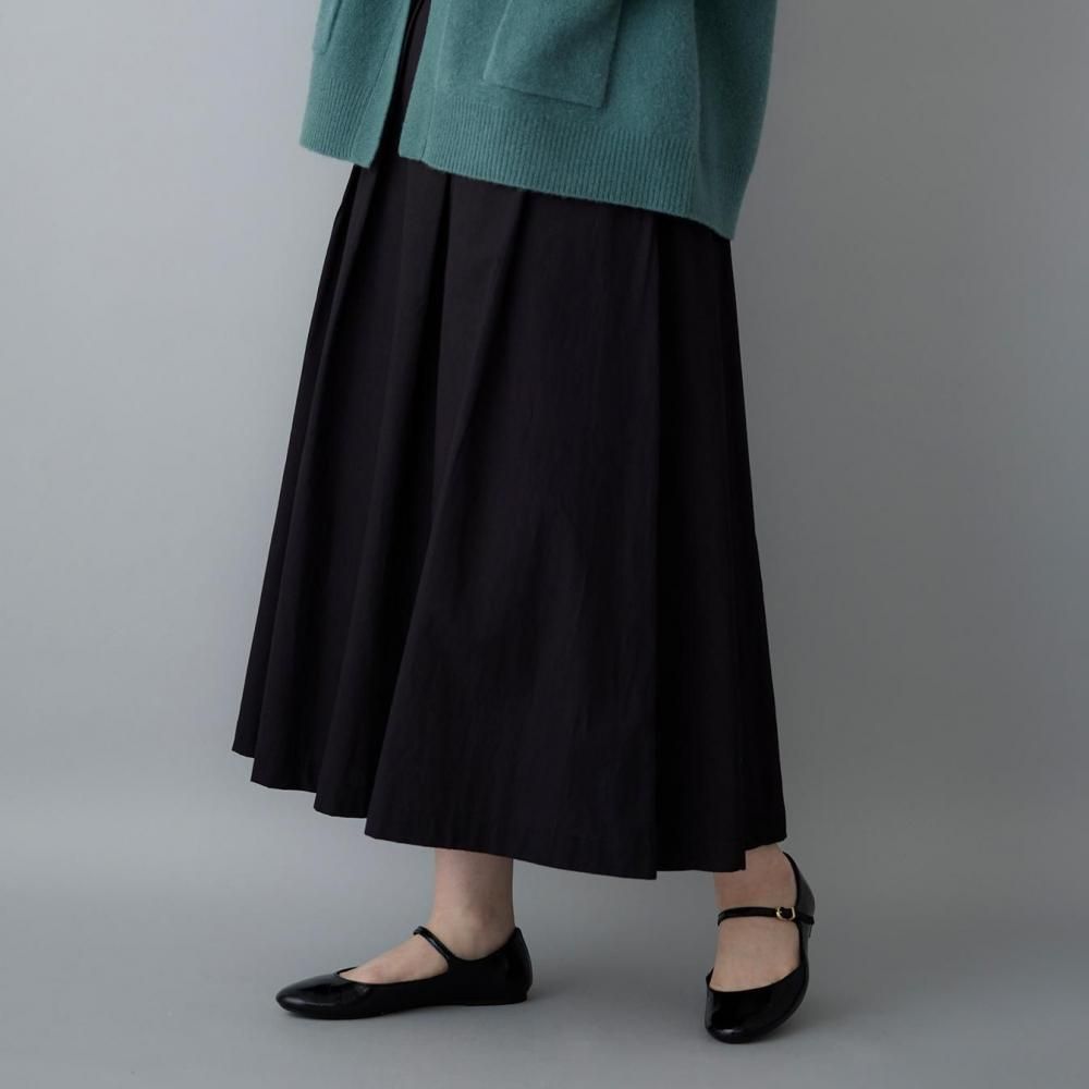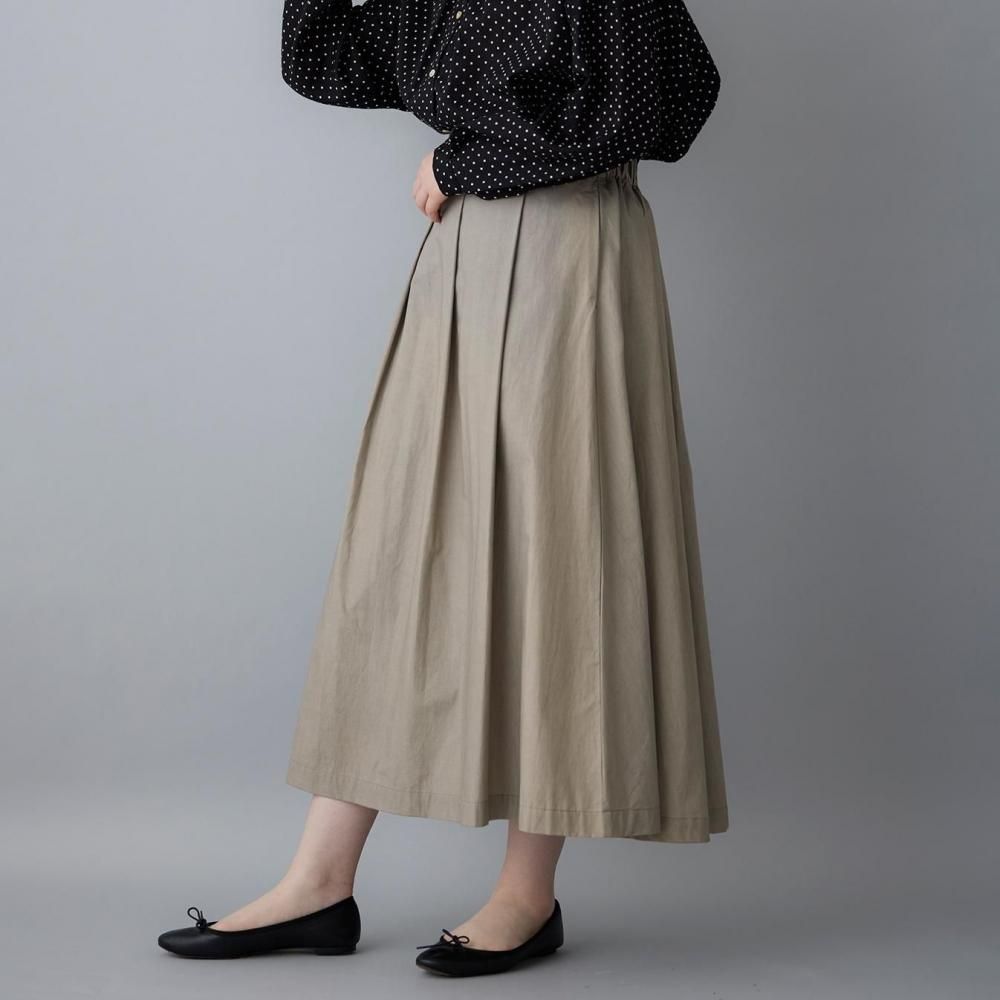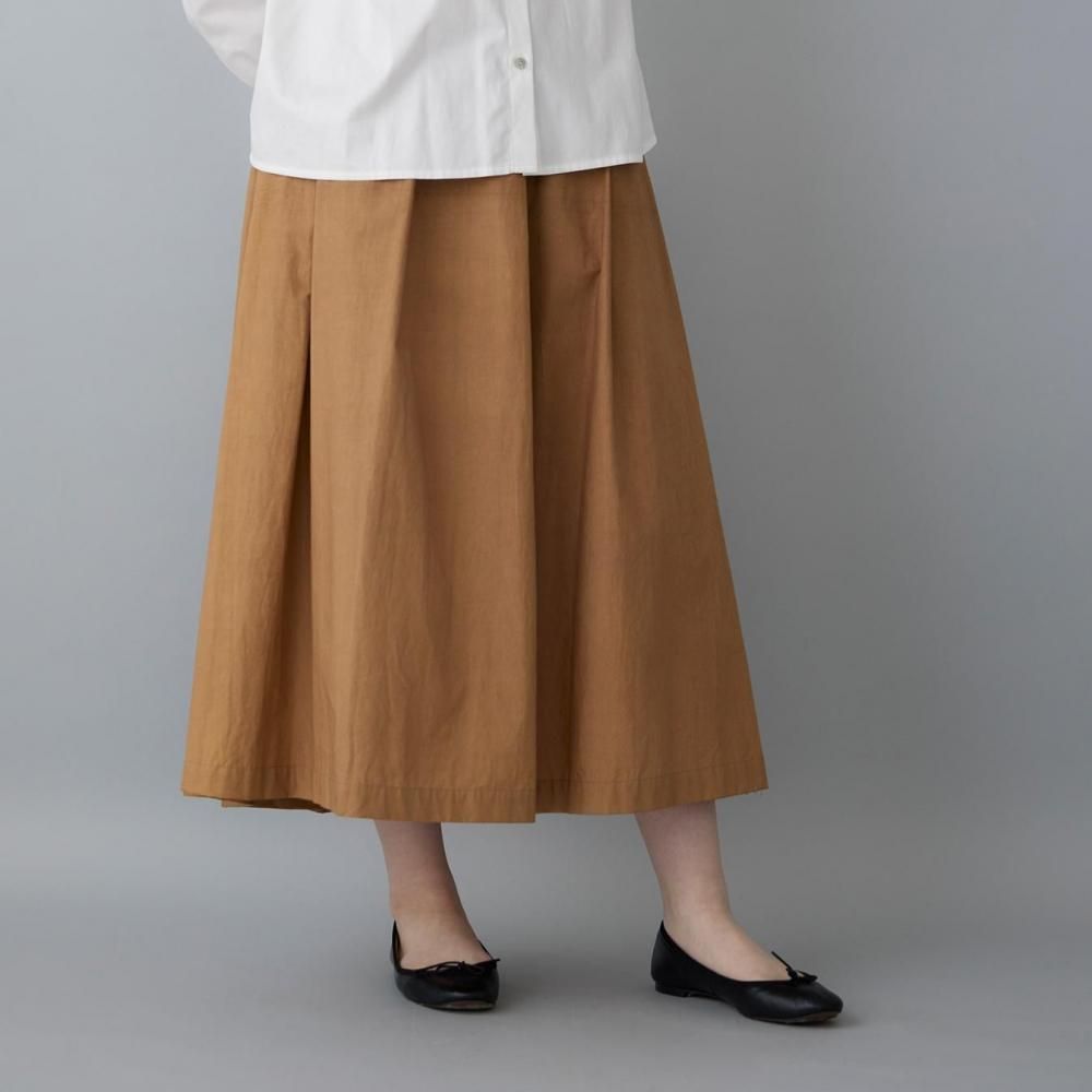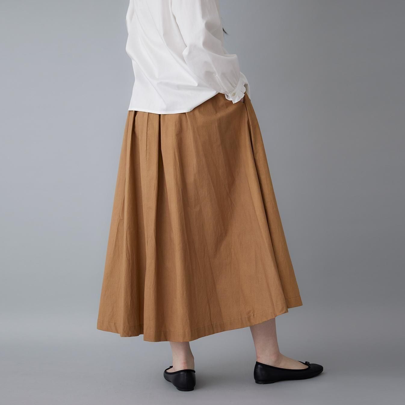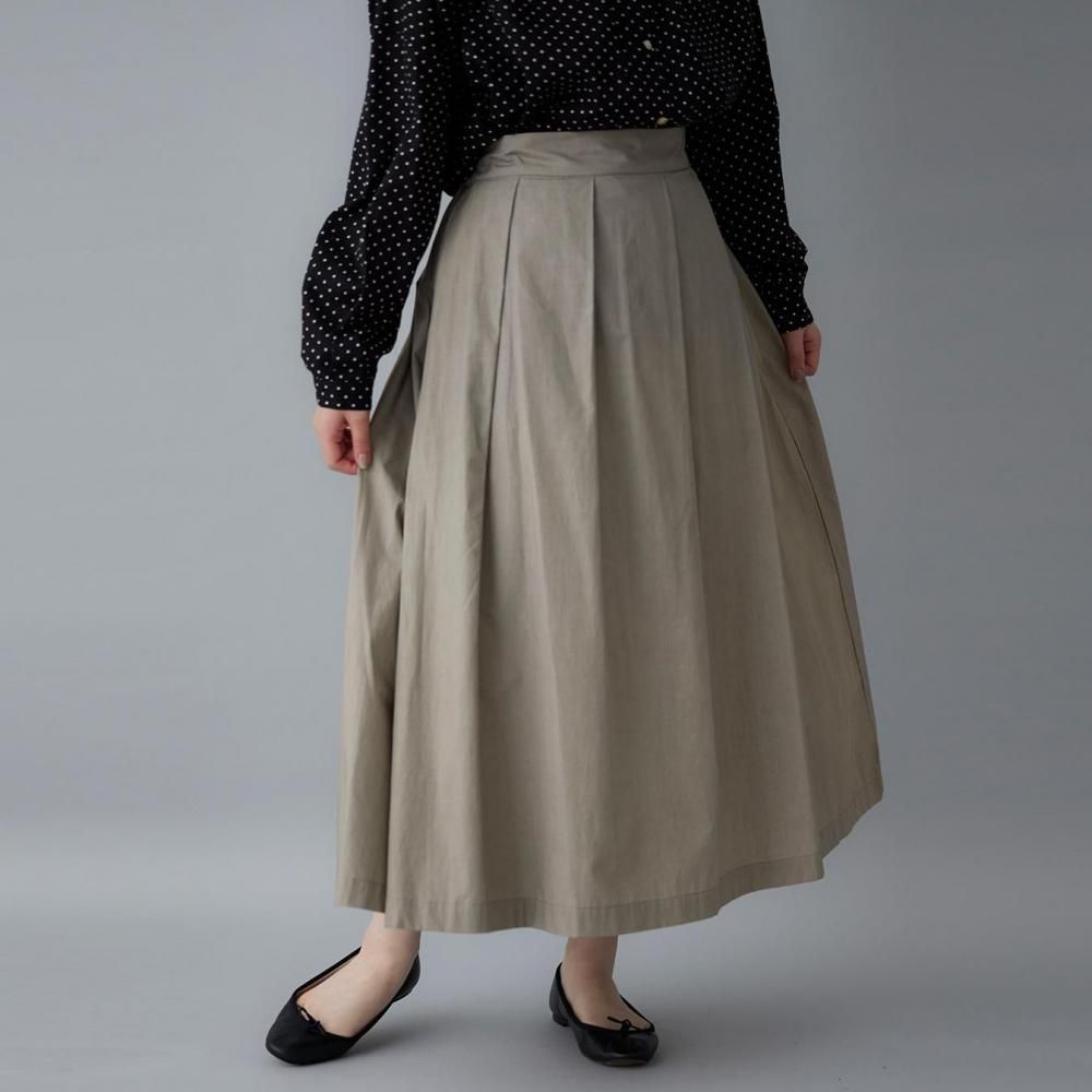 上質な綿糸を丁寧に織り上げた、軽くてなめらかなコットン100%のタックフレアスカートです。