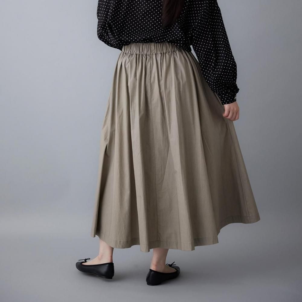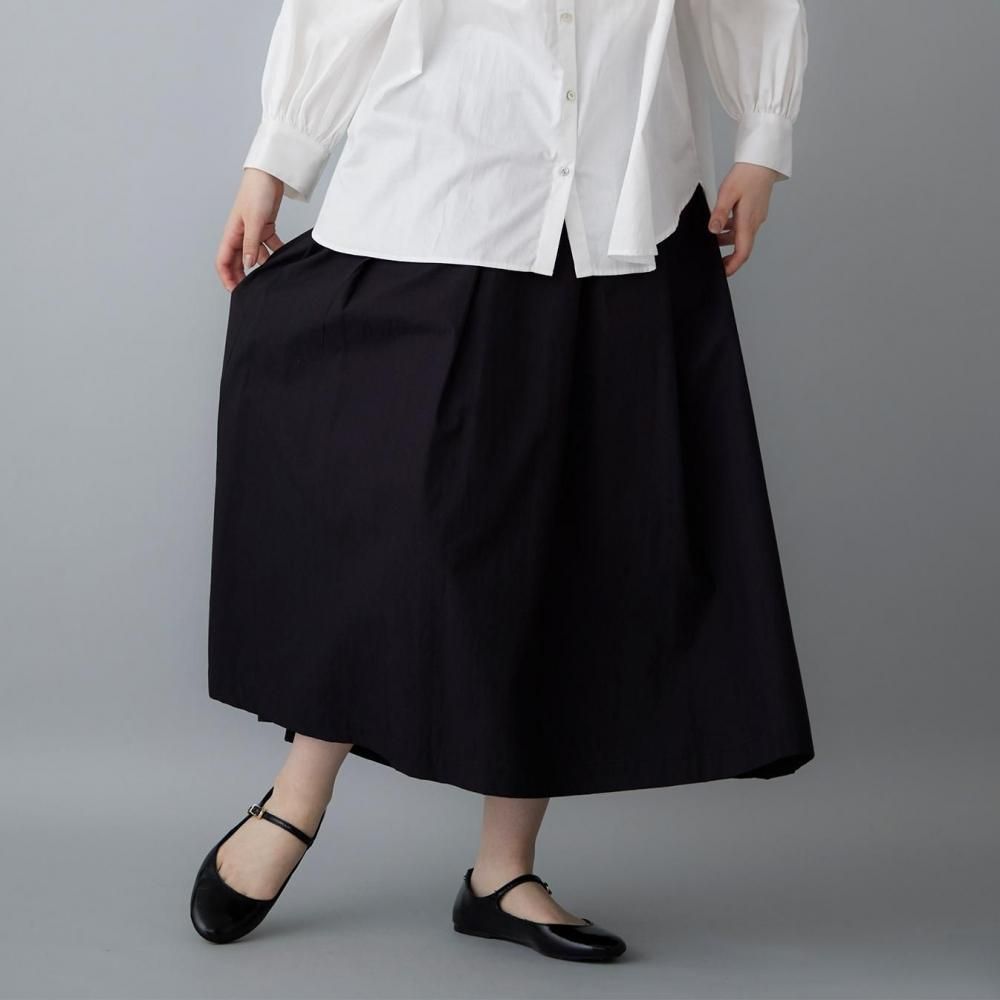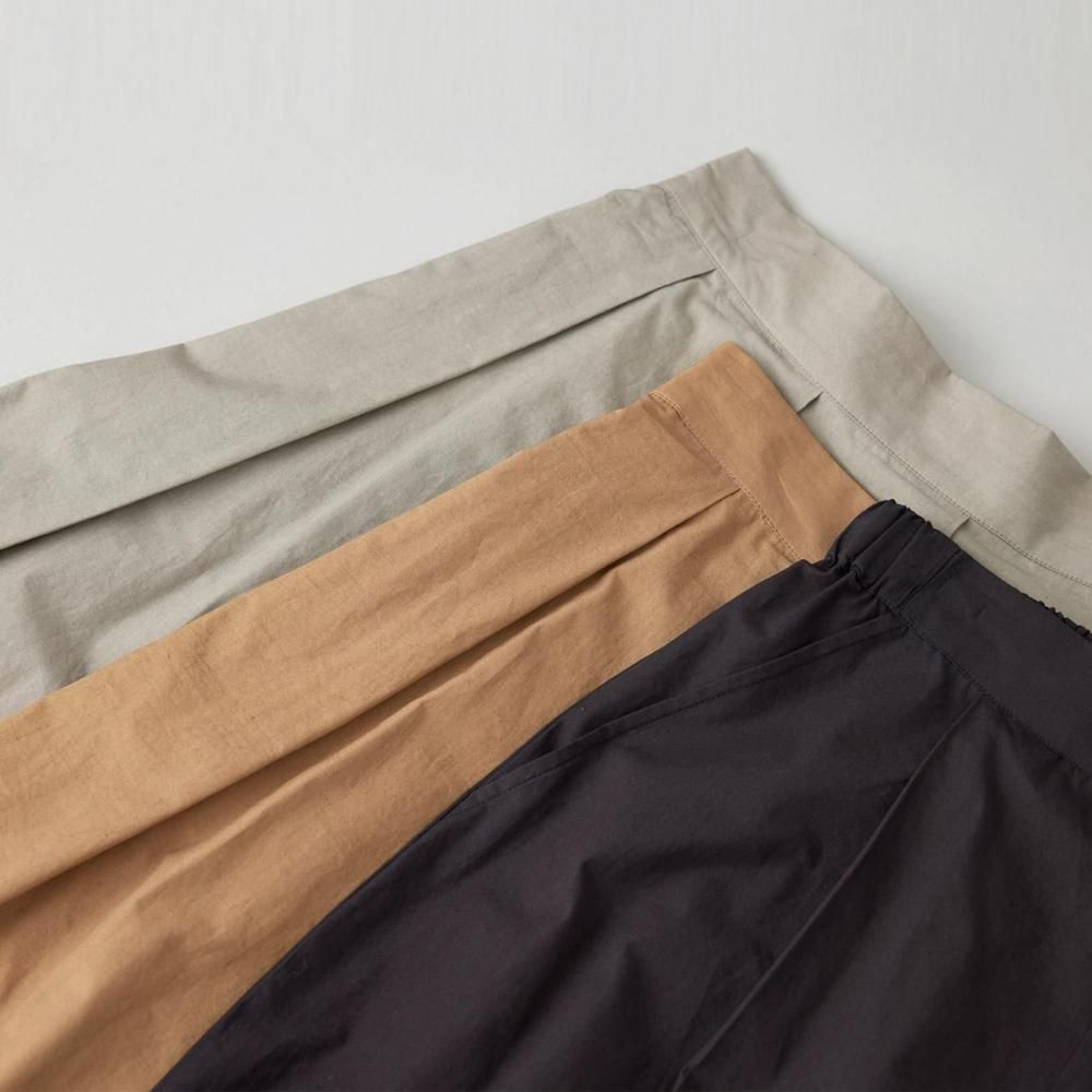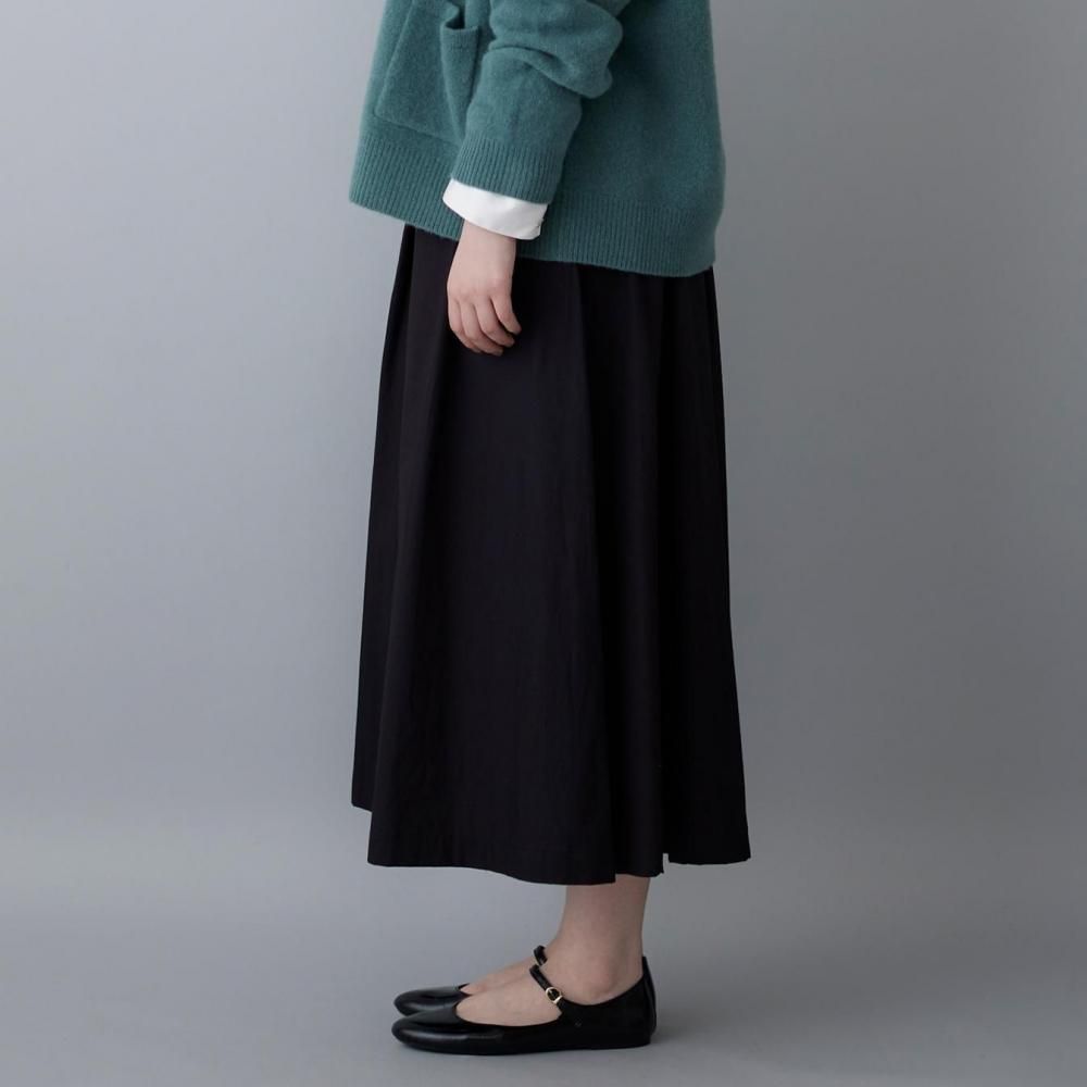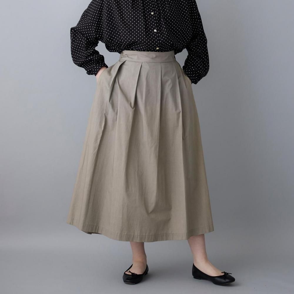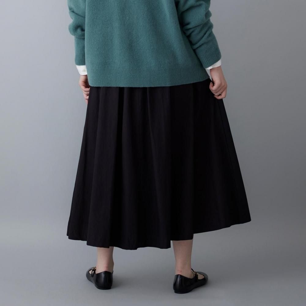 ウエストまわりに施したタックが、自然なボリュームを生み出しながらも広がりすぎず、軽やかに揺れる生地感が、歩くたびに女性らしいニュアンスを添えます。