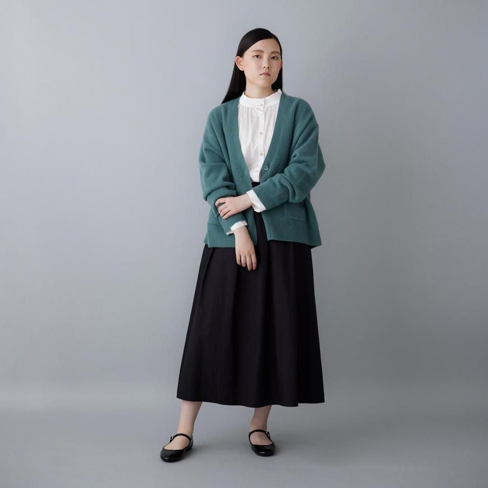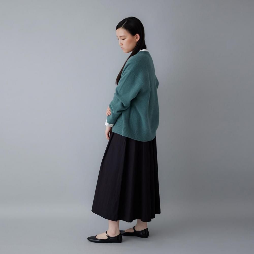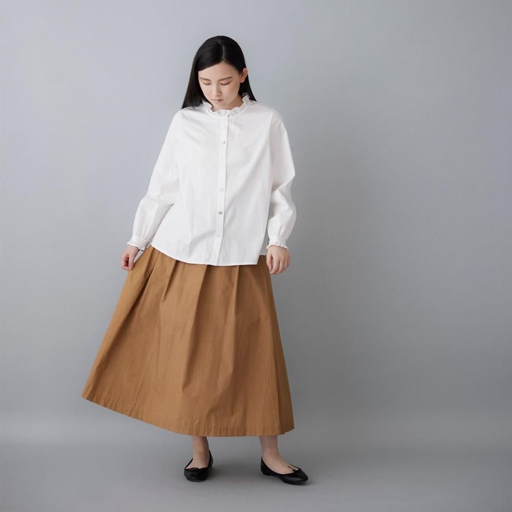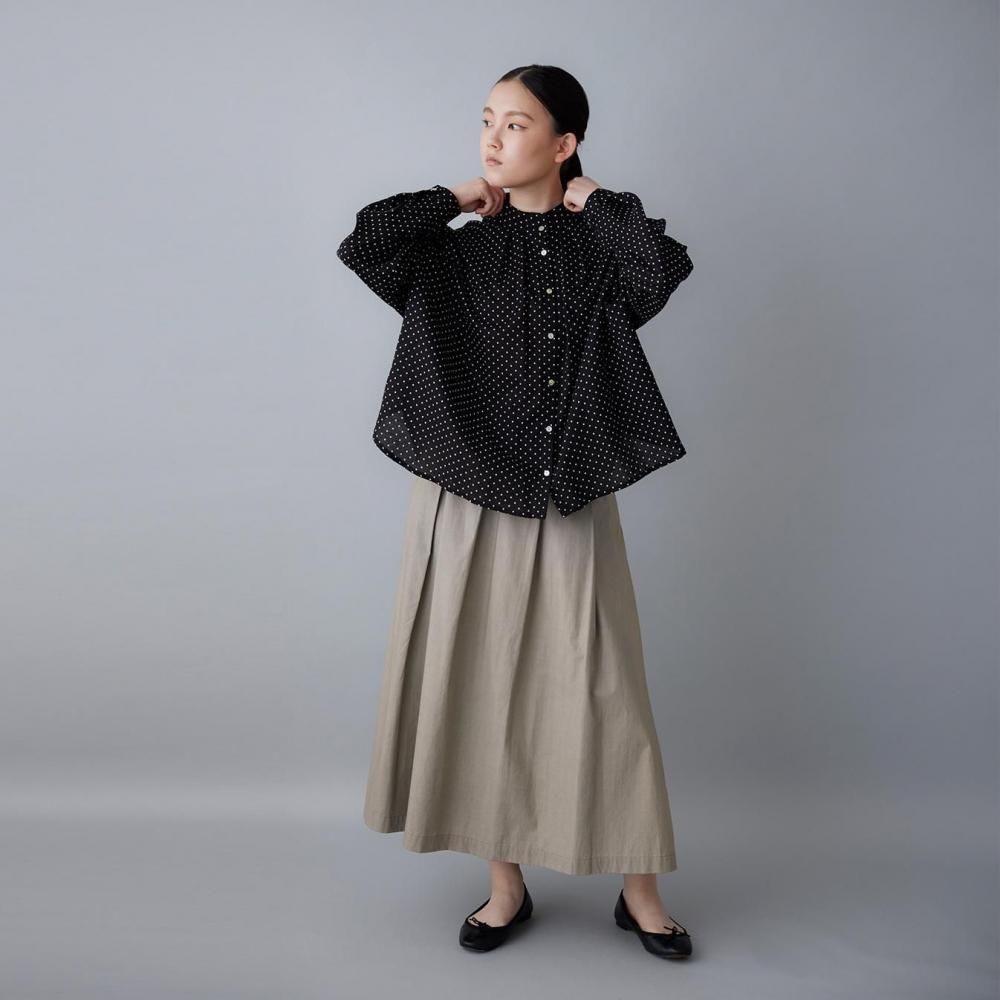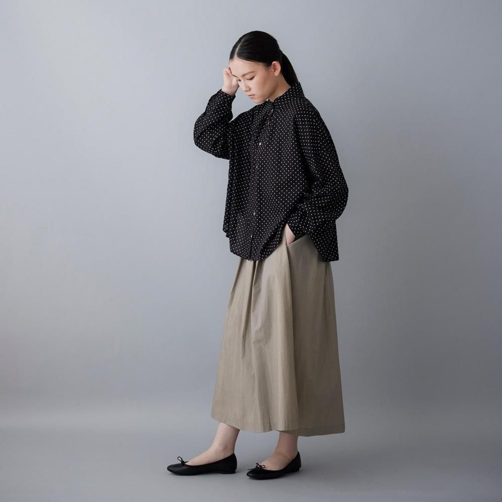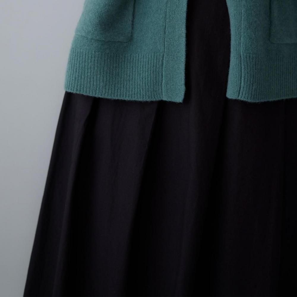 ウエストまわりに施したタックが、自然なボリュームを生み出しながらも広がりすぎず、軽やかに揺れる生地感が、歩くたびに女性らしいニュアンスを添えます。