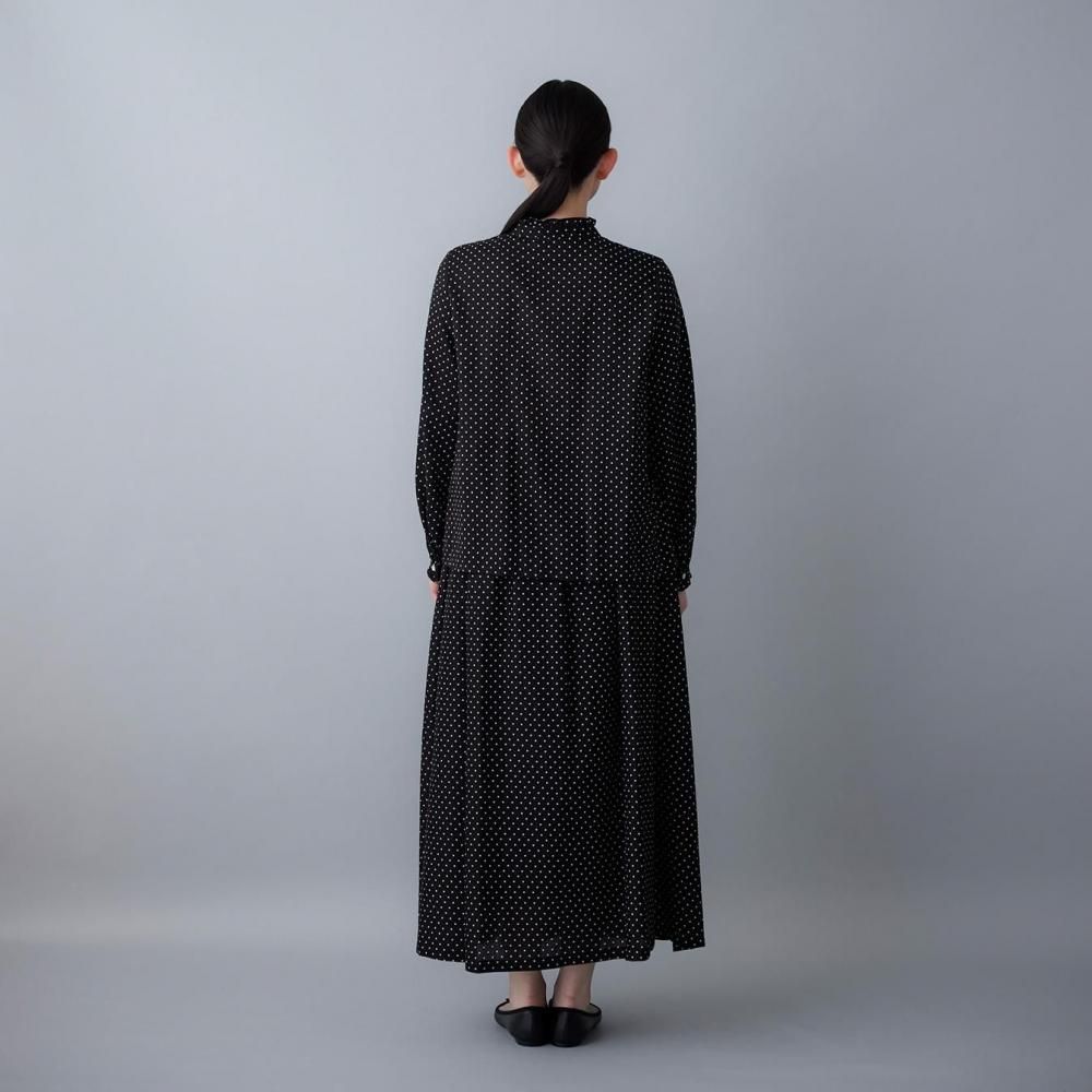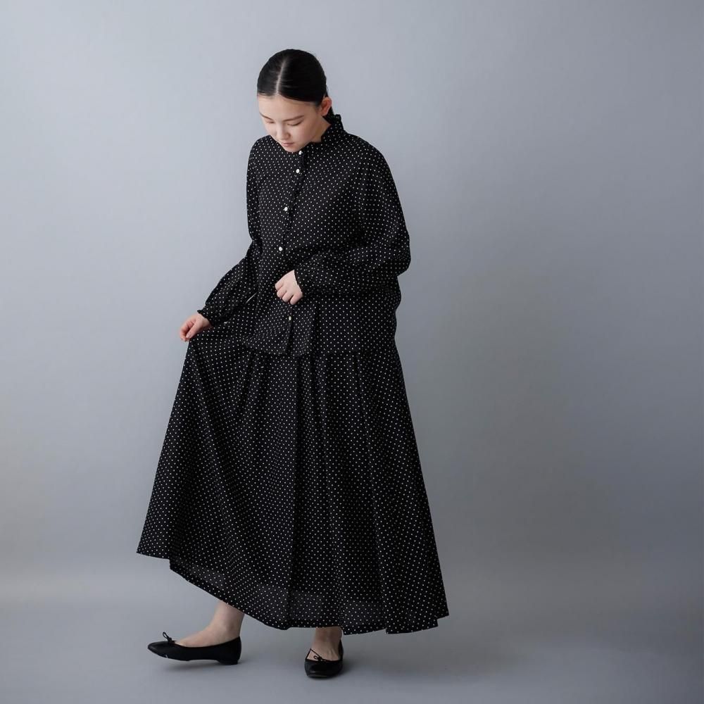 やわらかなぬくもりを感じるブラウンは、穏やかで落ち着いた印象。クラシカルなドット柄を引き立て、やさしく上品な雰囲気を纏います。
