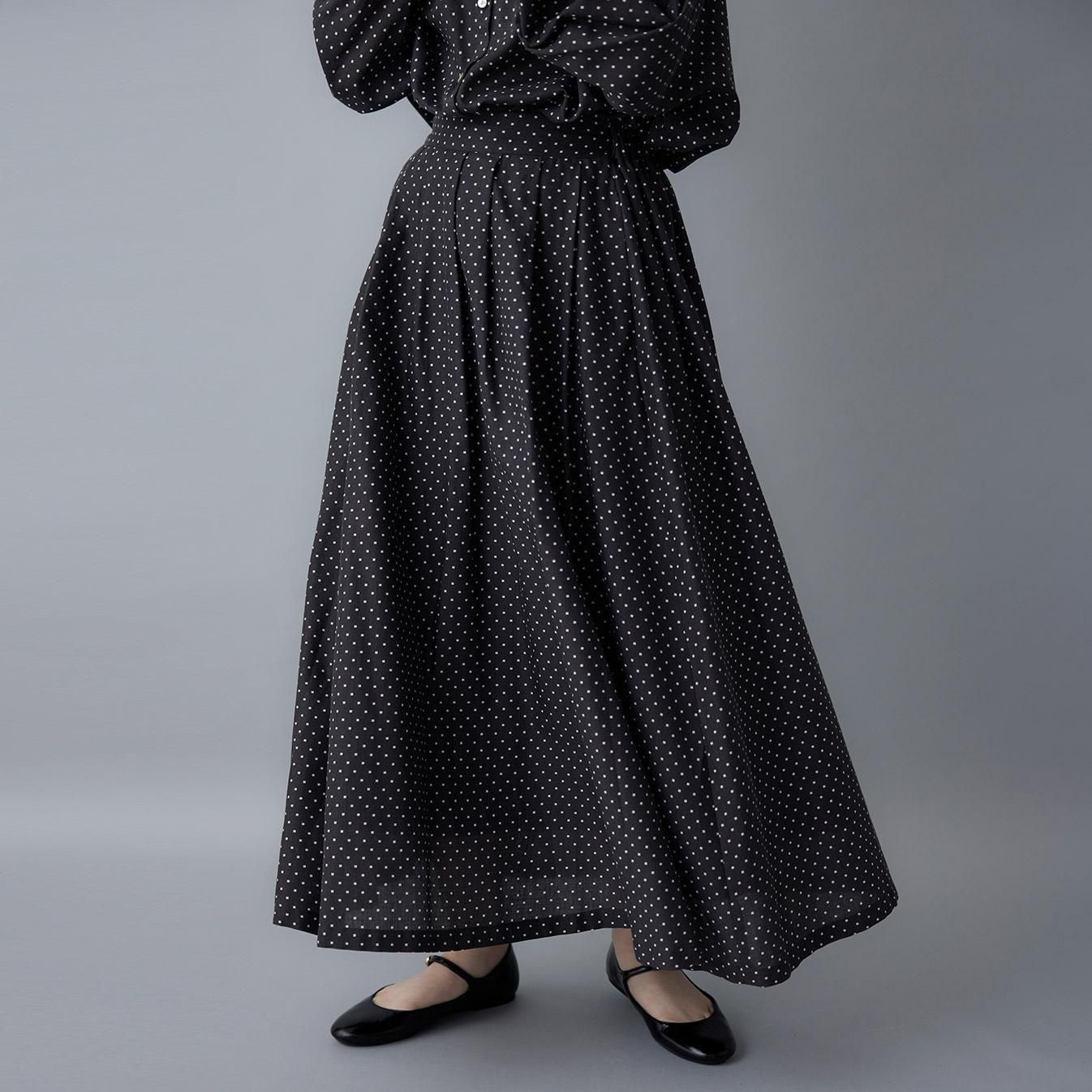 utilitéオリジナルのスクエアドットが印象的なタックスカートです。