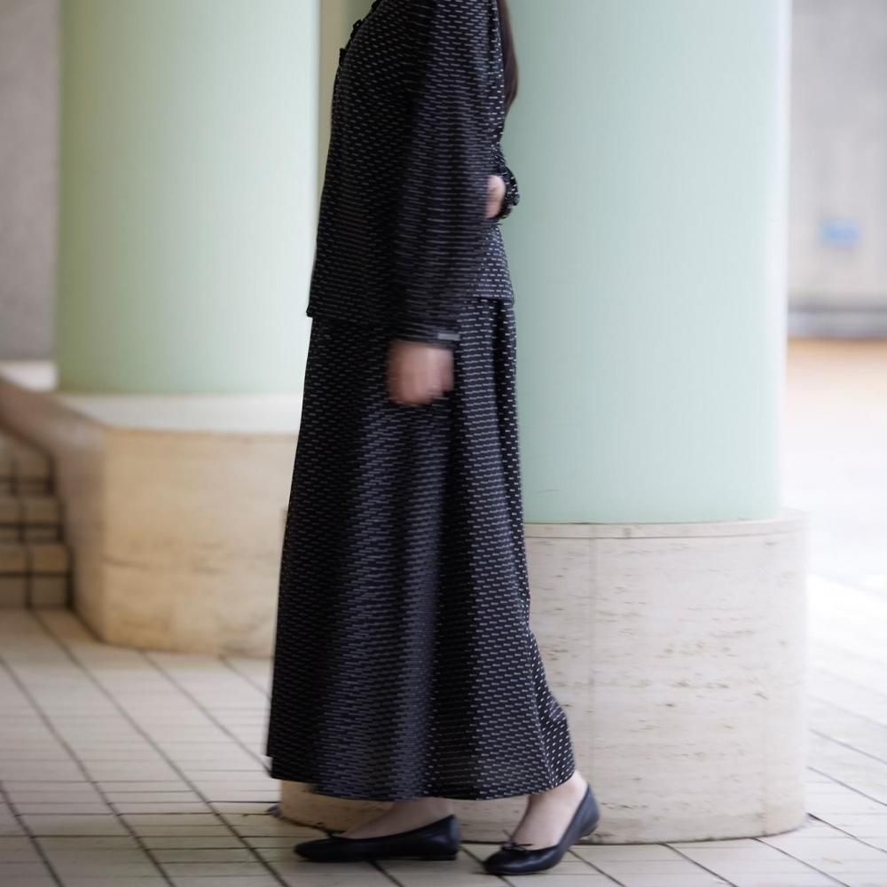 同素材のブラウスと組み合わせれば、ワンピースのようなまとまりのあるスタイルに仕上がり、奥ゆかしい華やぎがそっと漂います。
