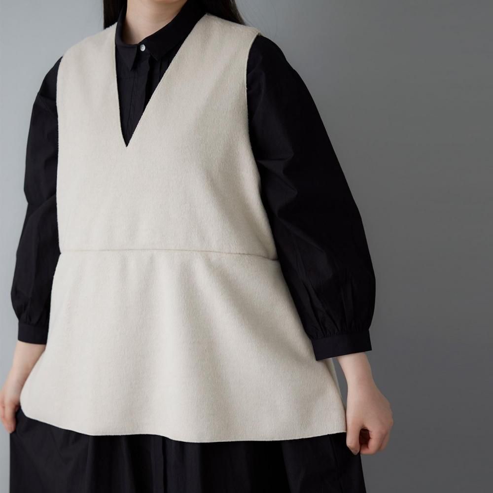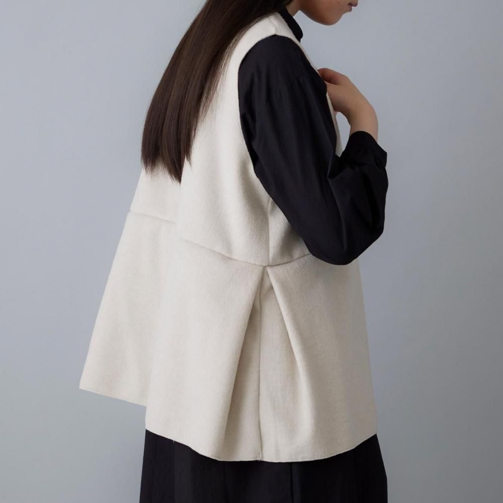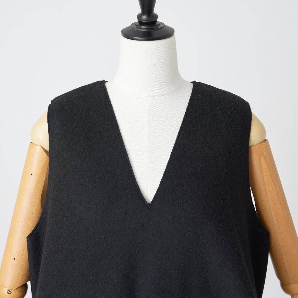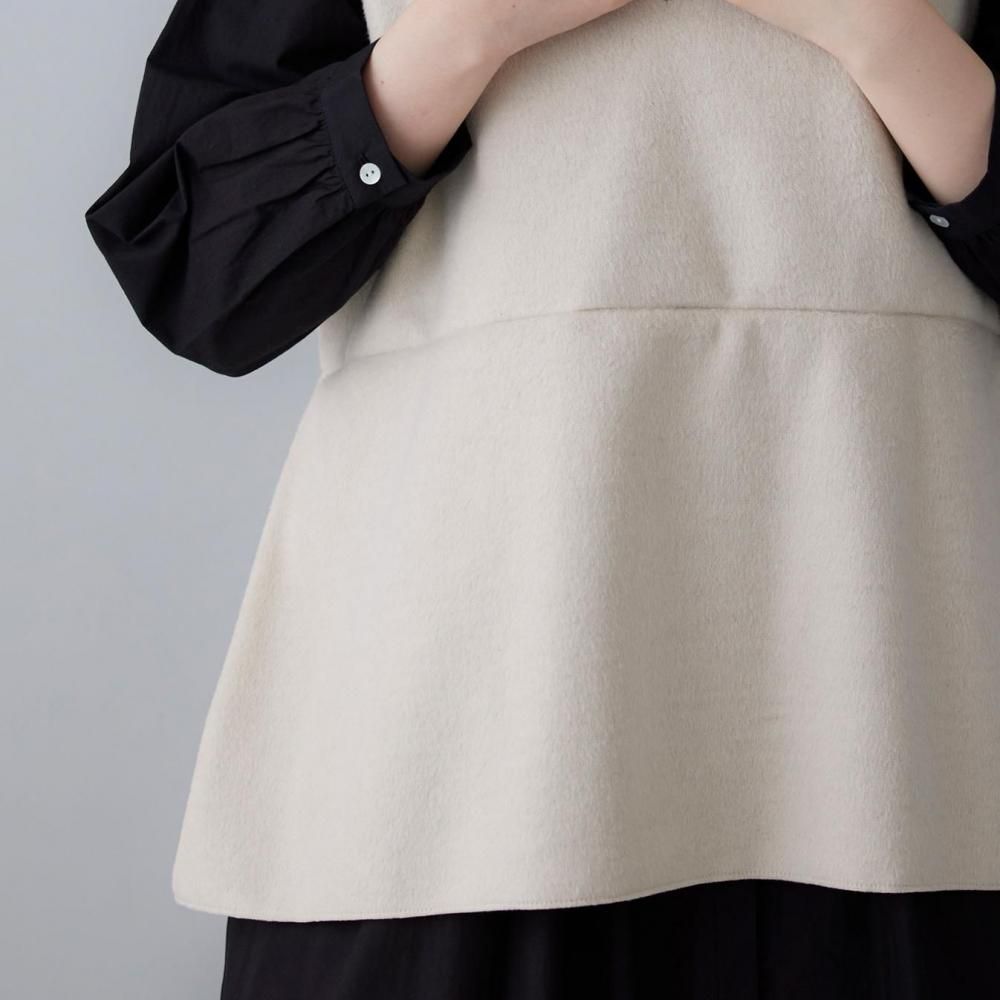 ふっくらとした生地の風合いが引き立つ、Vネックデザインのベストです。
