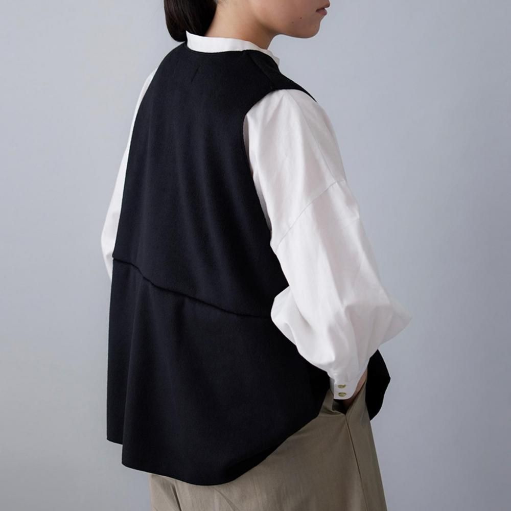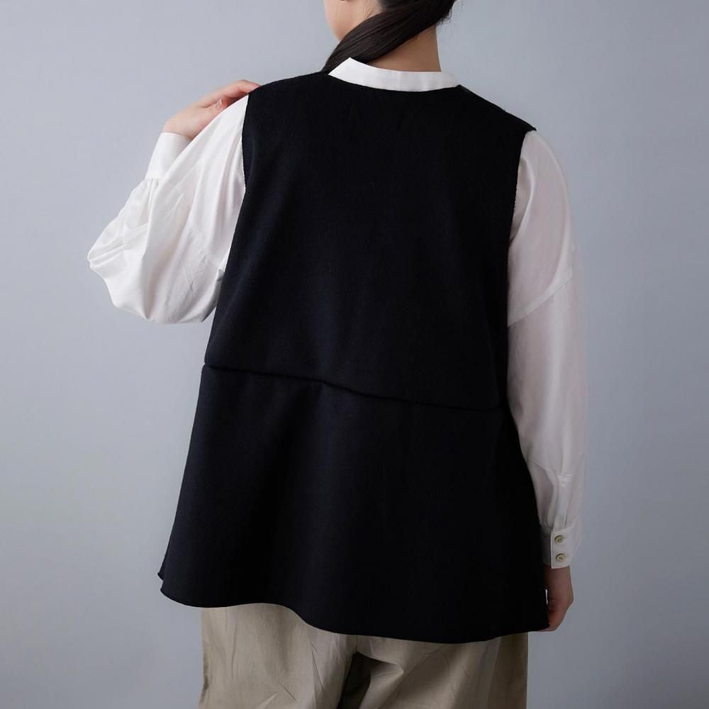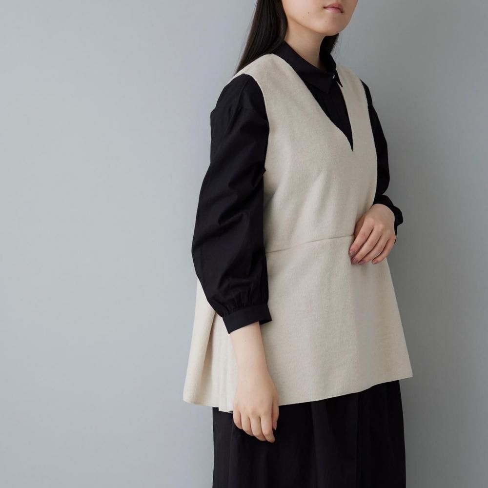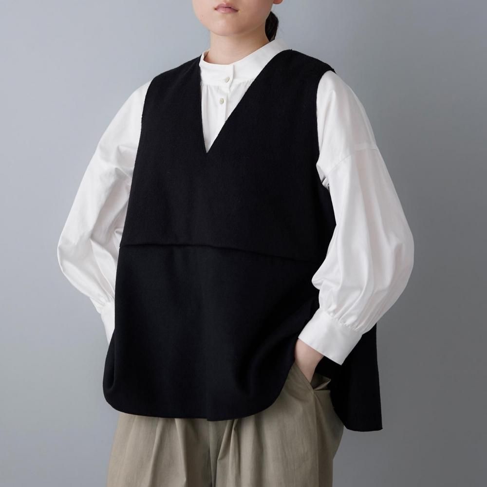ふっくらとした生地の風合いが引き立つ、Vネックデザインのベストです。
