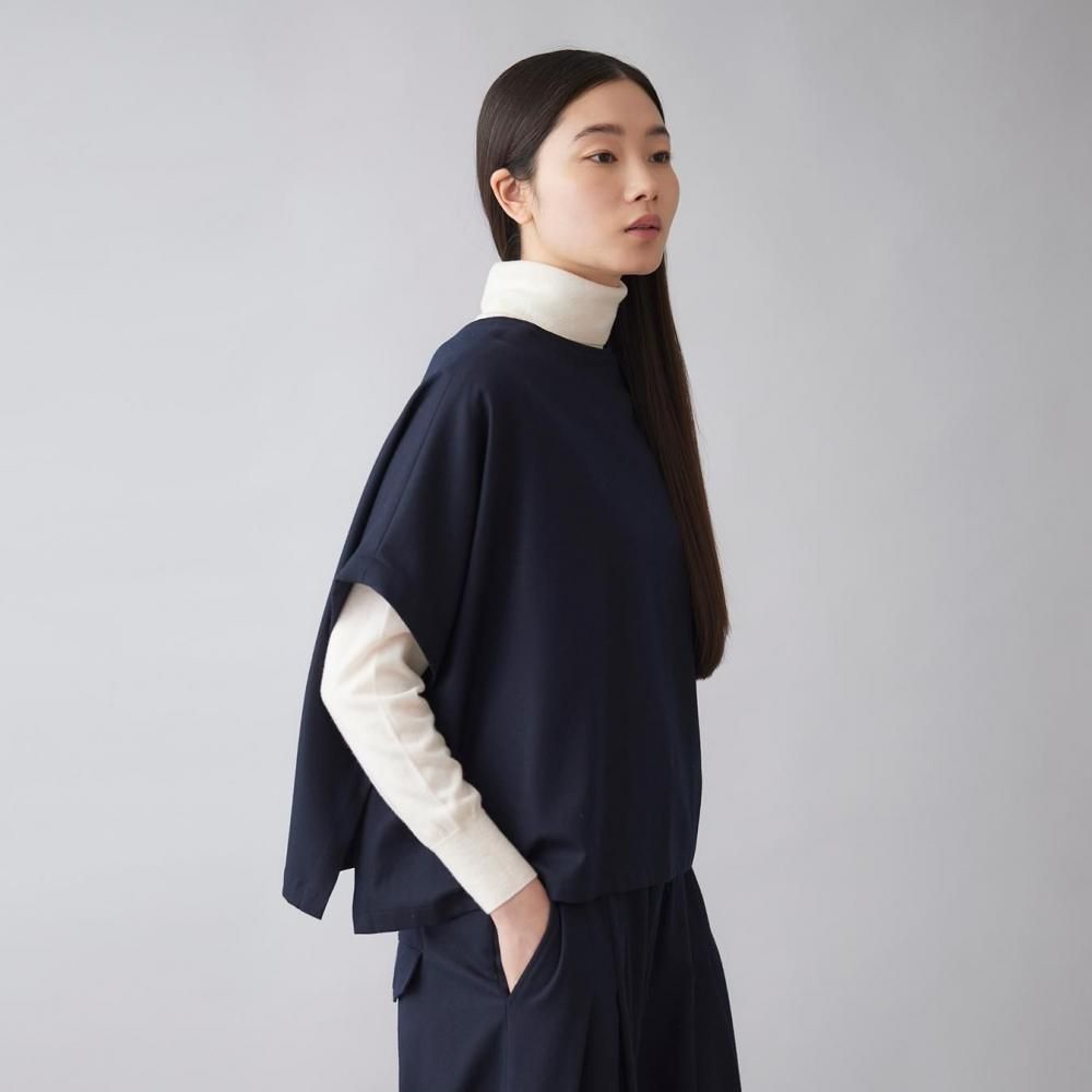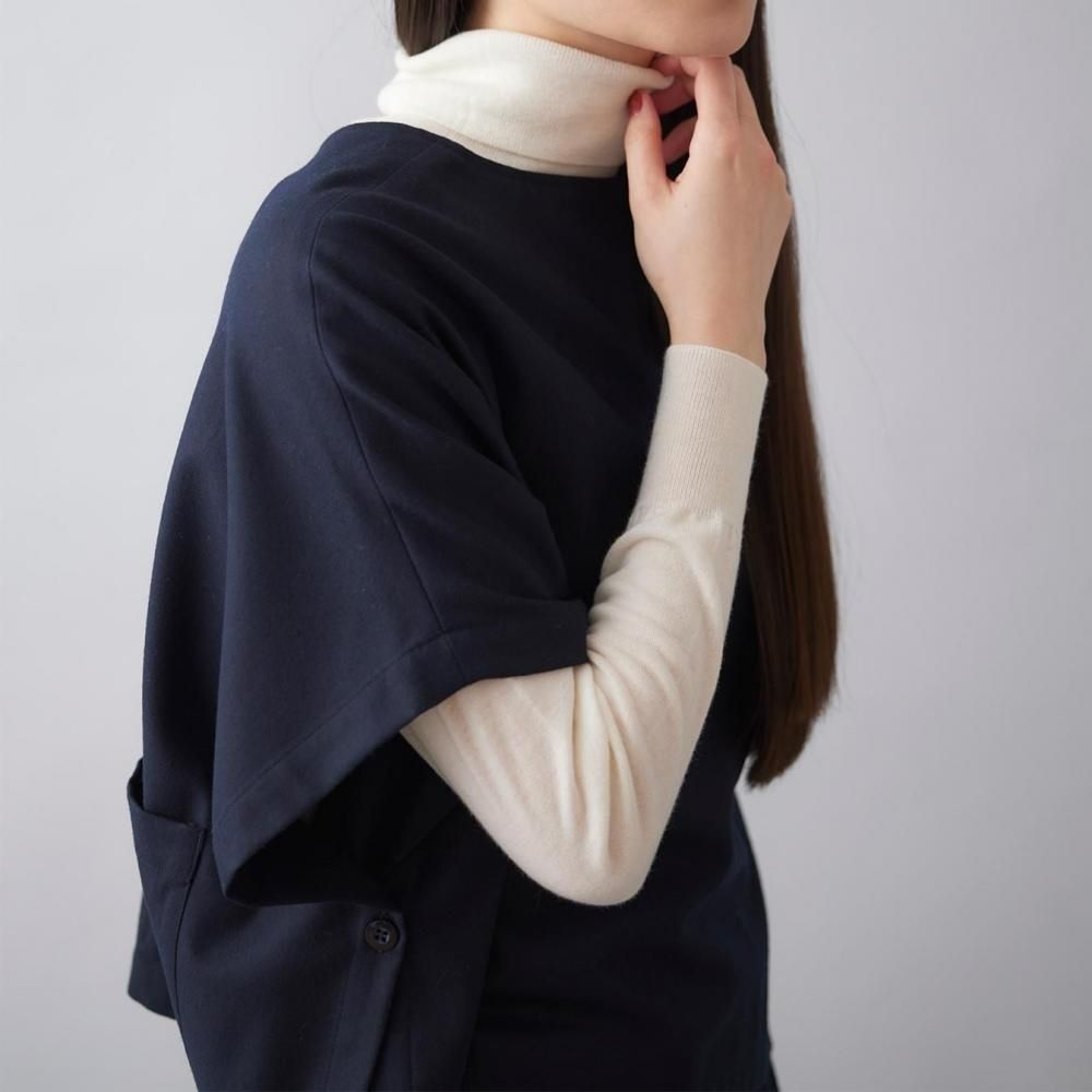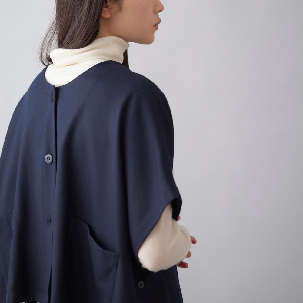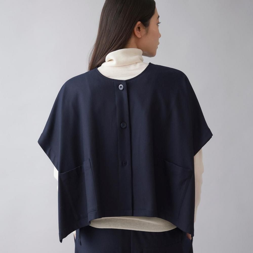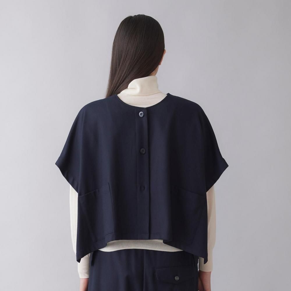 ボタンを前にしてカーディガンのように、後ろにしてシンプルなプルオーバーとして、一枚で2通りの着こなしが楽しめます。