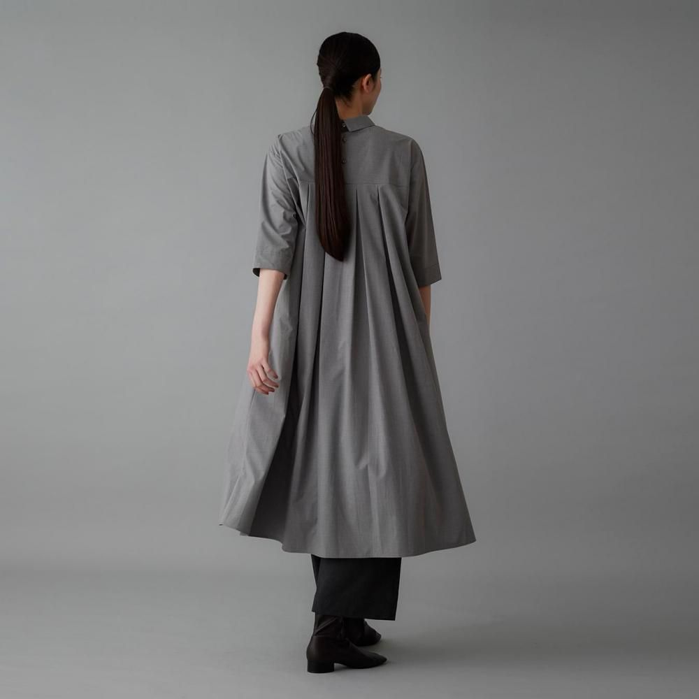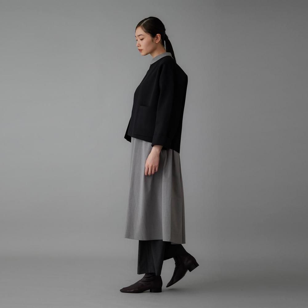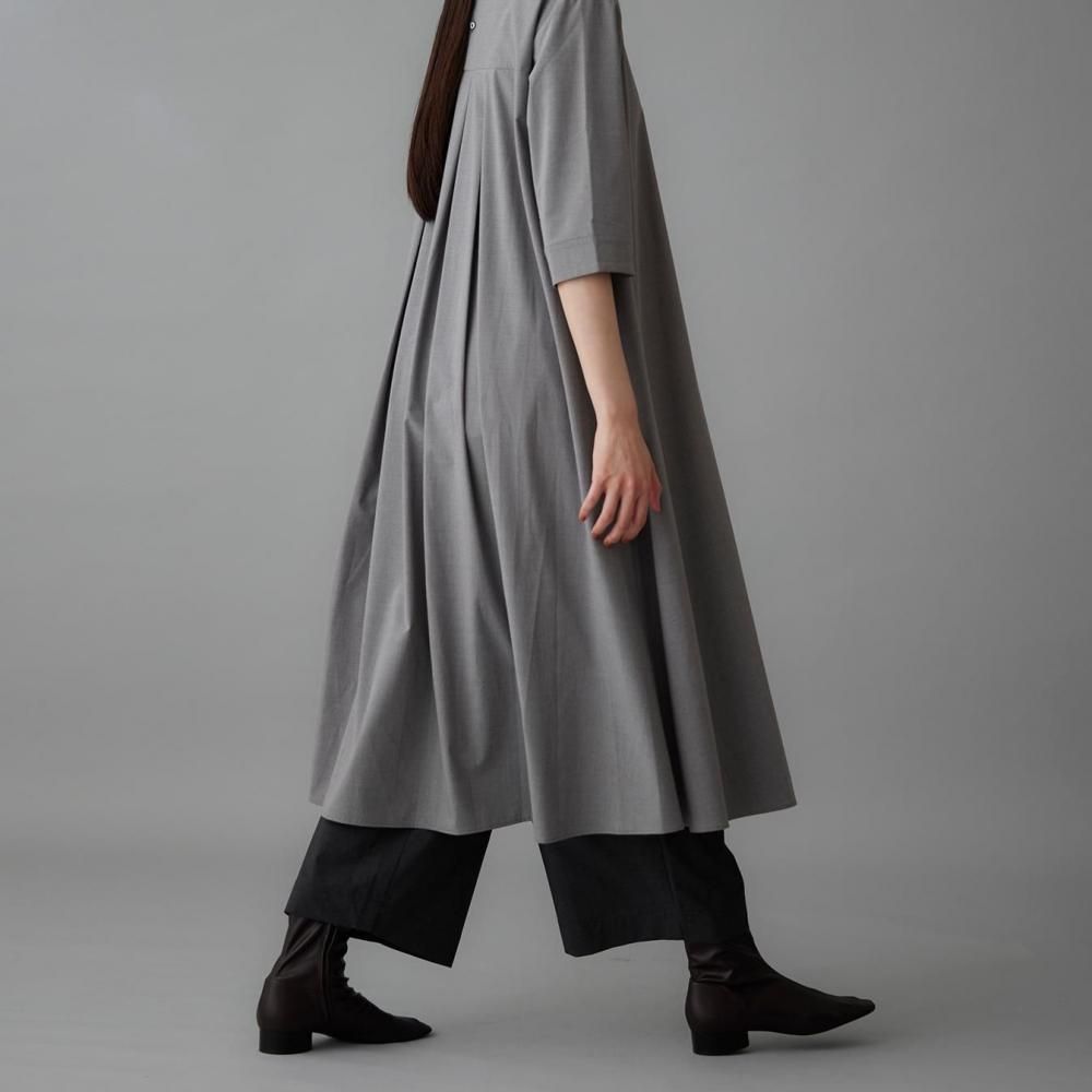 フロントはすっきりと、バックスタイルには切替下のタックがやわらかな動きを演出し、歩くたびに揺れるドレープが、日常の所作をより美しく見せてくれます。