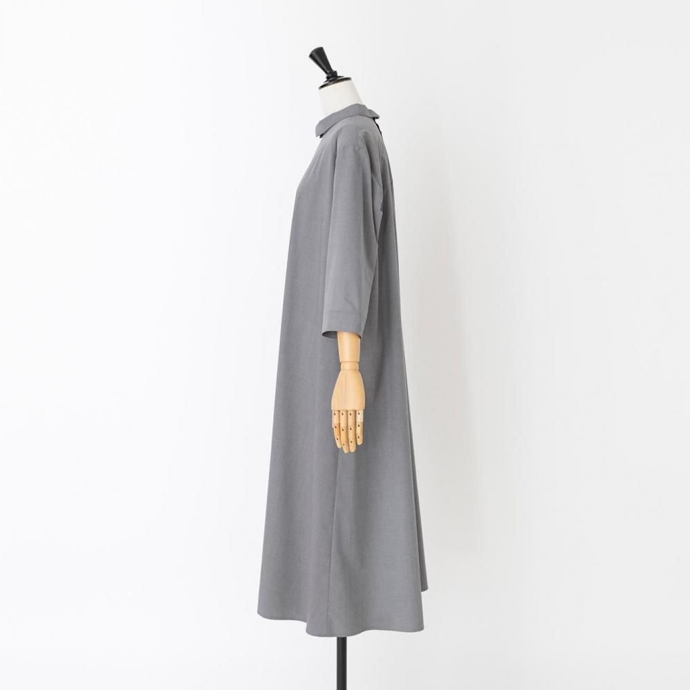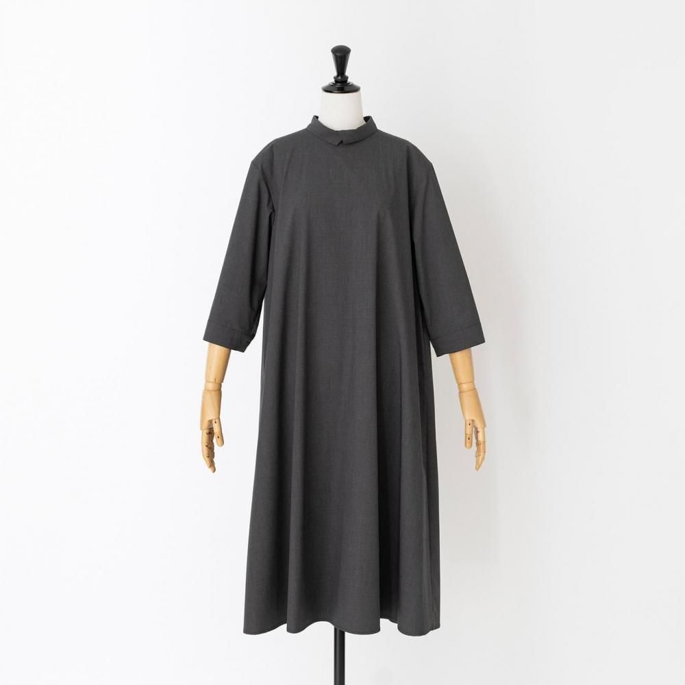 小さめの重なり衿から裾へと流れるラインが美しい、クラシカルなワンピースです。
