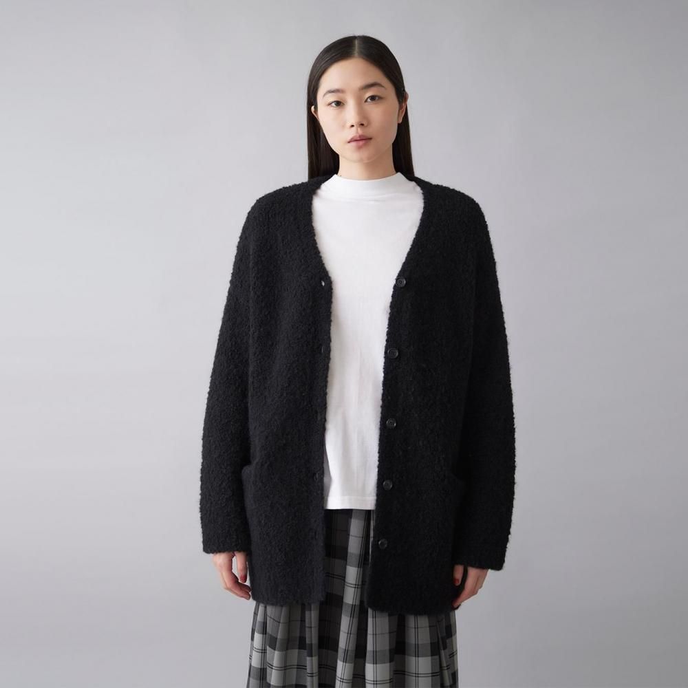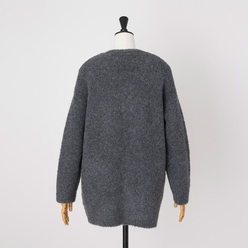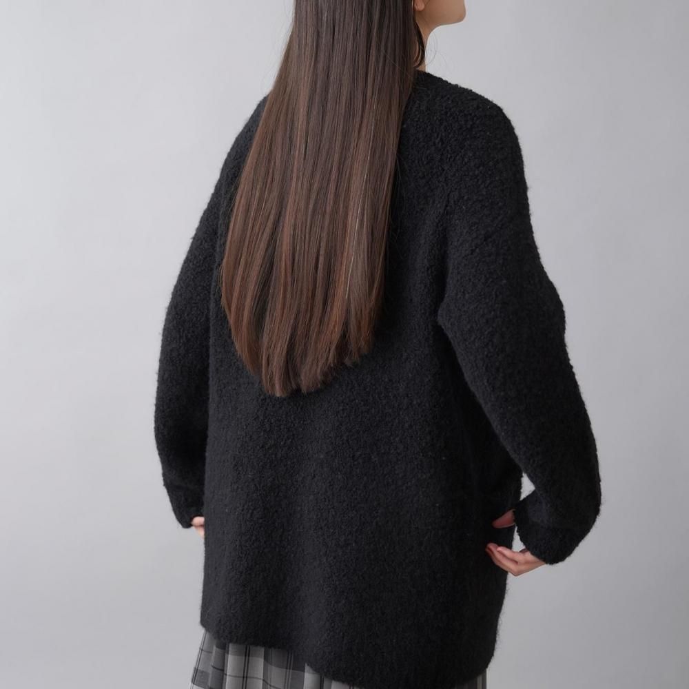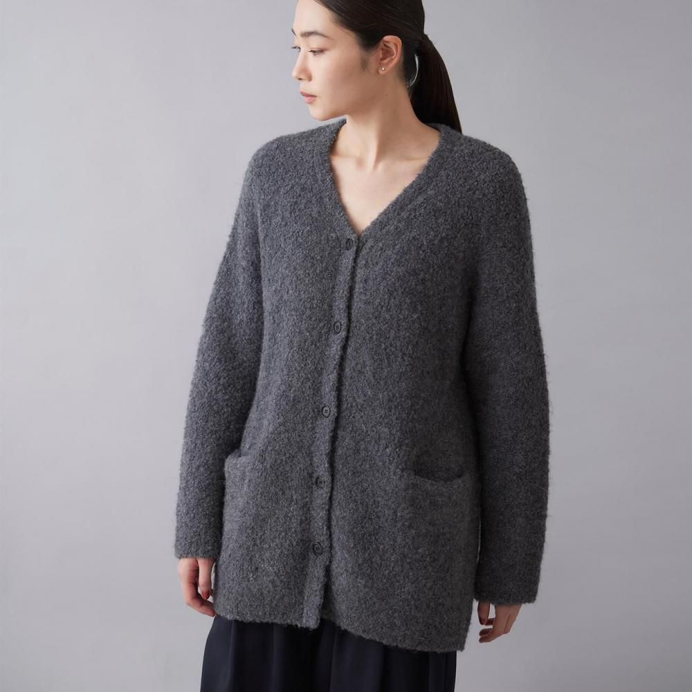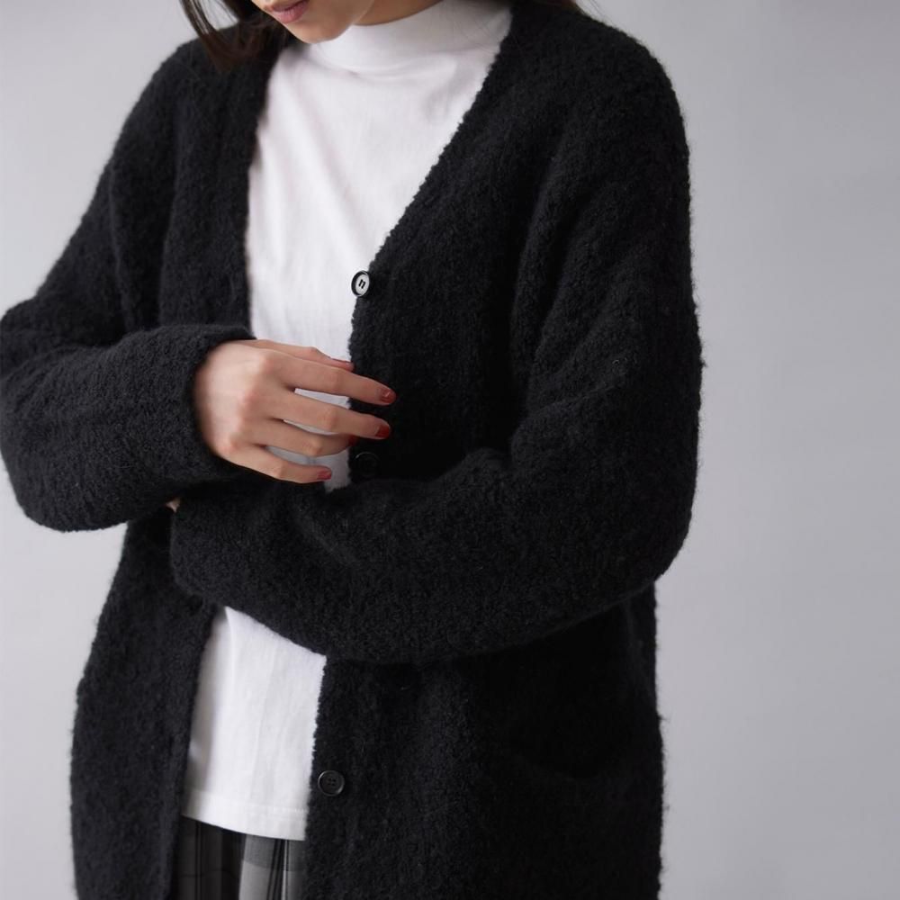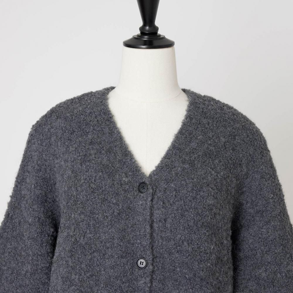 アウター感覚で着られる、ブークレニットのカーディガン。