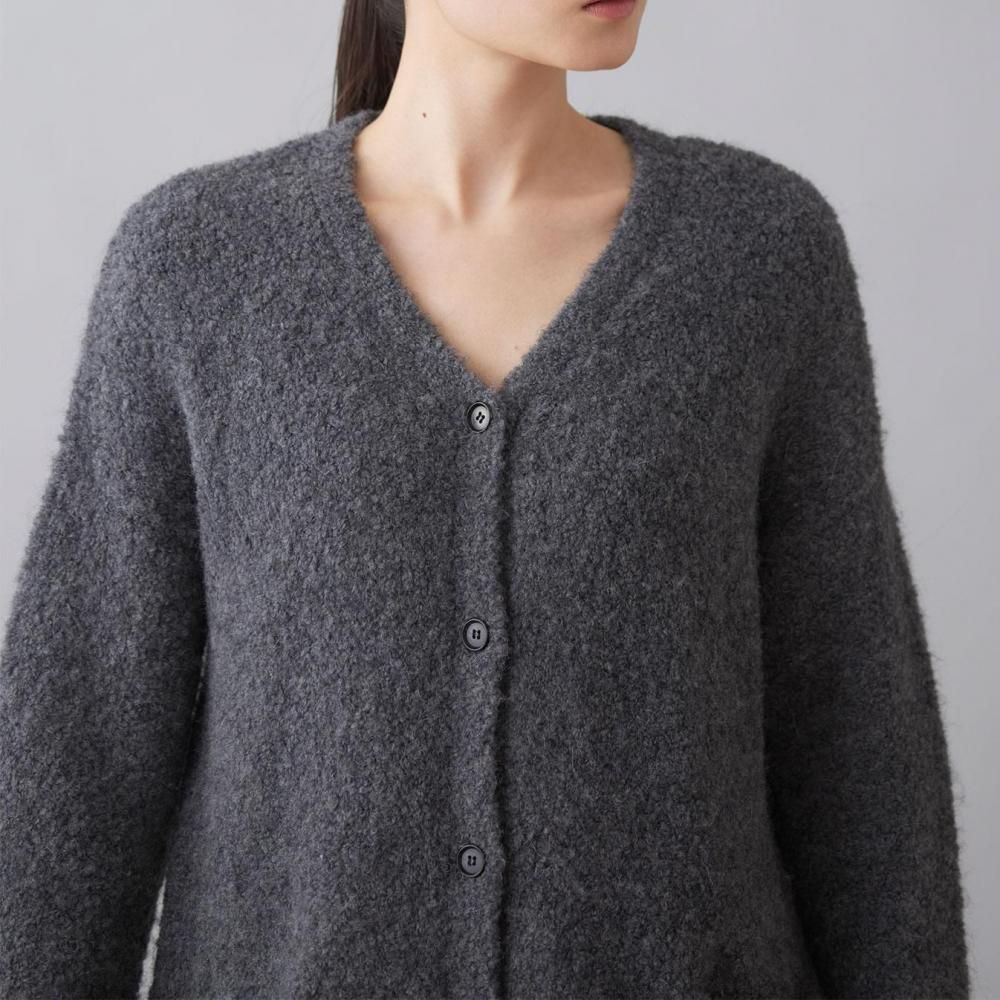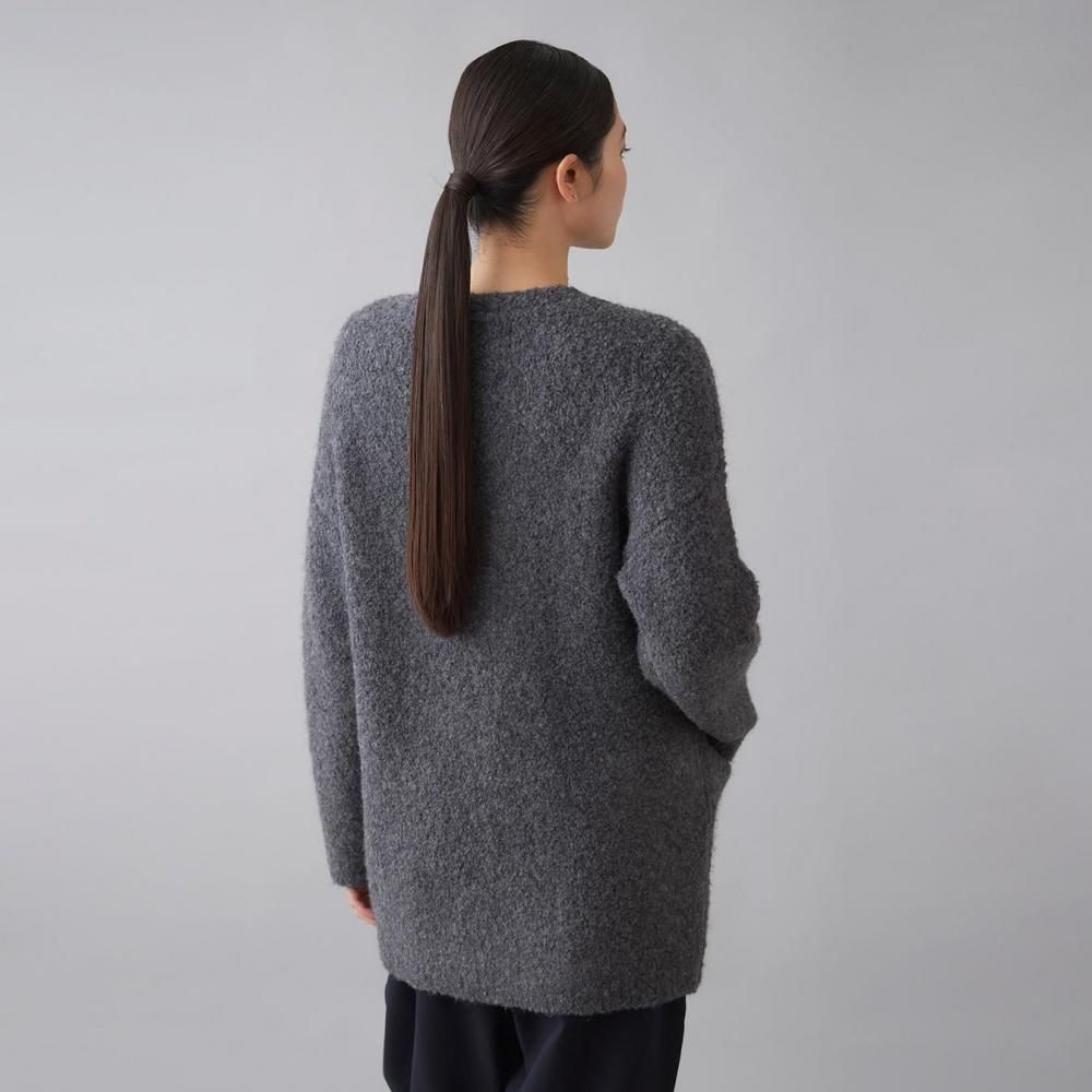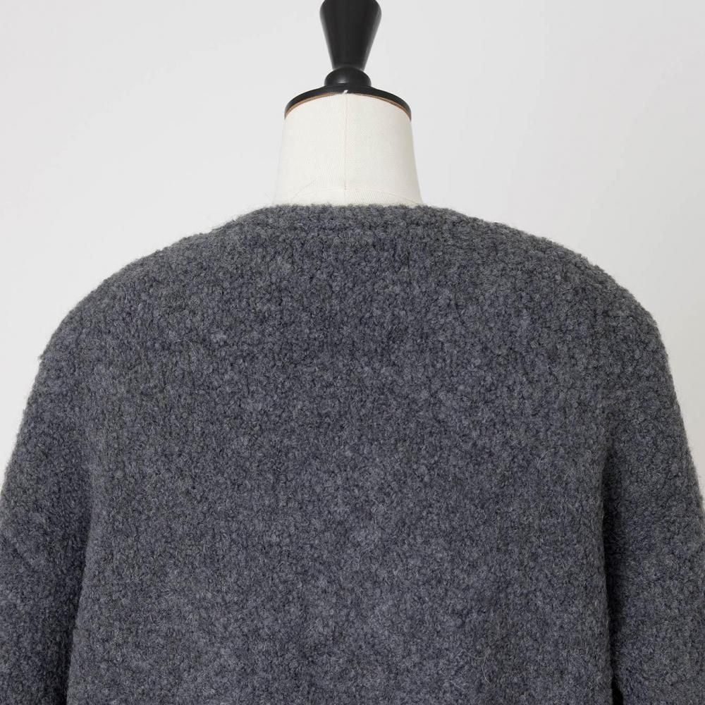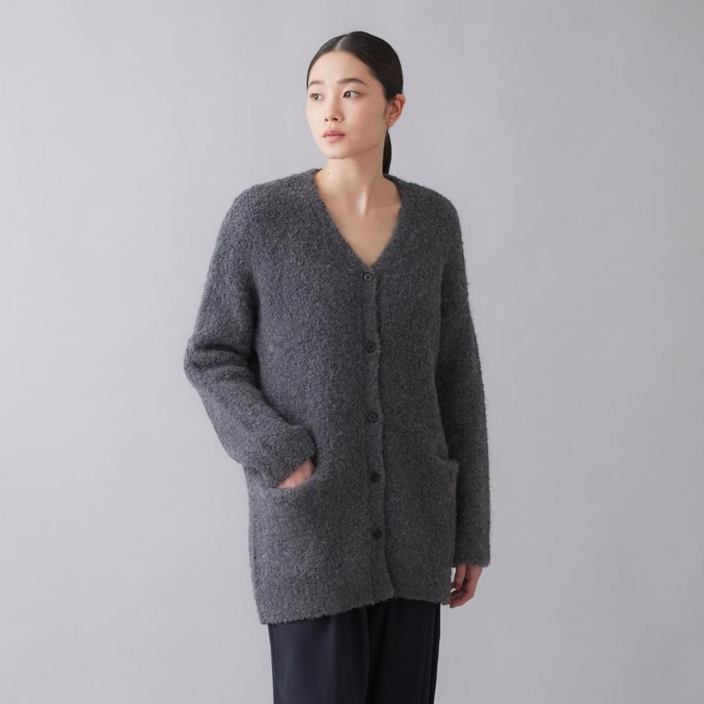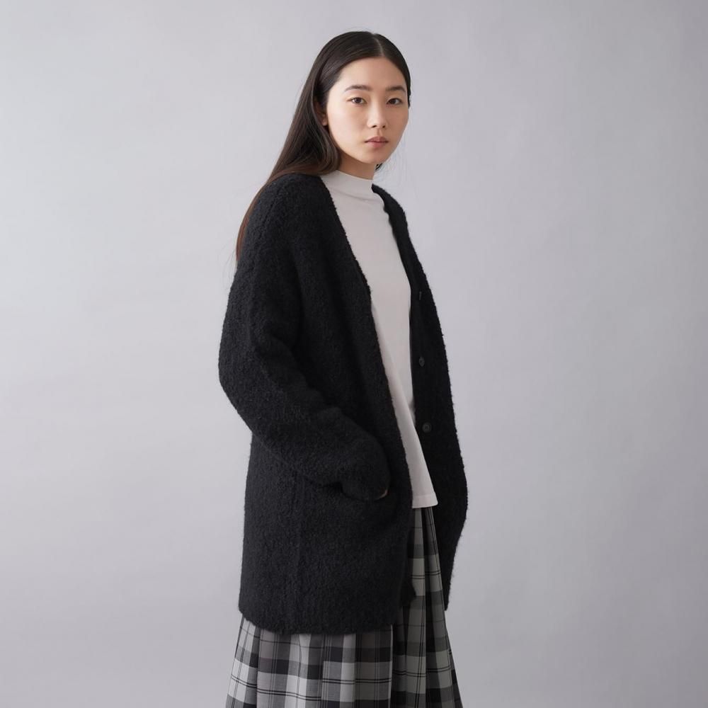 アウター感覚で着られる、ブークレニットのカーディガン。