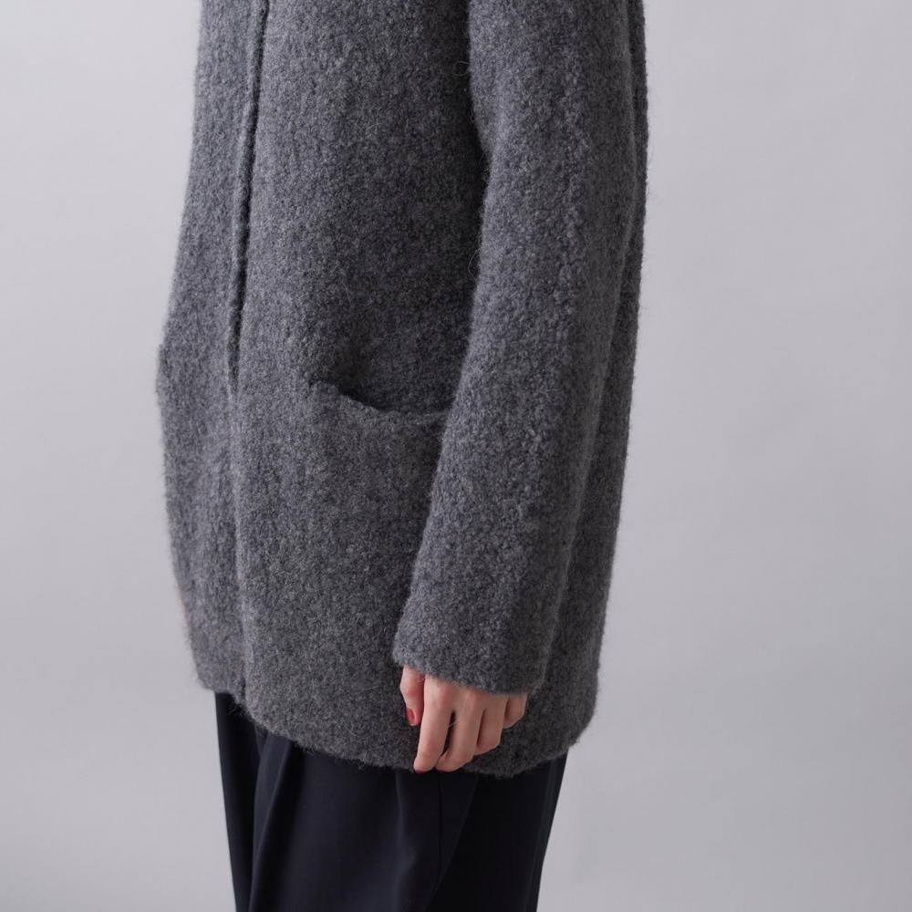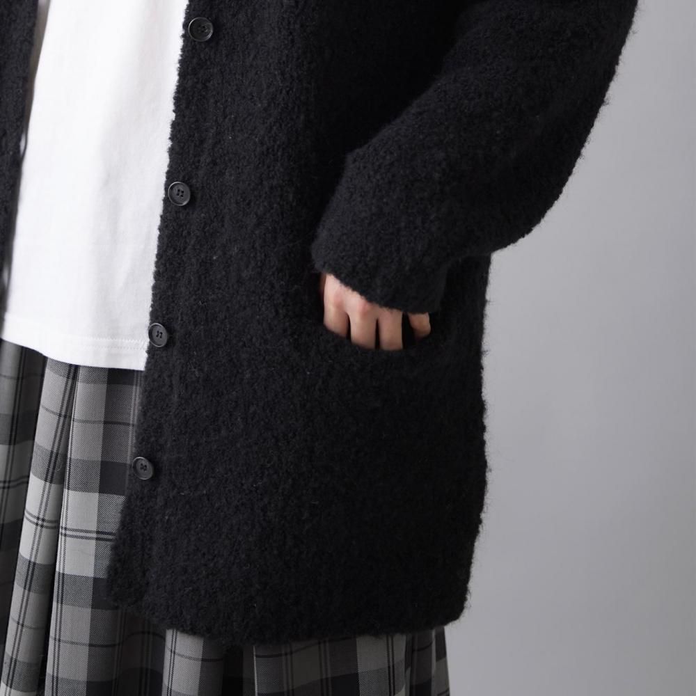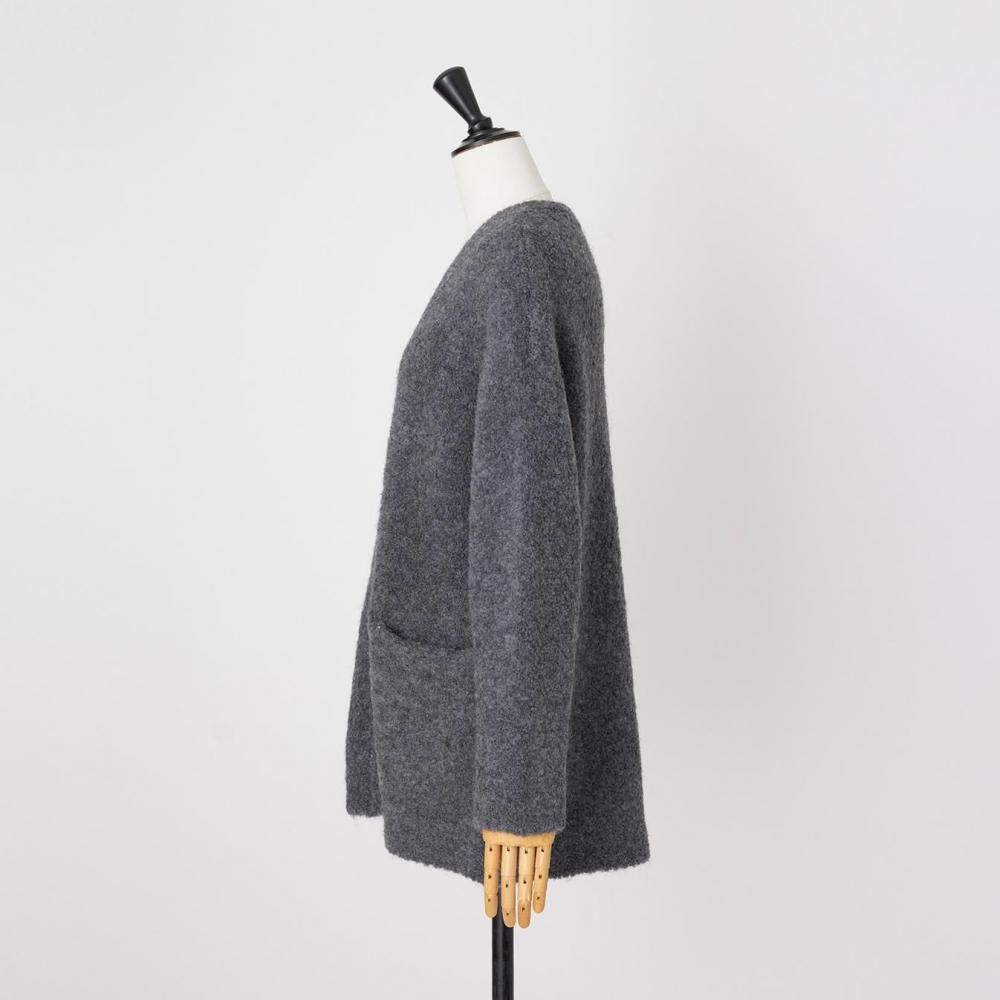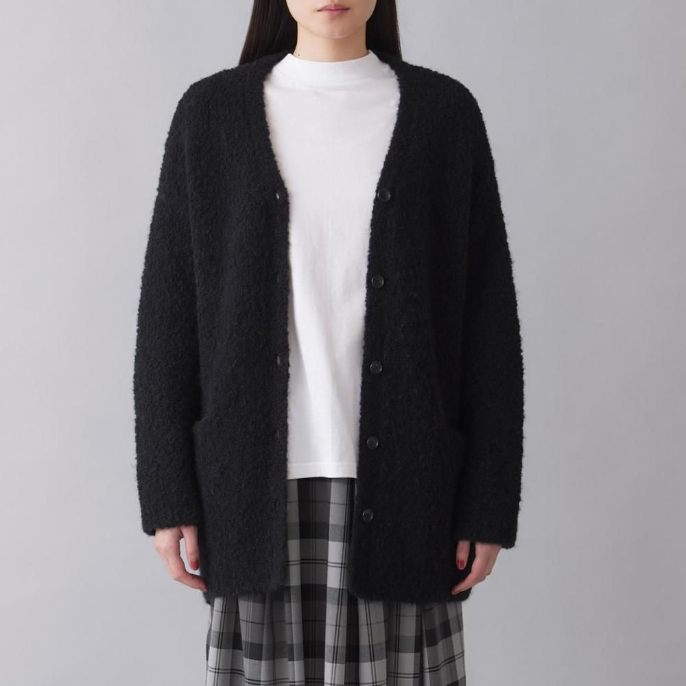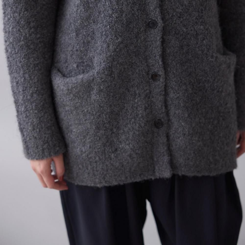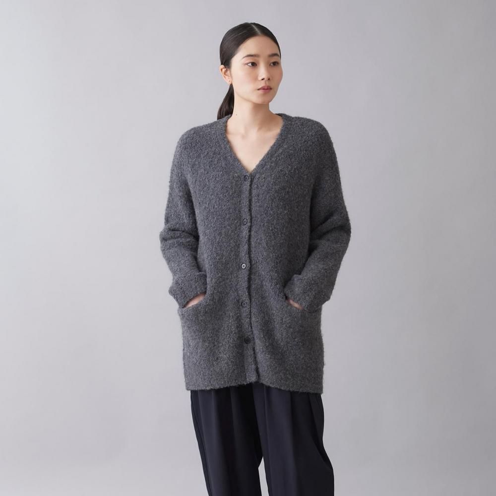 アウター感覚で着られる、ブークレニットのカーディガン。