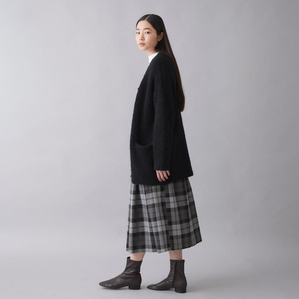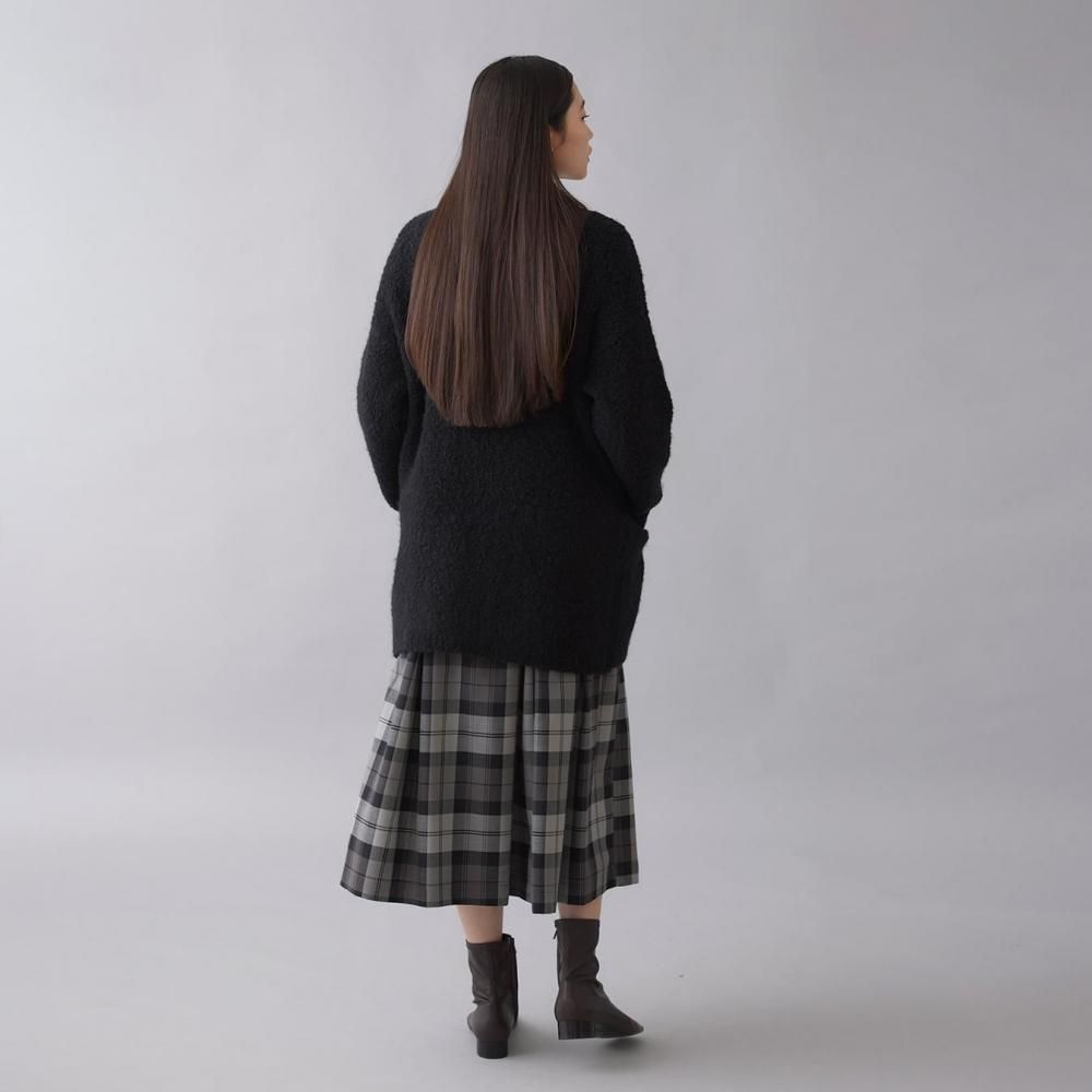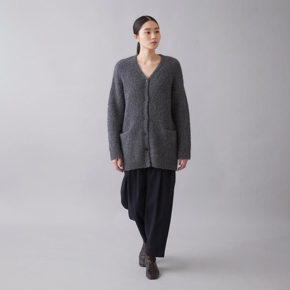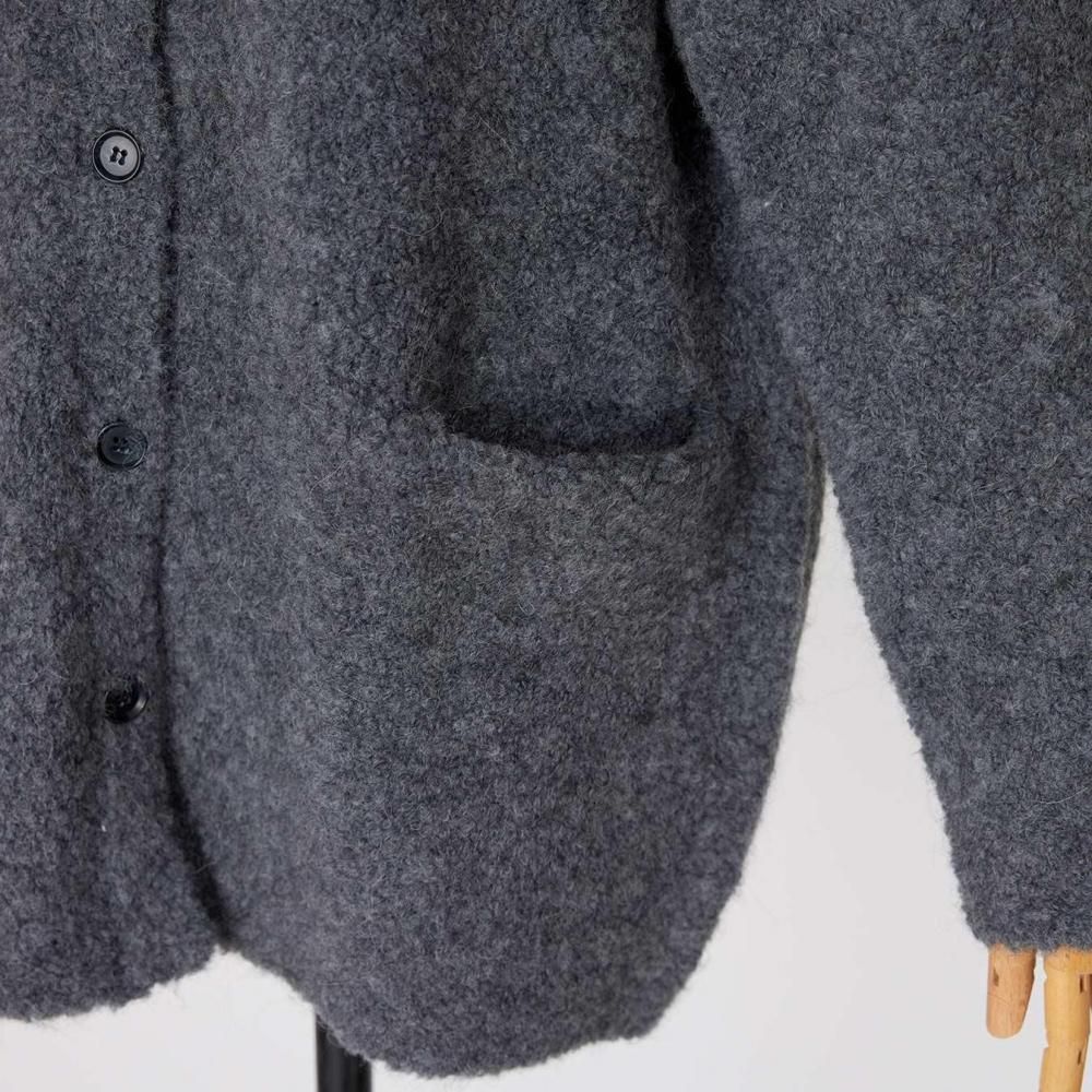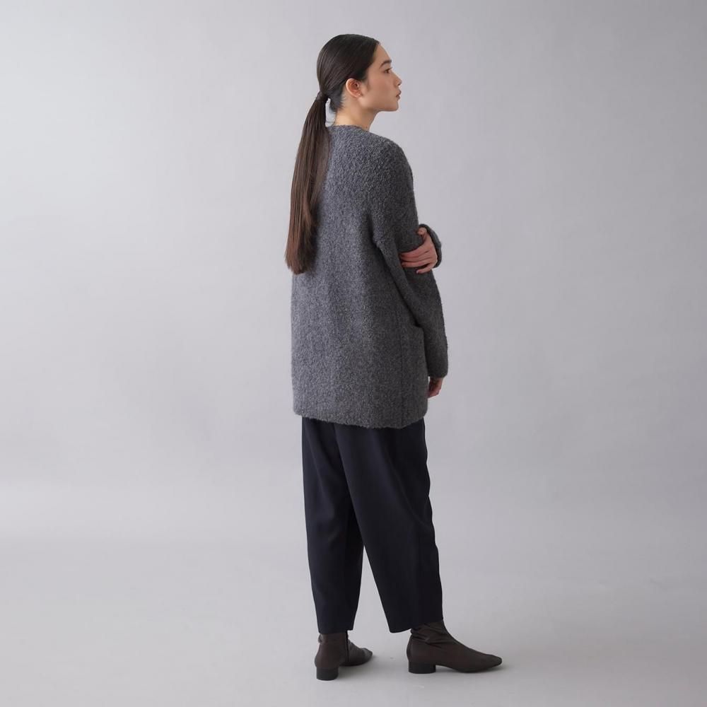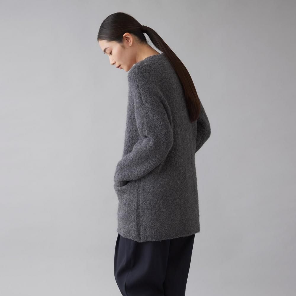 アウター感覚で着られる、ブークレニットのカーディガン。