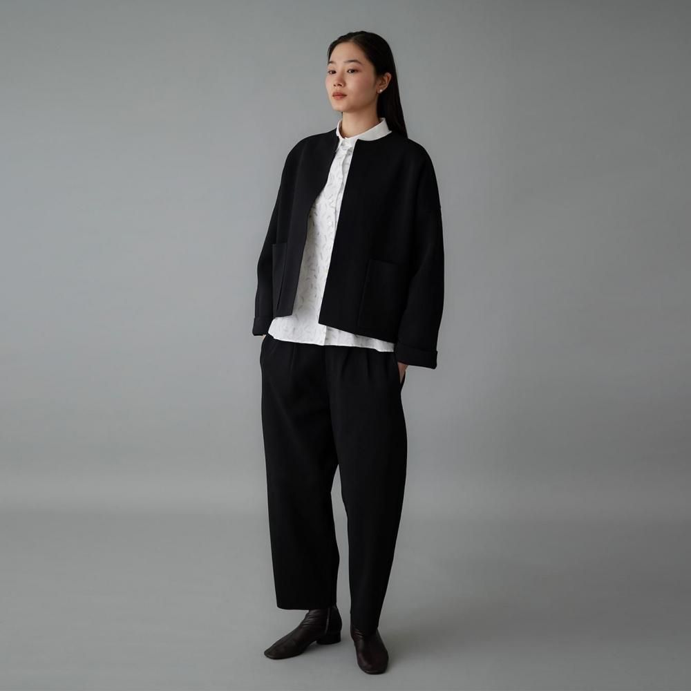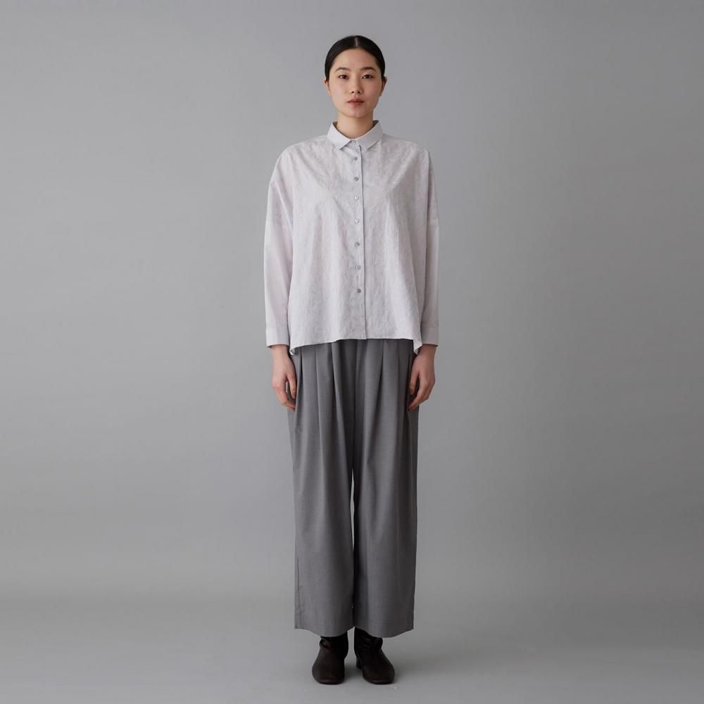 肌あたりの良い素材感は、一枚でも、ニットとのレイヤードにもおさまりの良い生地感。