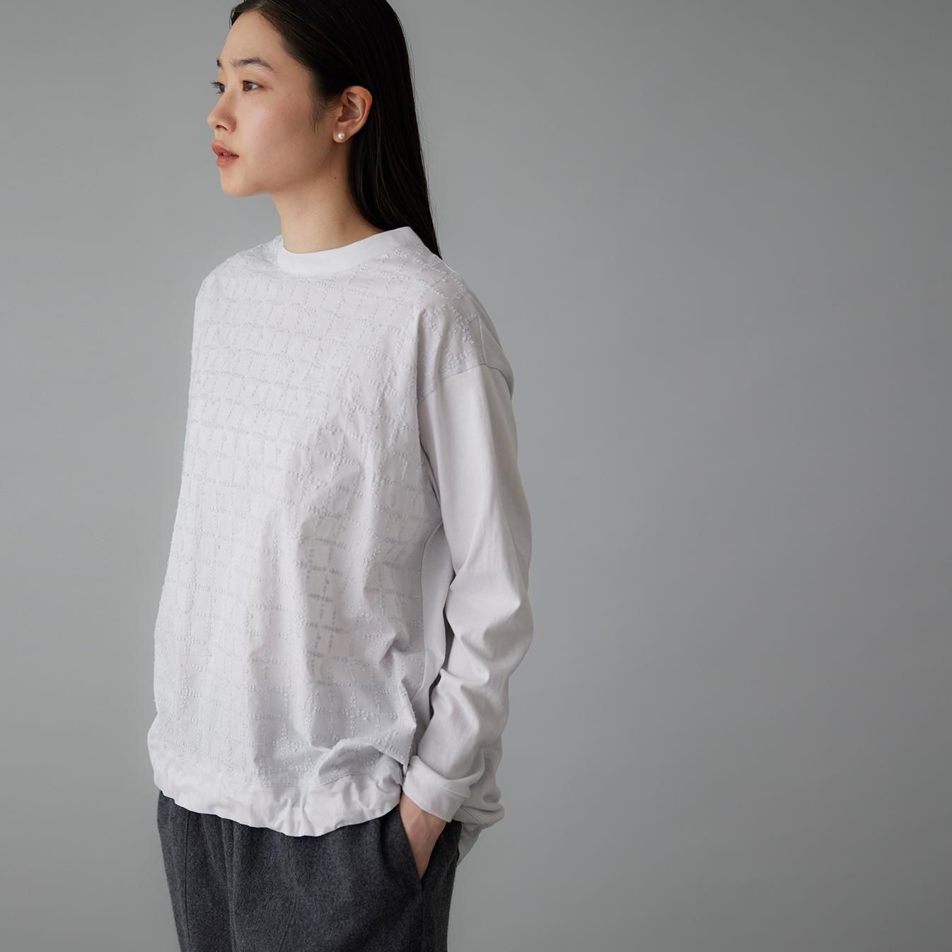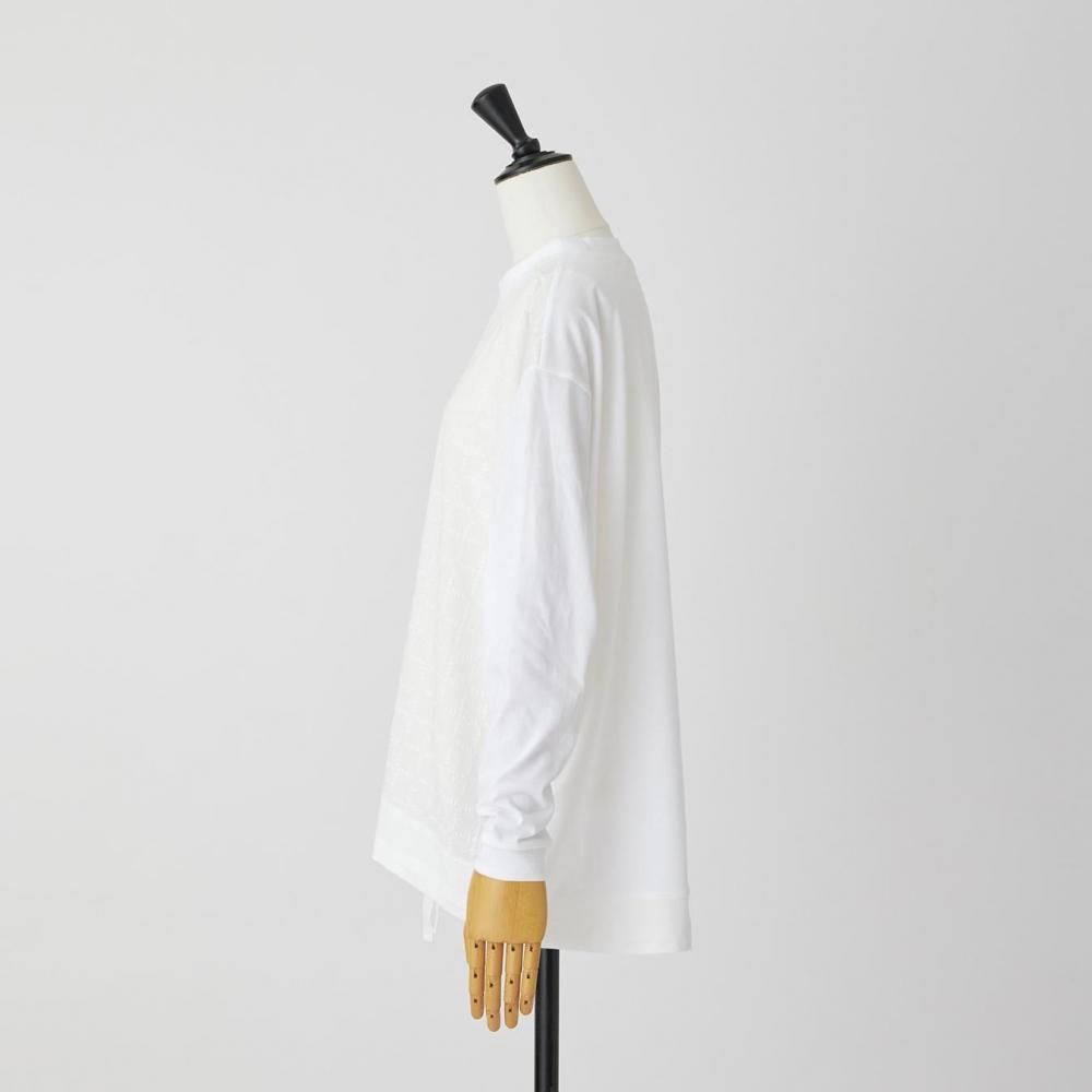 軽やかな刺繍生地と柔らかなカットソー素材の組み合わせが、上品な抜け感を演出します。