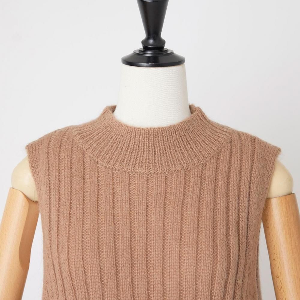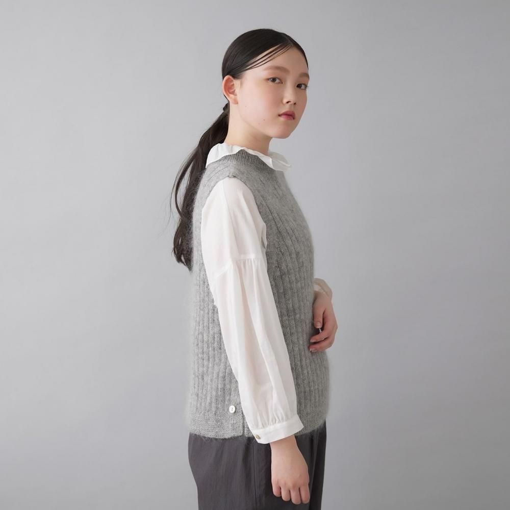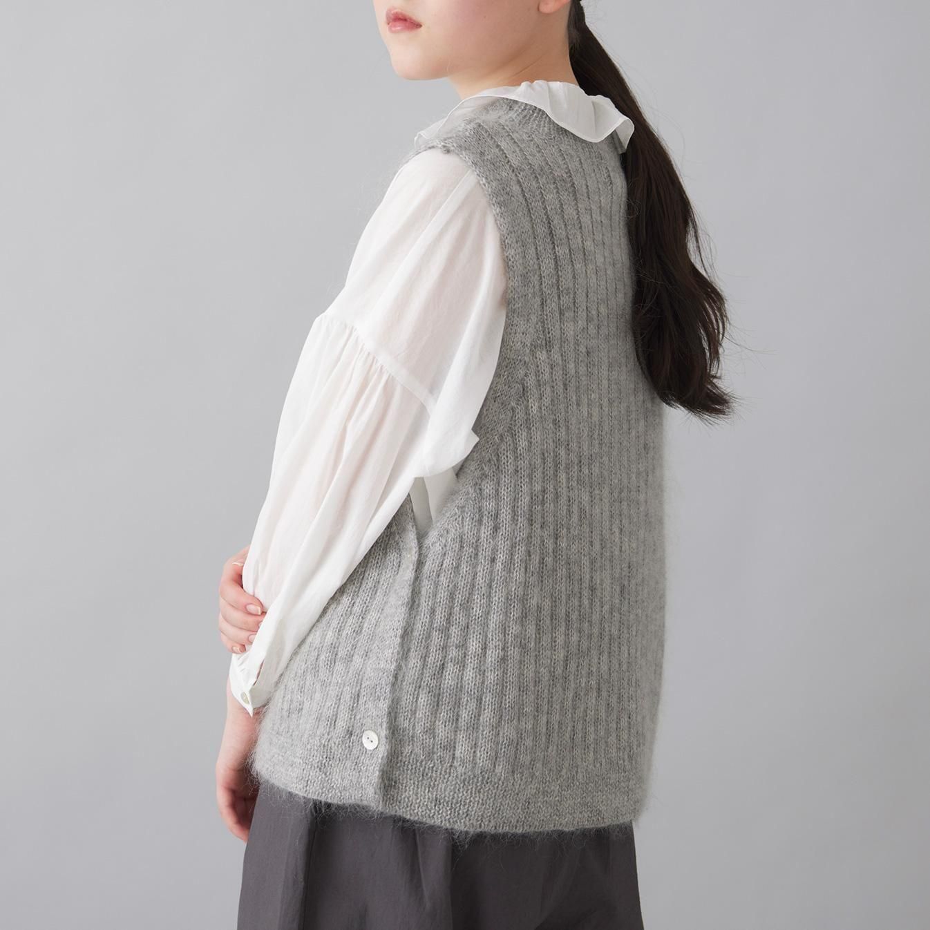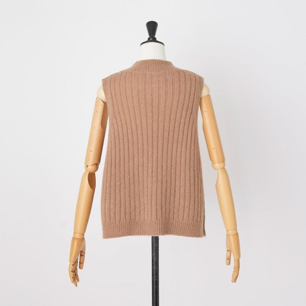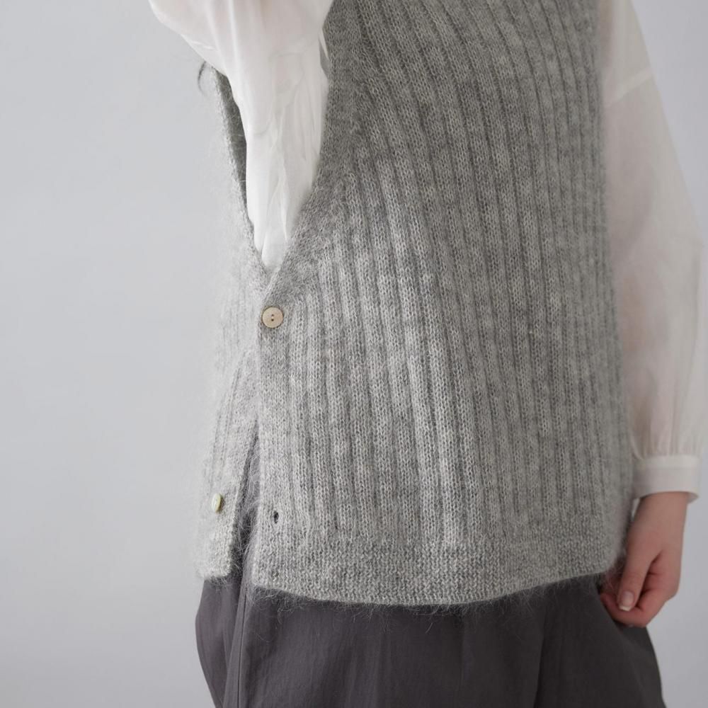 カシミヤのようになめらかで、毛足の長い糸が自然なツヤとやわらかさを生み出す、あたたかみのあるニットベストです。