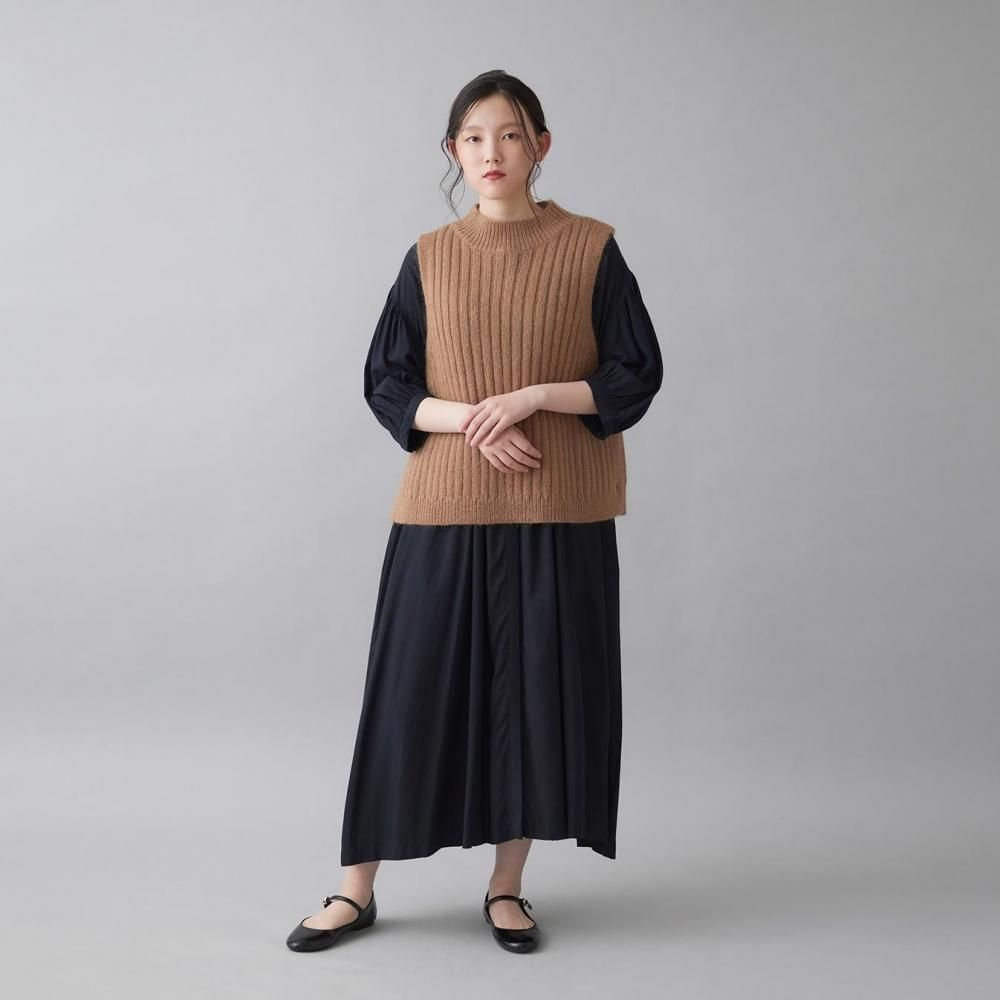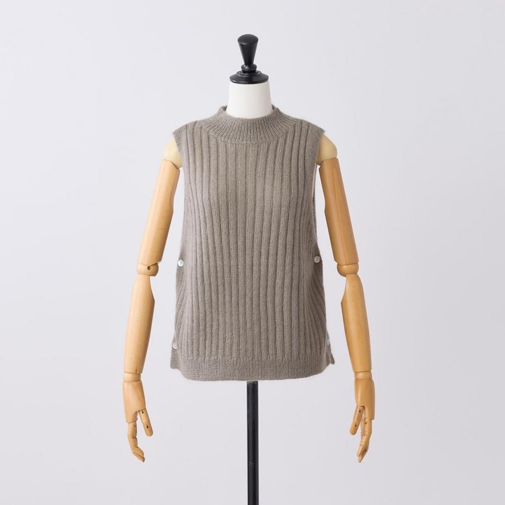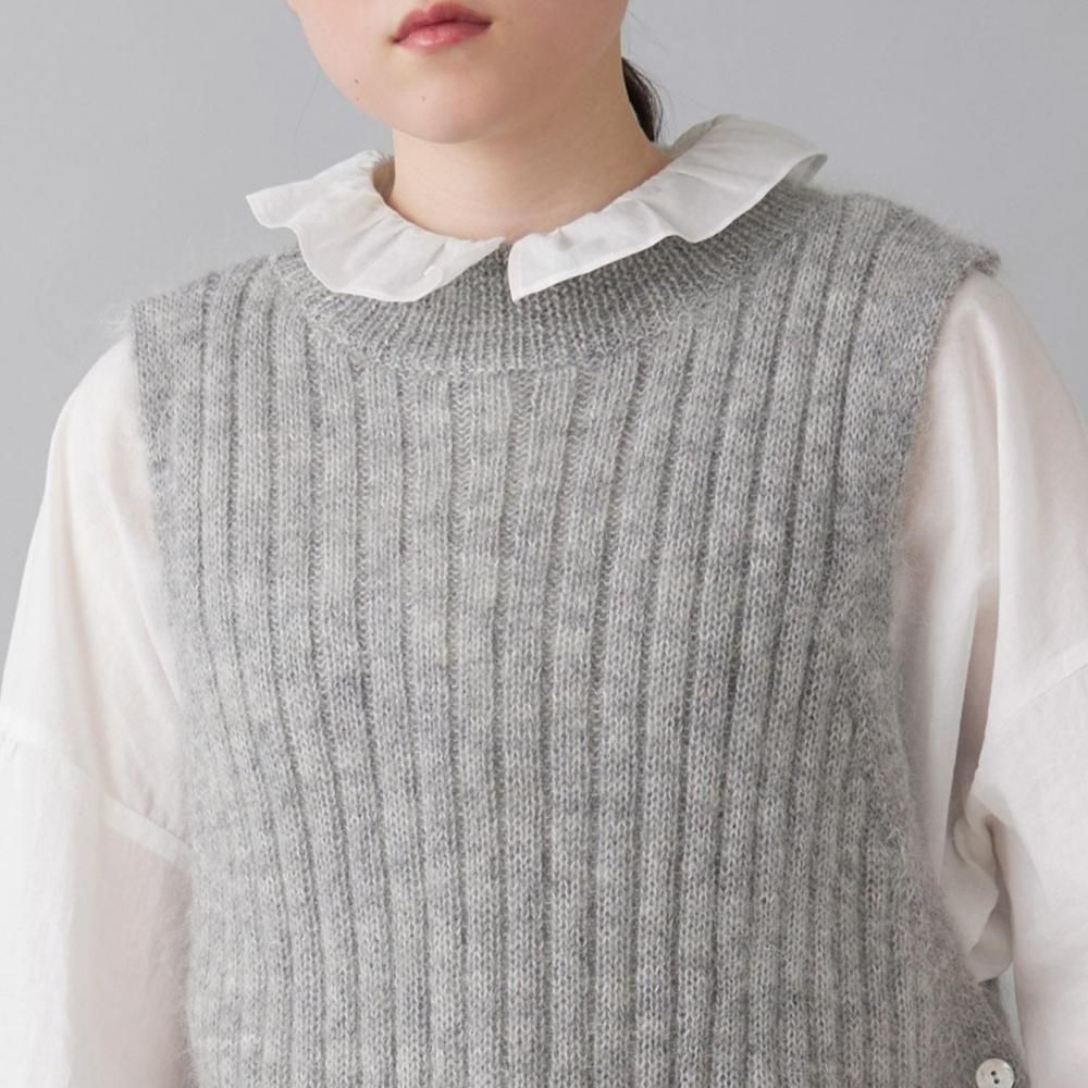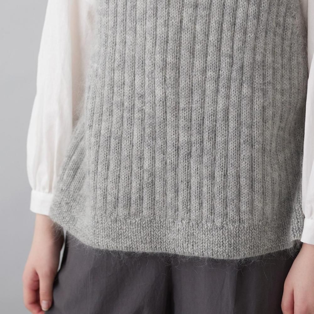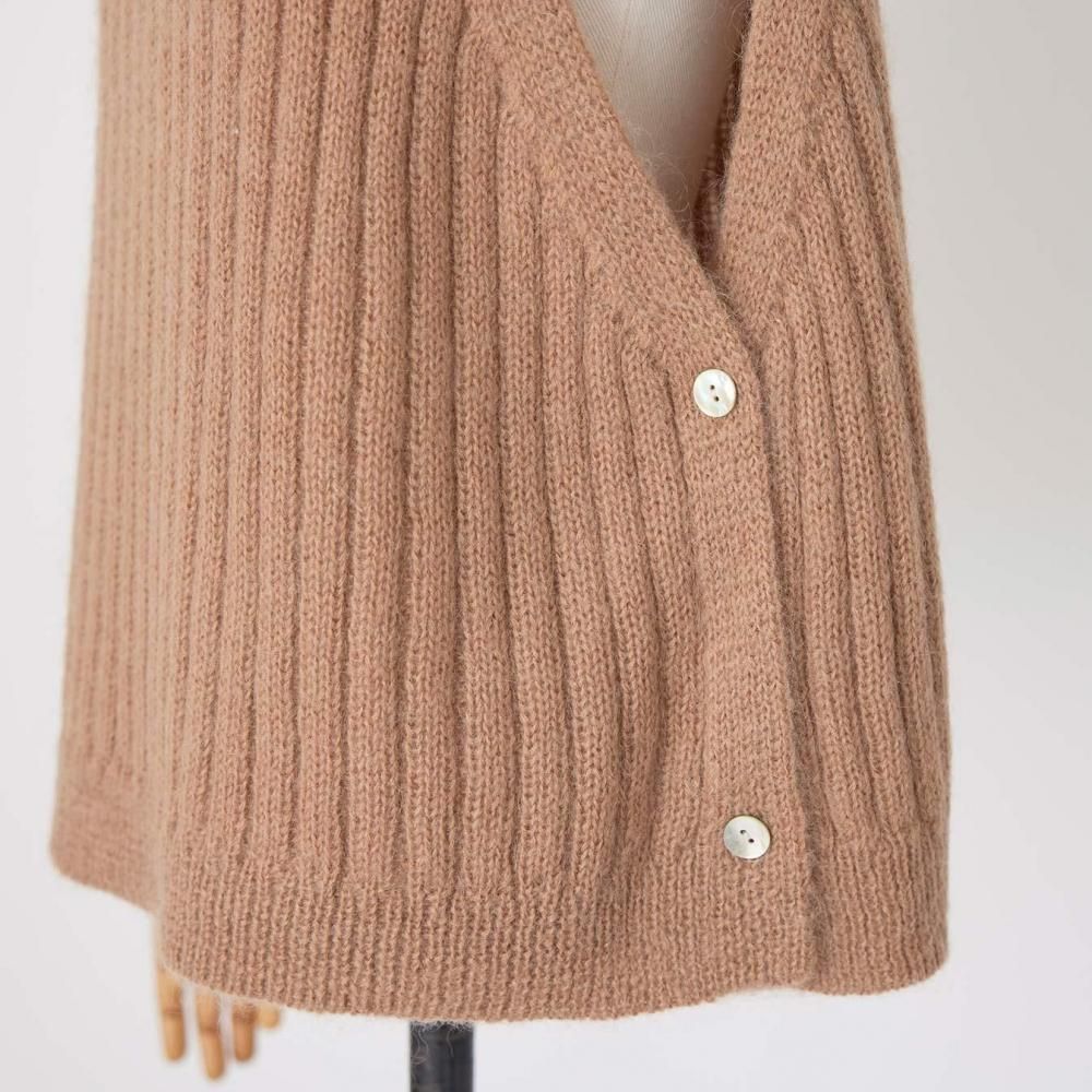 カシミヤのようになめらかで、毛足の長い糸が自然なツヤとやわらかさを生み出す、あたたかみのあるニットベストです。