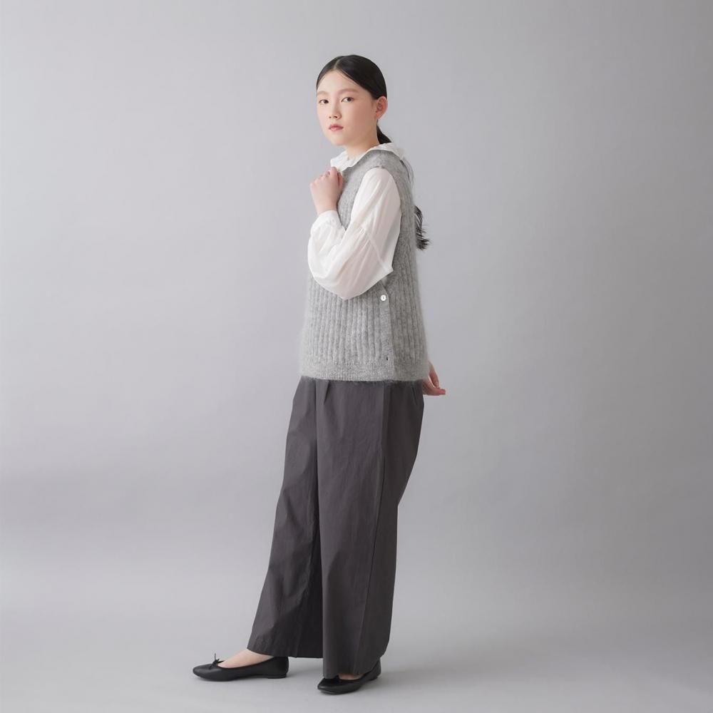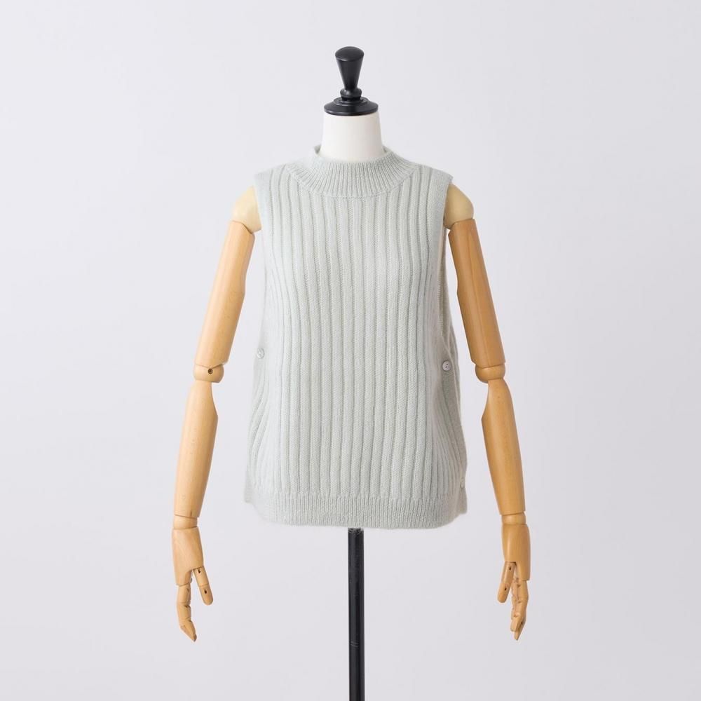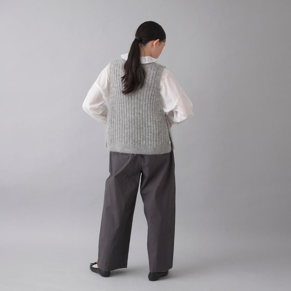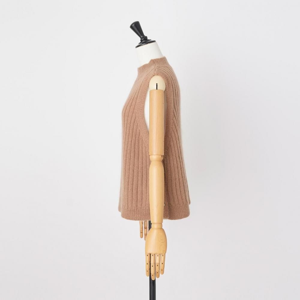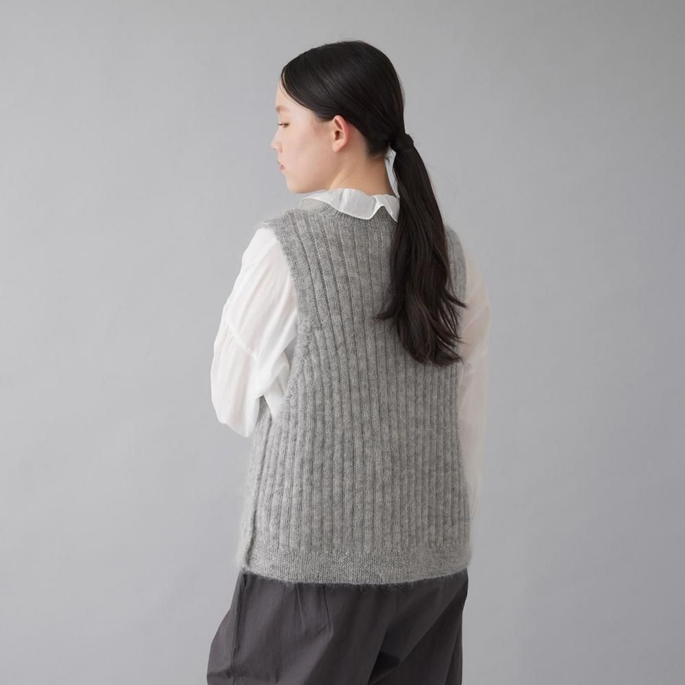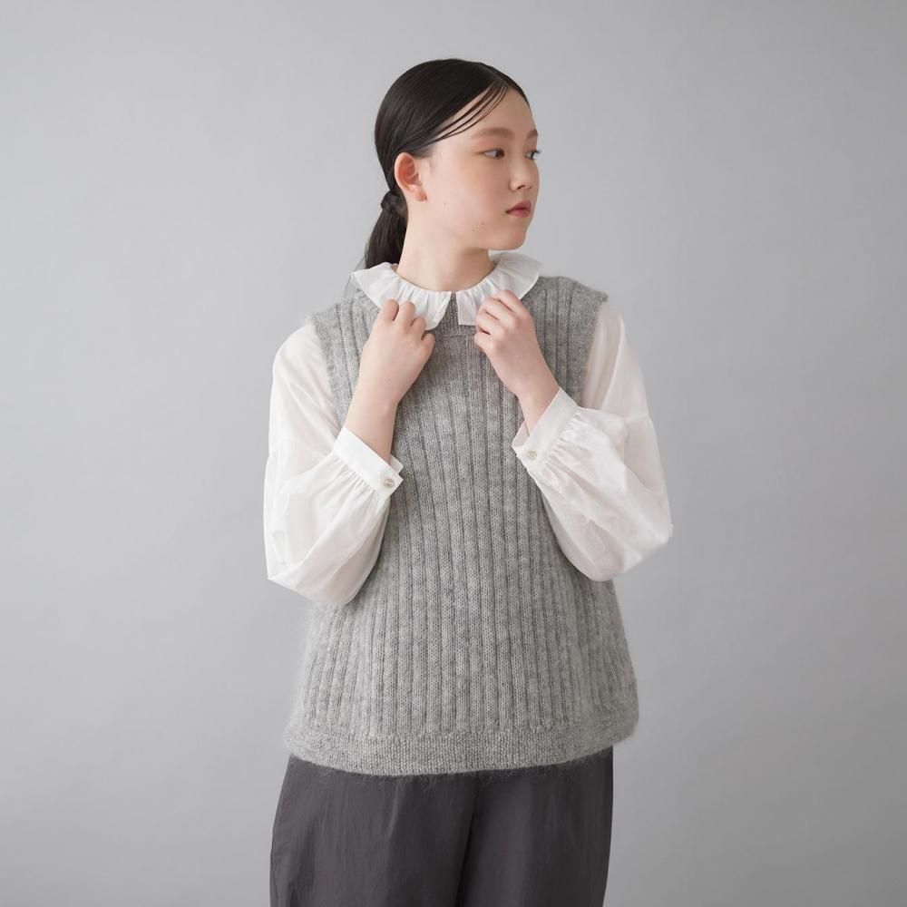 カシミヤのようになめらかで、毛足の長い糸が自然なツヤとやわらかさを生み出す、あたたかみのあるニットベストです。