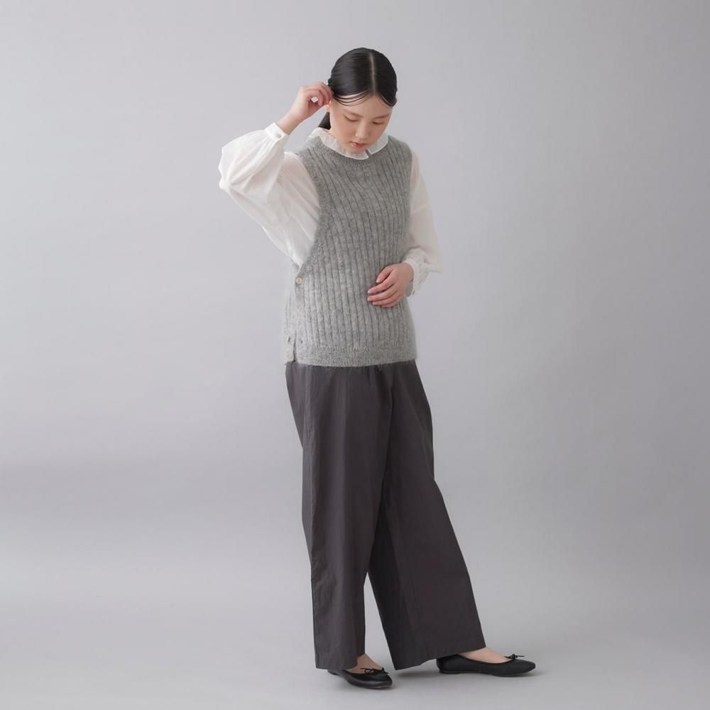 リブ編みの縦ラインがすっきりとした印象をつくり、自然な立体感をプラスします。