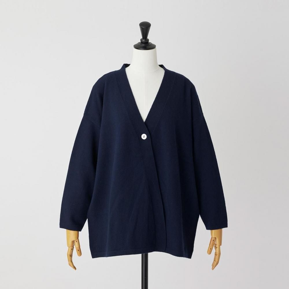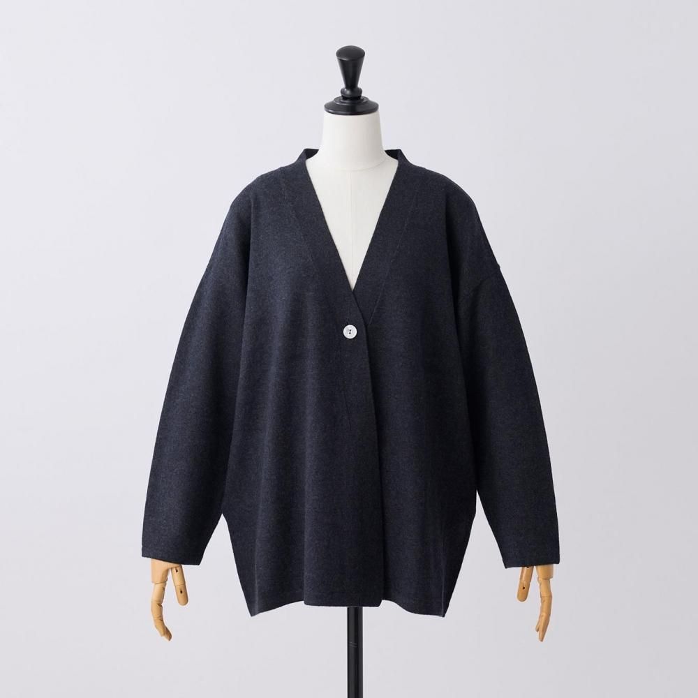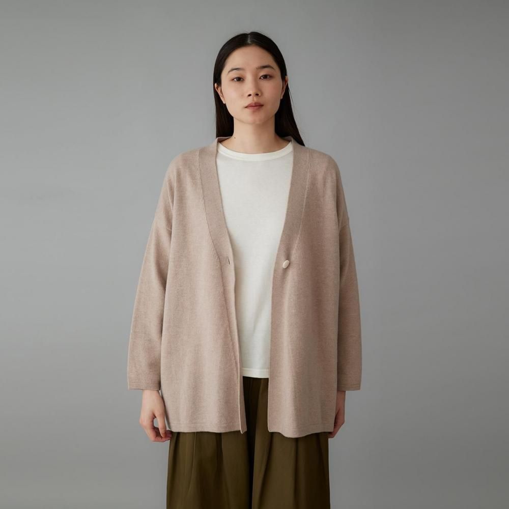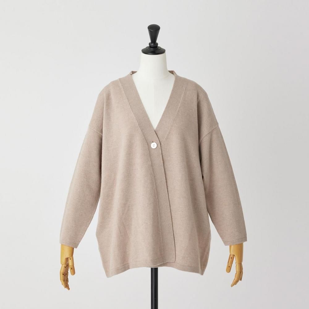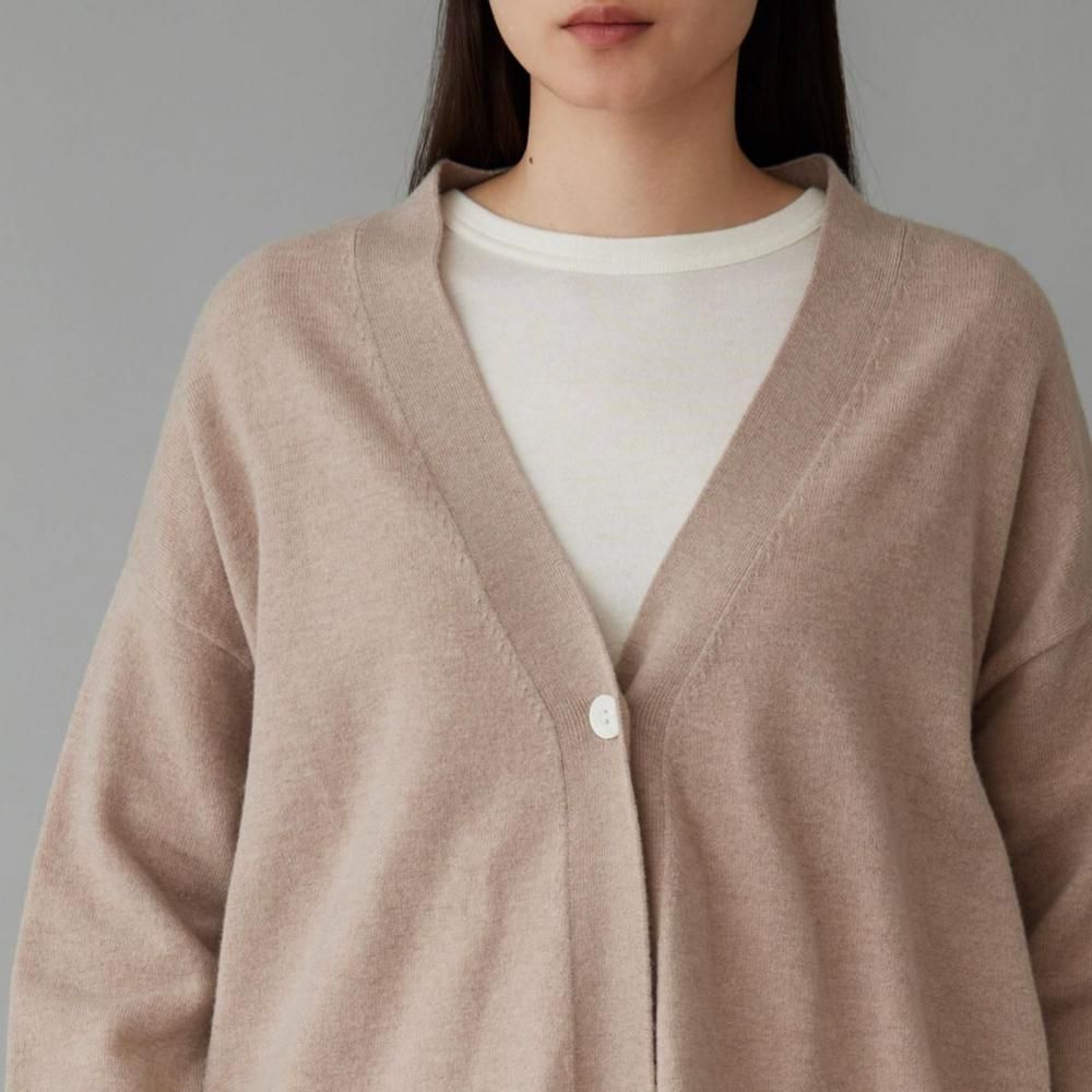 深めのVネックラインと一つボタンのシンプルなデザインで、シーンを選ばず、家の中ではもちろん、旅先や外出先でも活躍します。
