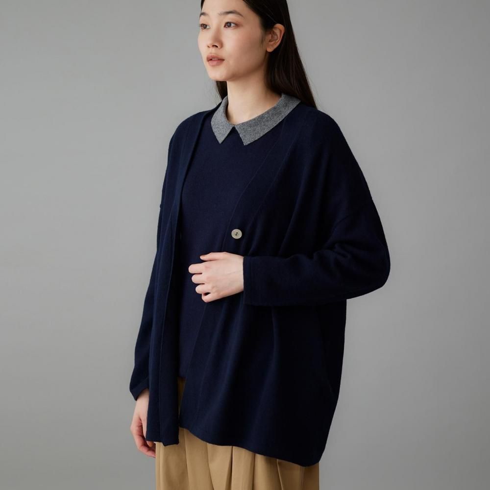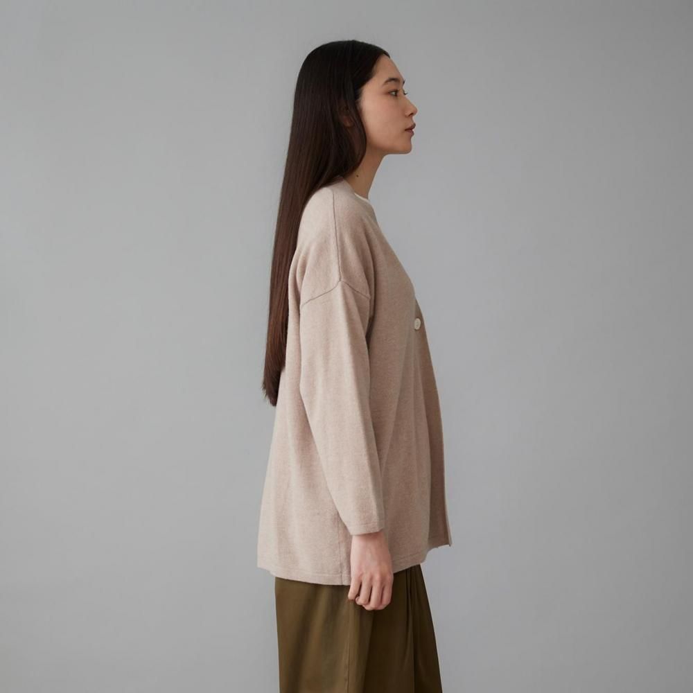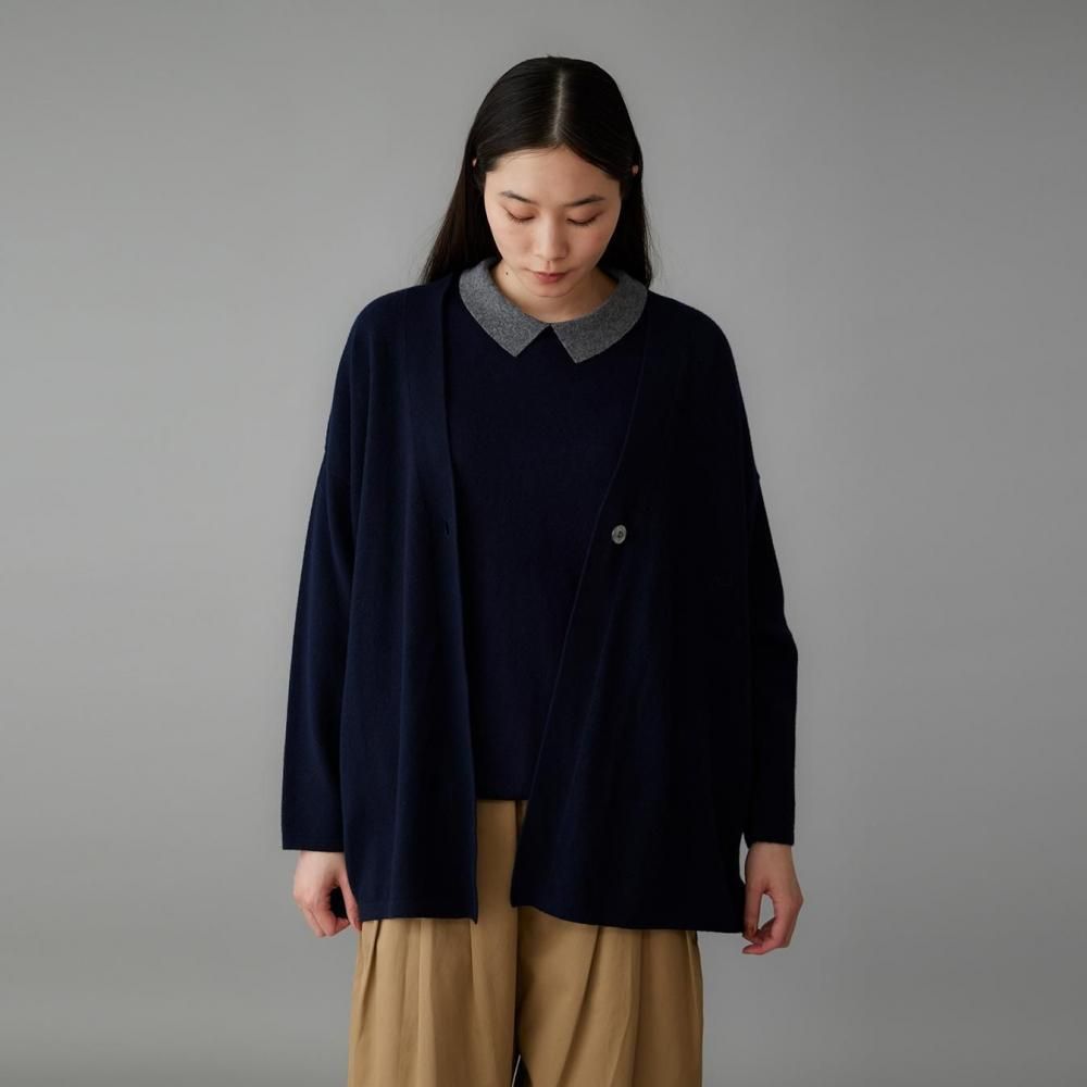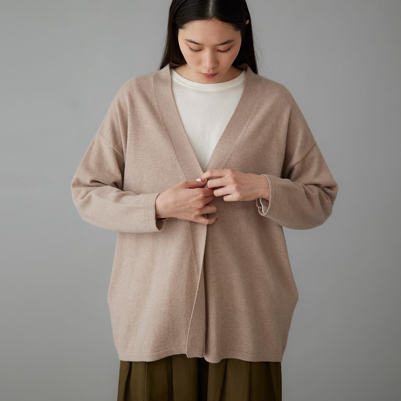 深めのVネックラインと一つボタンのシンプルなデザインで、シーンを選ばず、家の中ではもちろん、旅先や外出先でも活躍します。