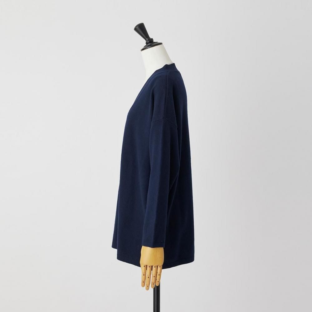セミ梳毛糸ならではのなめらかさと、ふんわりとした風合いで、リラックス感のある着心地に仕上げました。