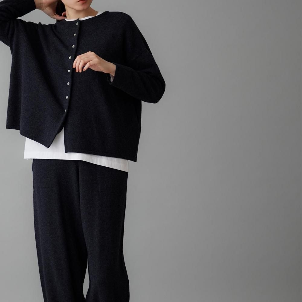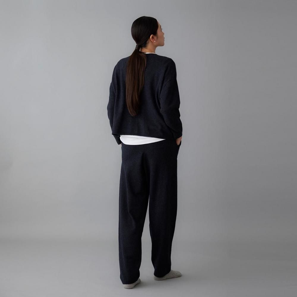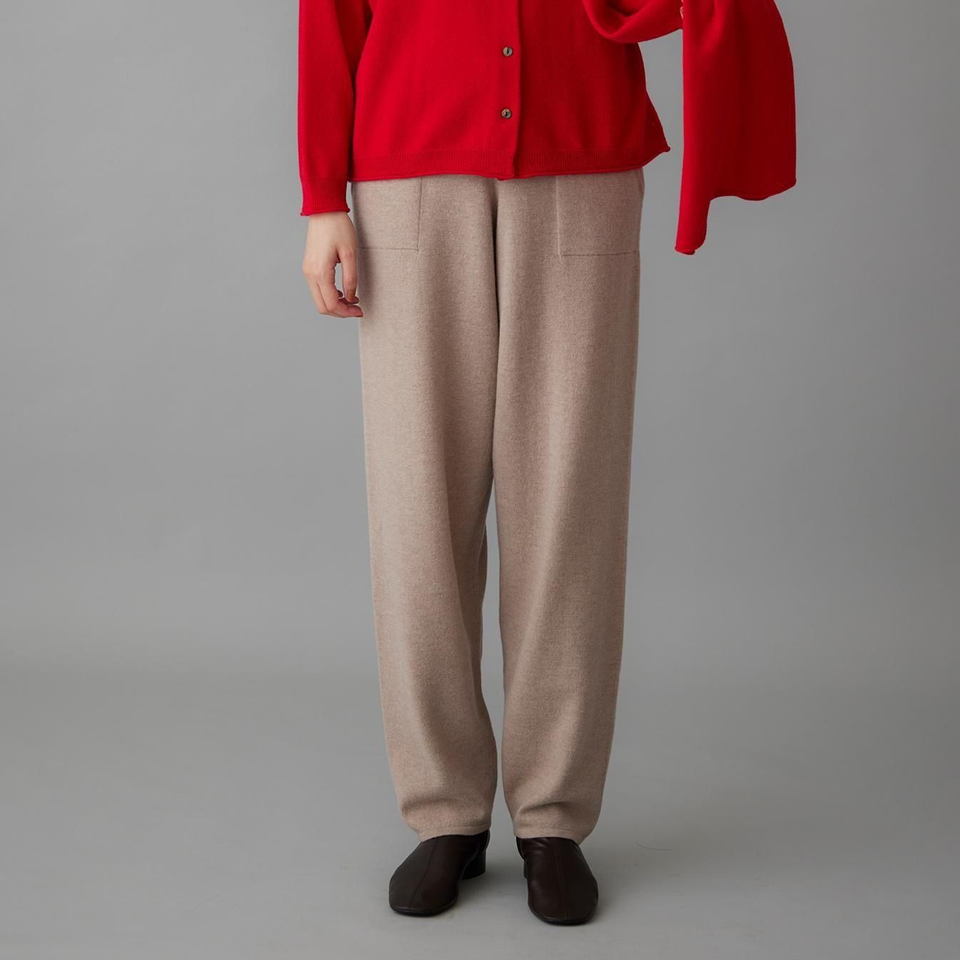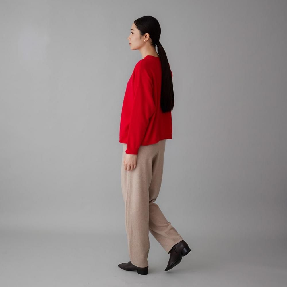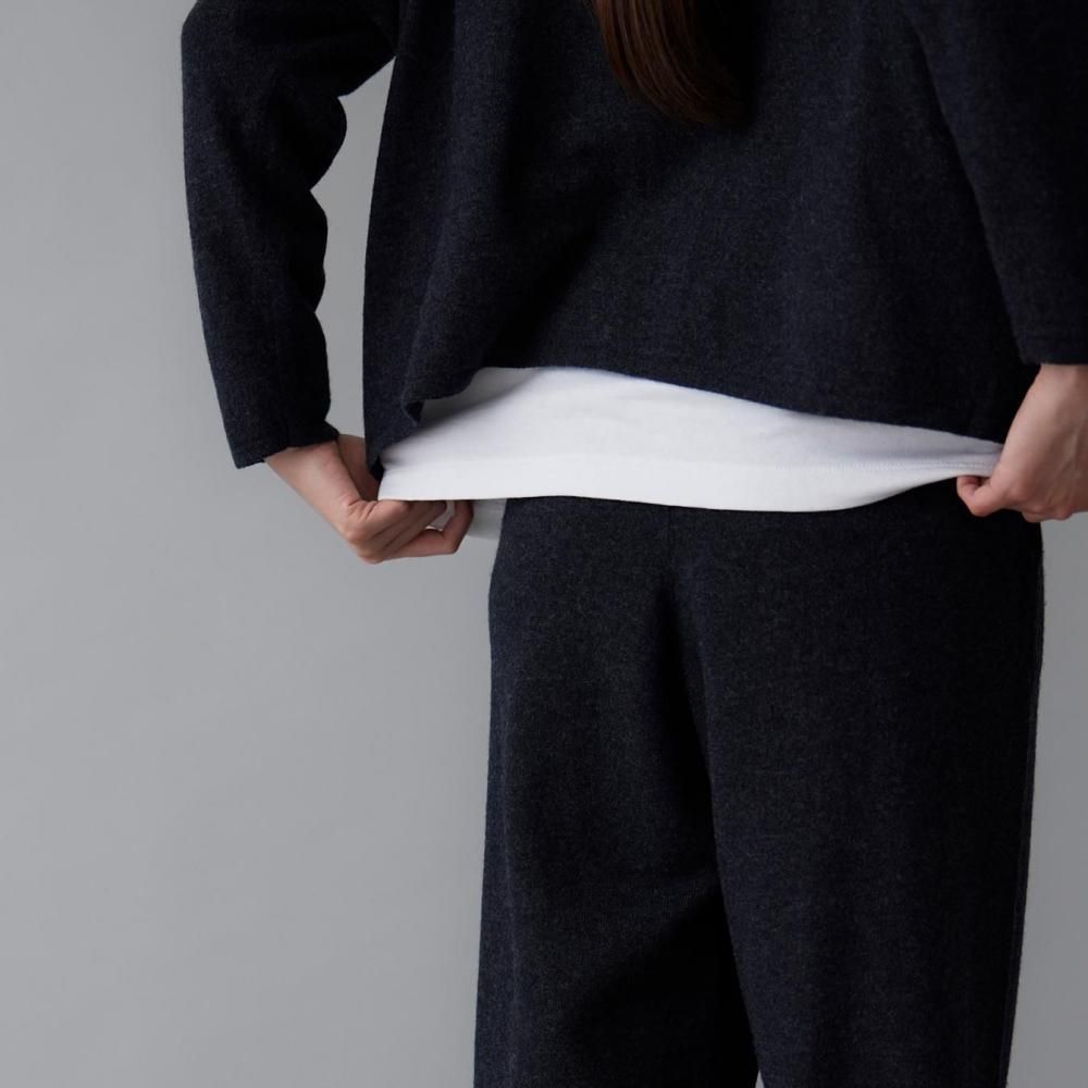 ヒップまわりにゆとりを持たせながらも、落ち感のある編地でルーズになりすぎない印象に仕上げました。