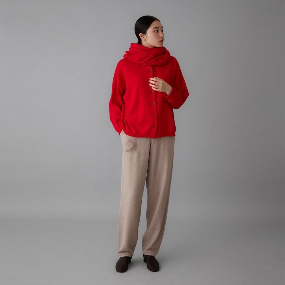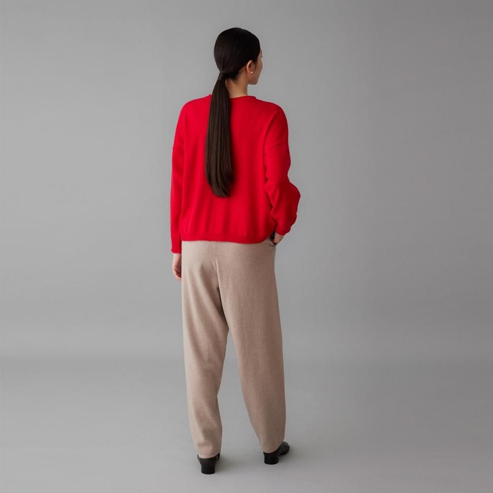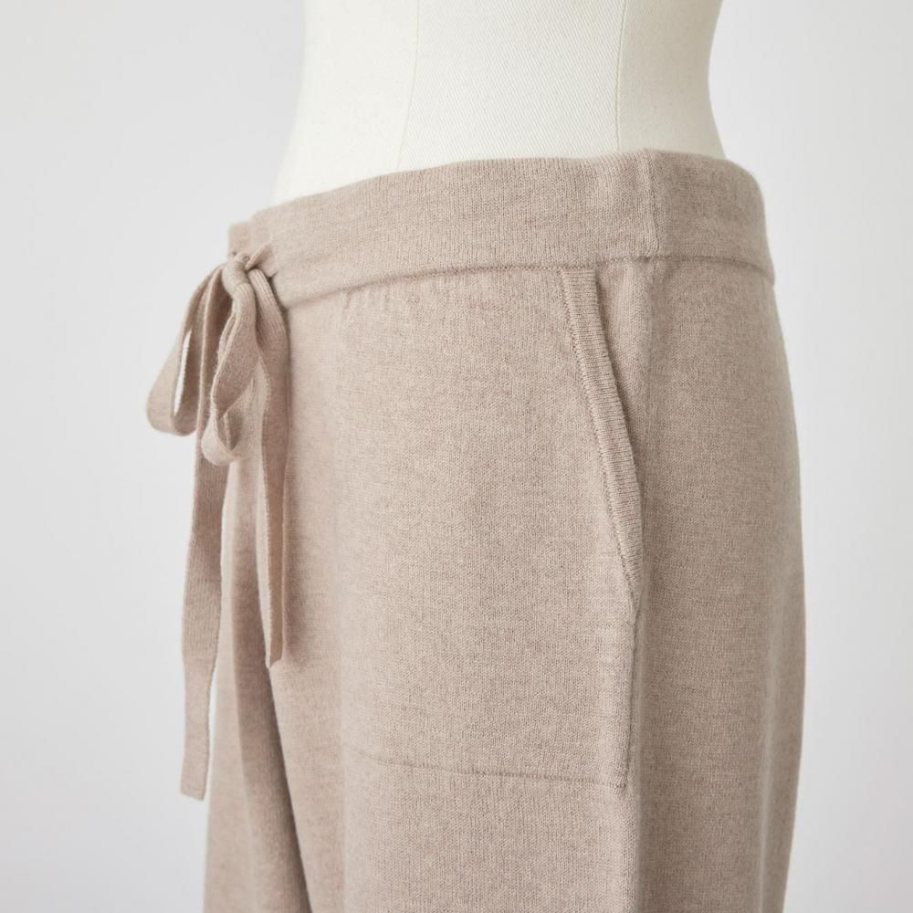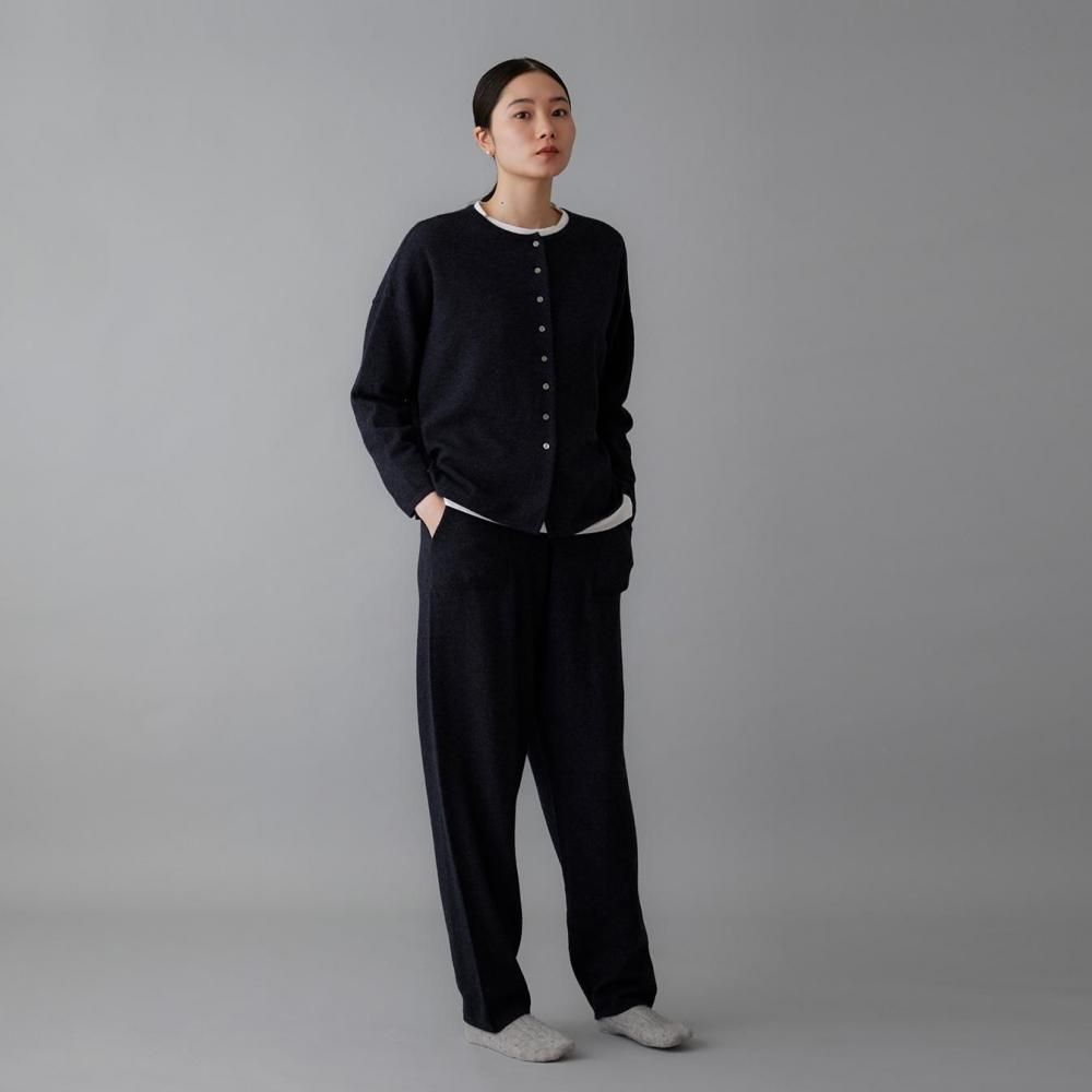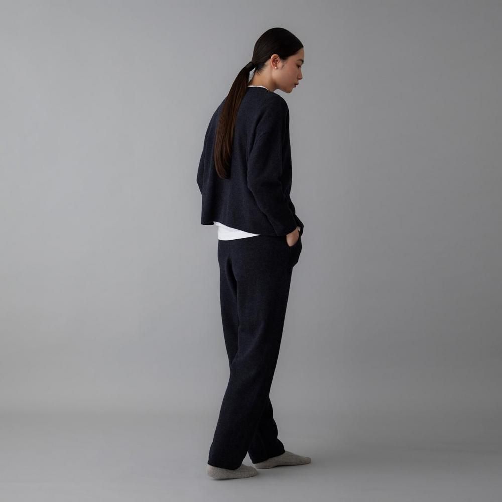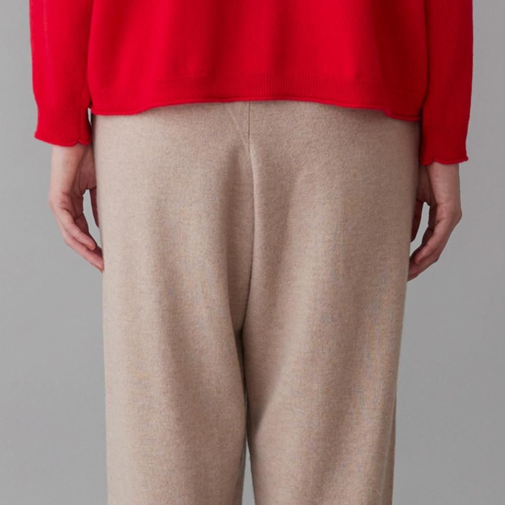 ヒップまわりにゆとりを持たせながらも、落ち感のある編地でルーズになりすぎない印象に仕上げました。