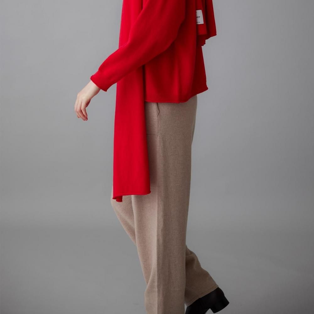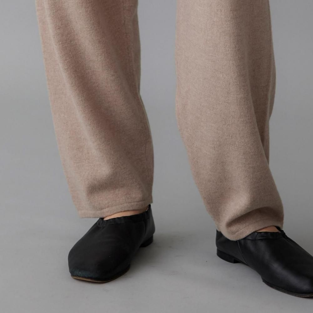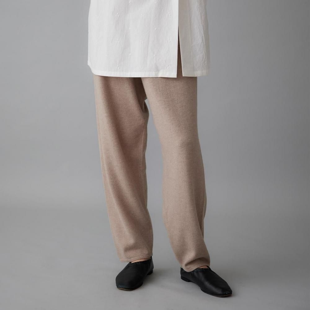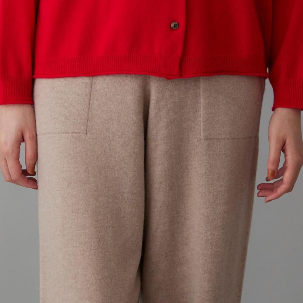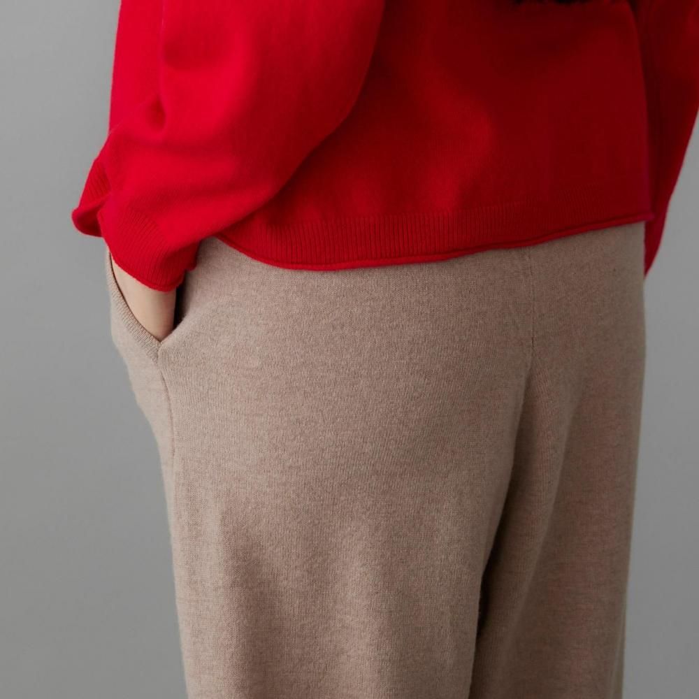 ヒップまわりにゆとりを持たせながらも、落ち感のある編地でルーズになりすぎない印象に仕上げました。