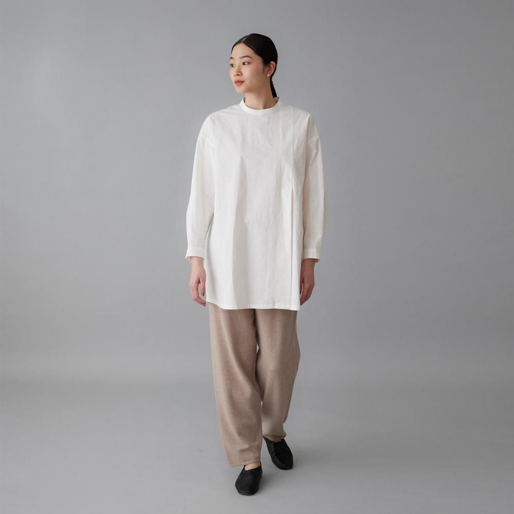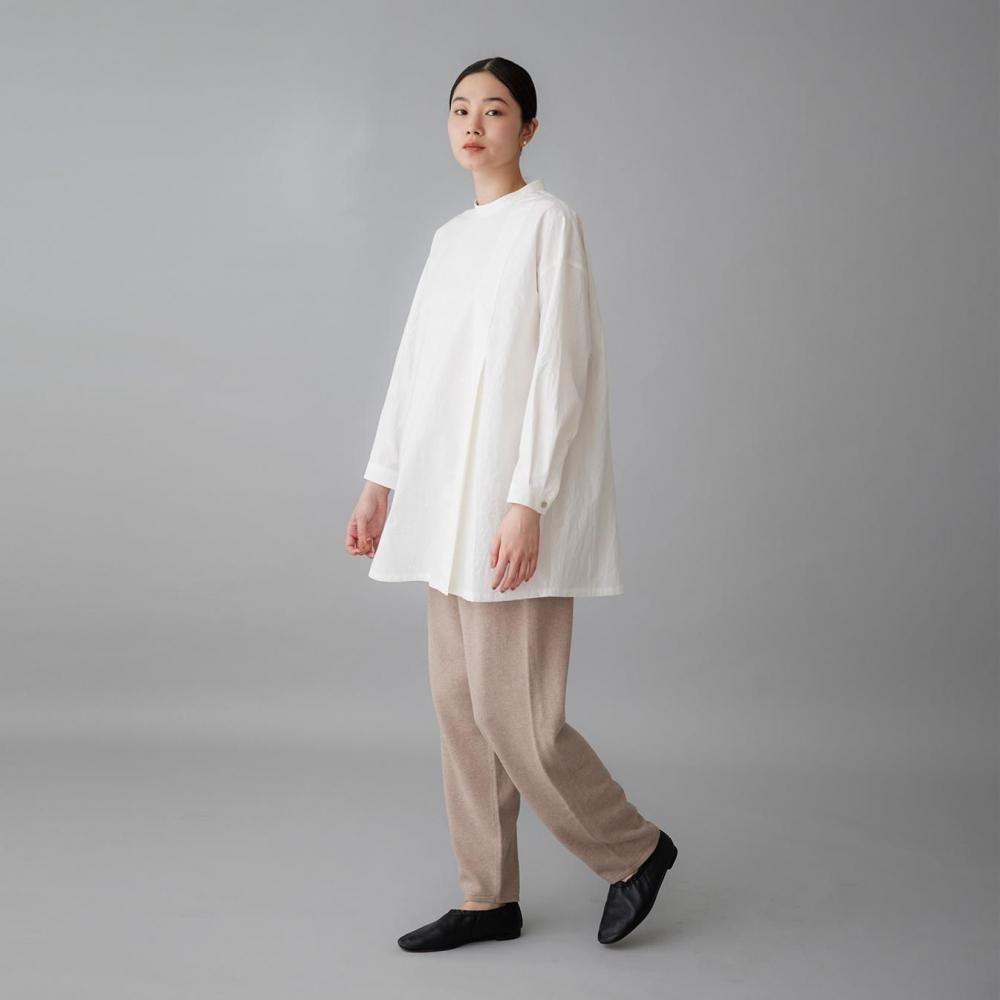 パンツは特にシルエットにこだわり、裾に向かってやや細みにすることで、すっきりとしたラインに仕上げました。