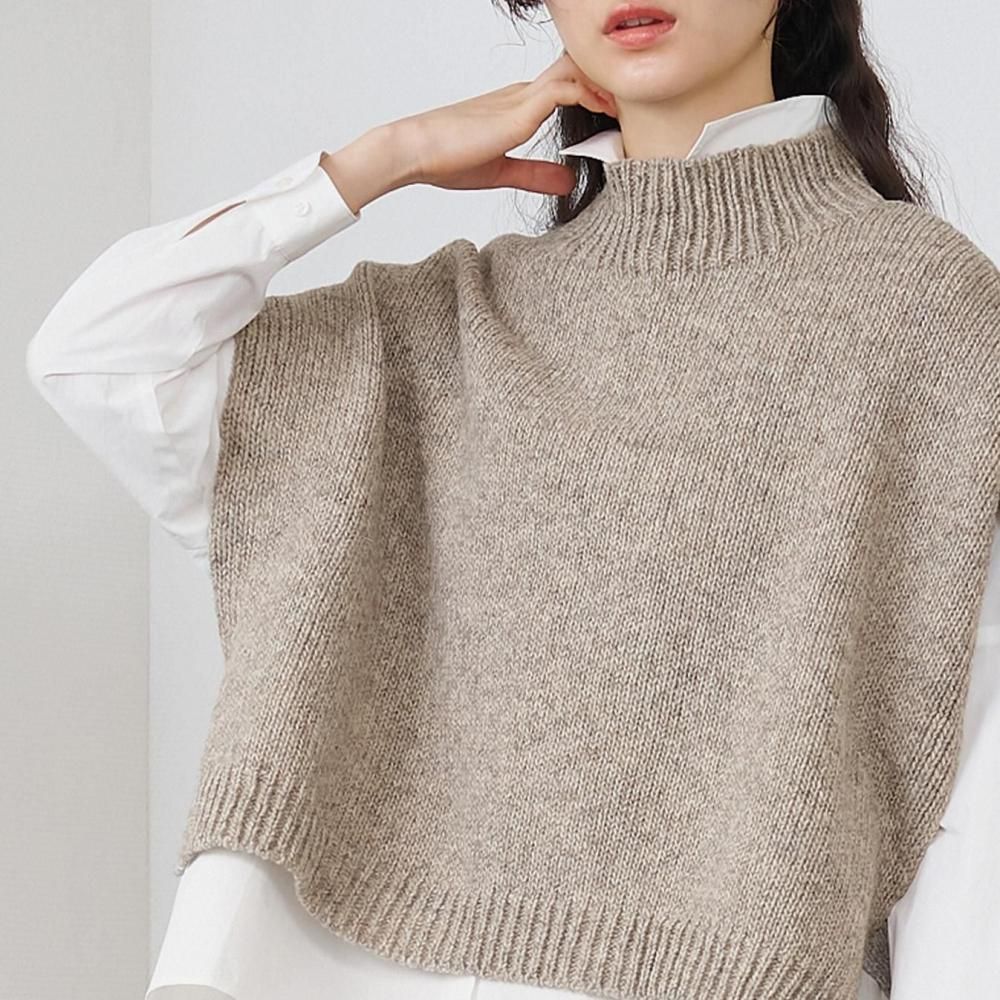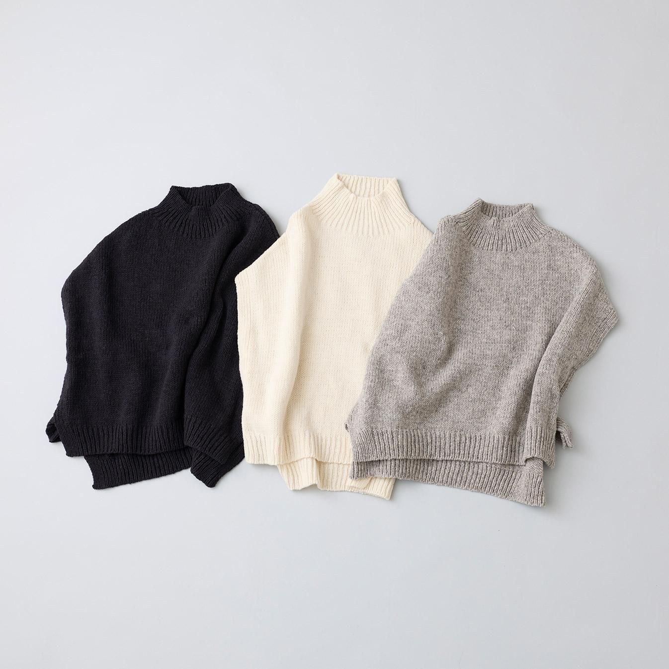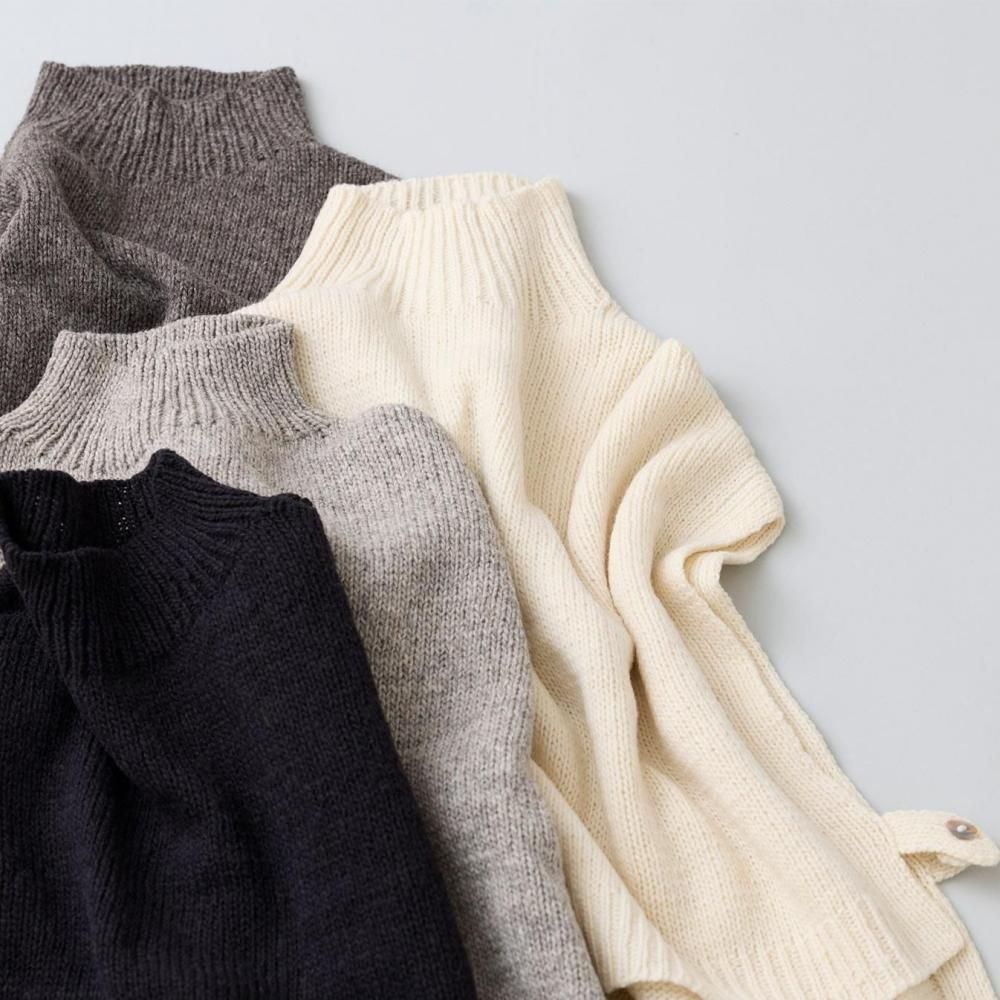 ゆるやかなモックネックとリラックス感のあるシルエットで、シャツやワンピースなど、どんなインナーにもさっと重ねるだけで、あたたかみのあるレイヤードスタイルが楽しめます。