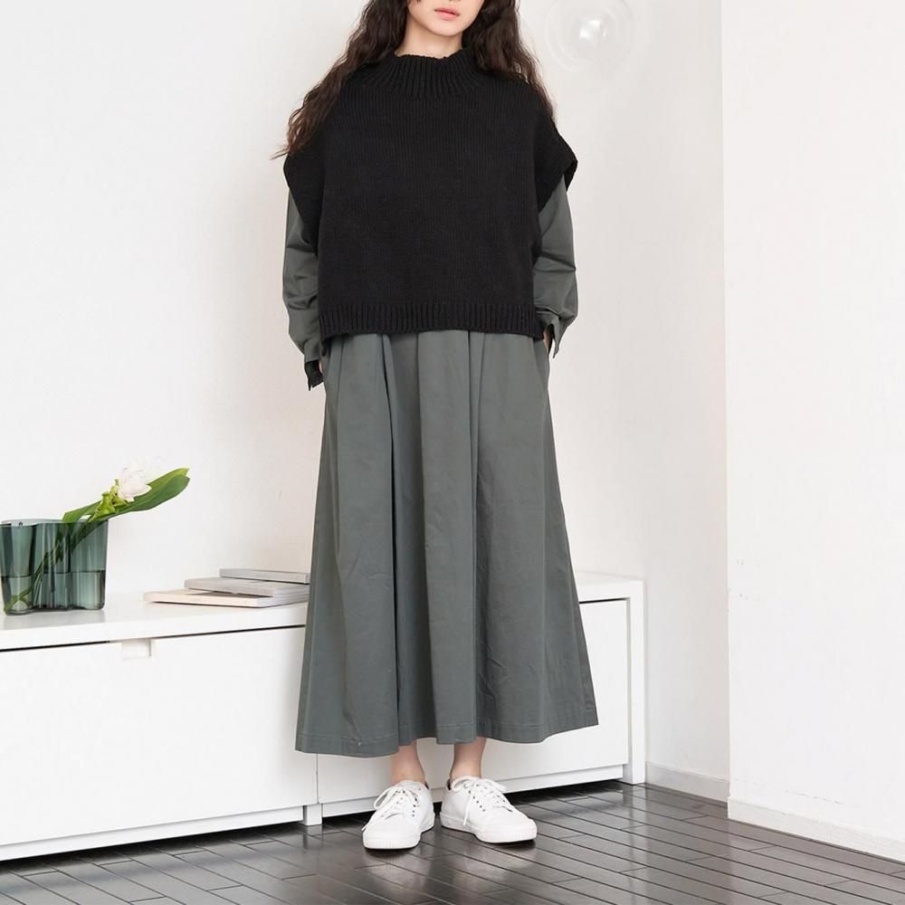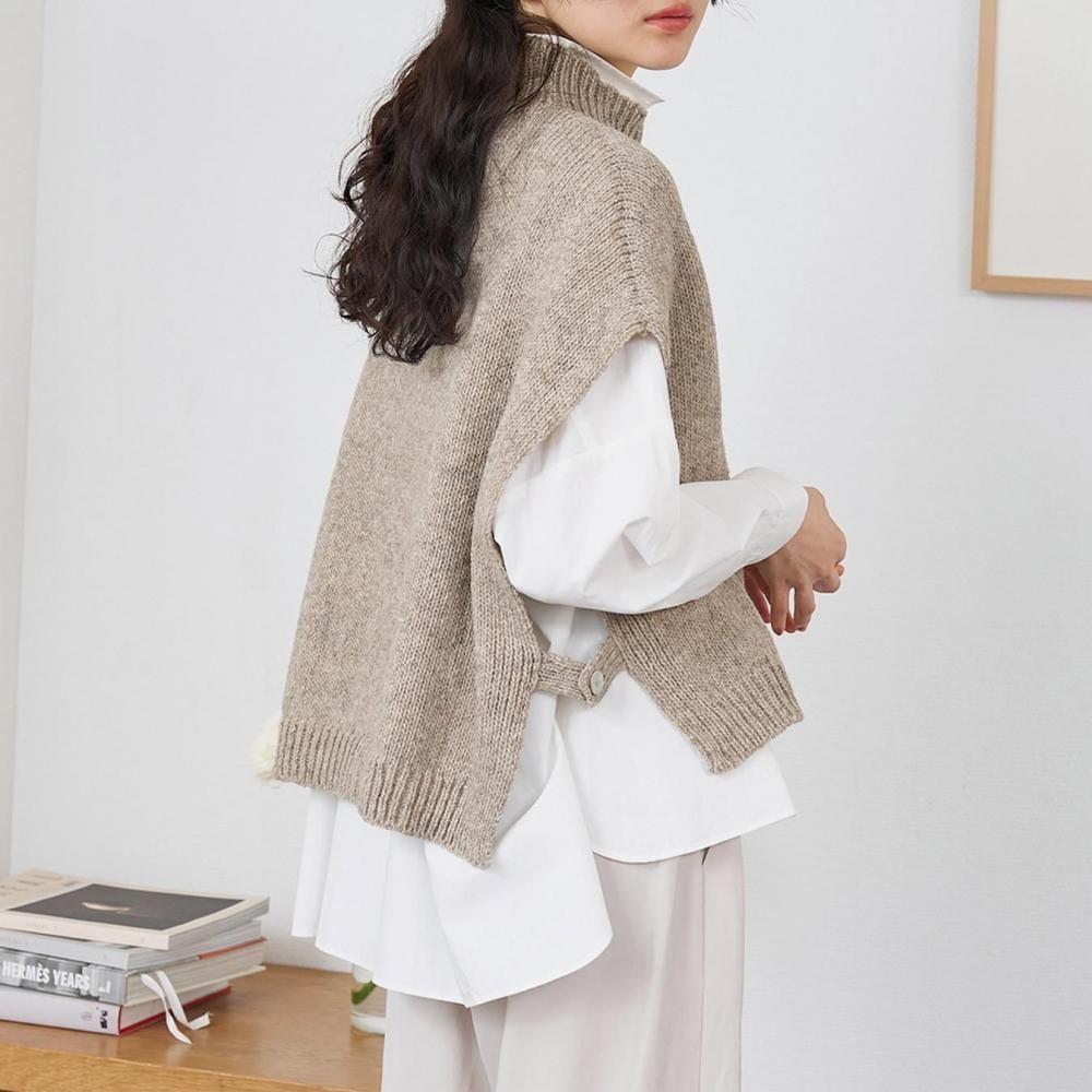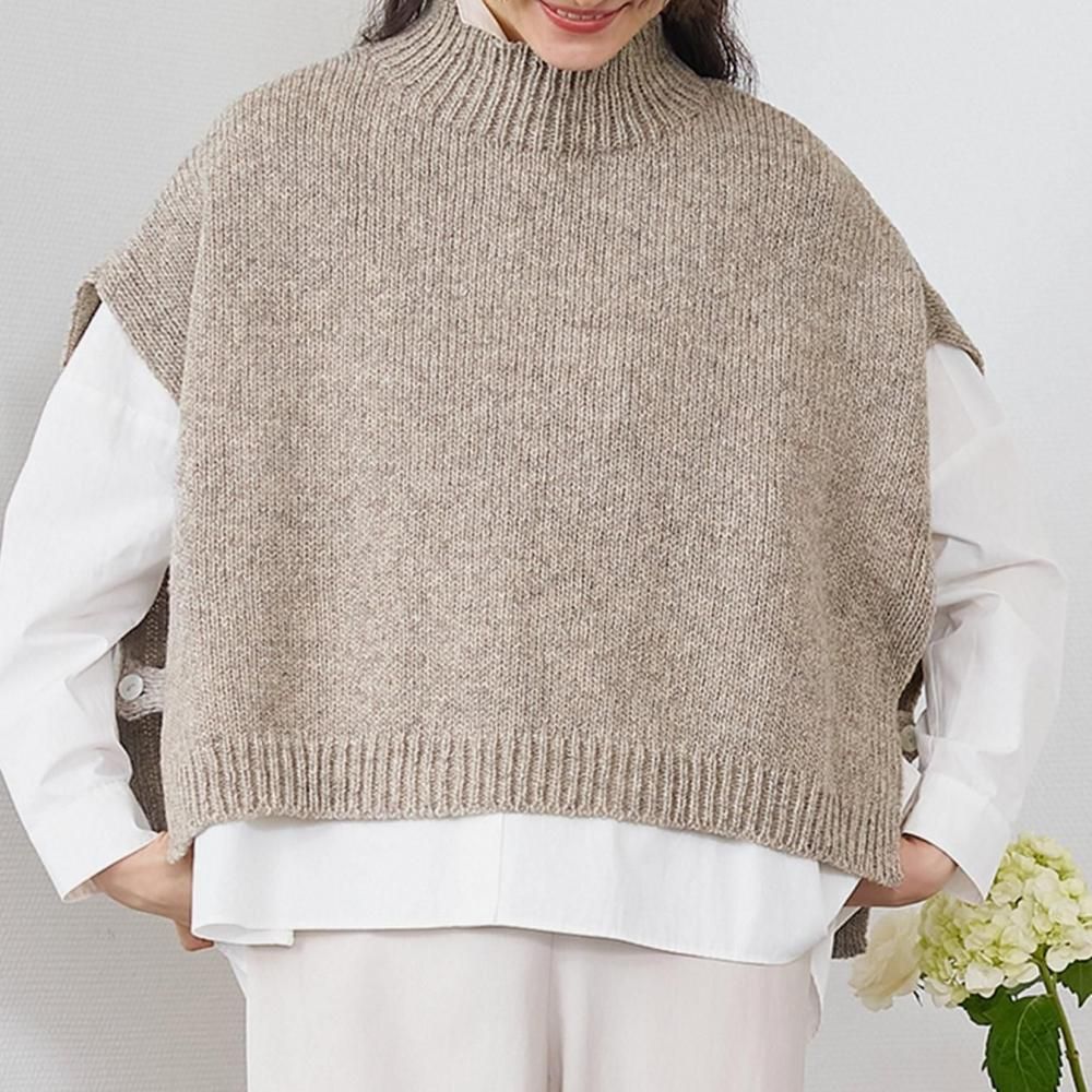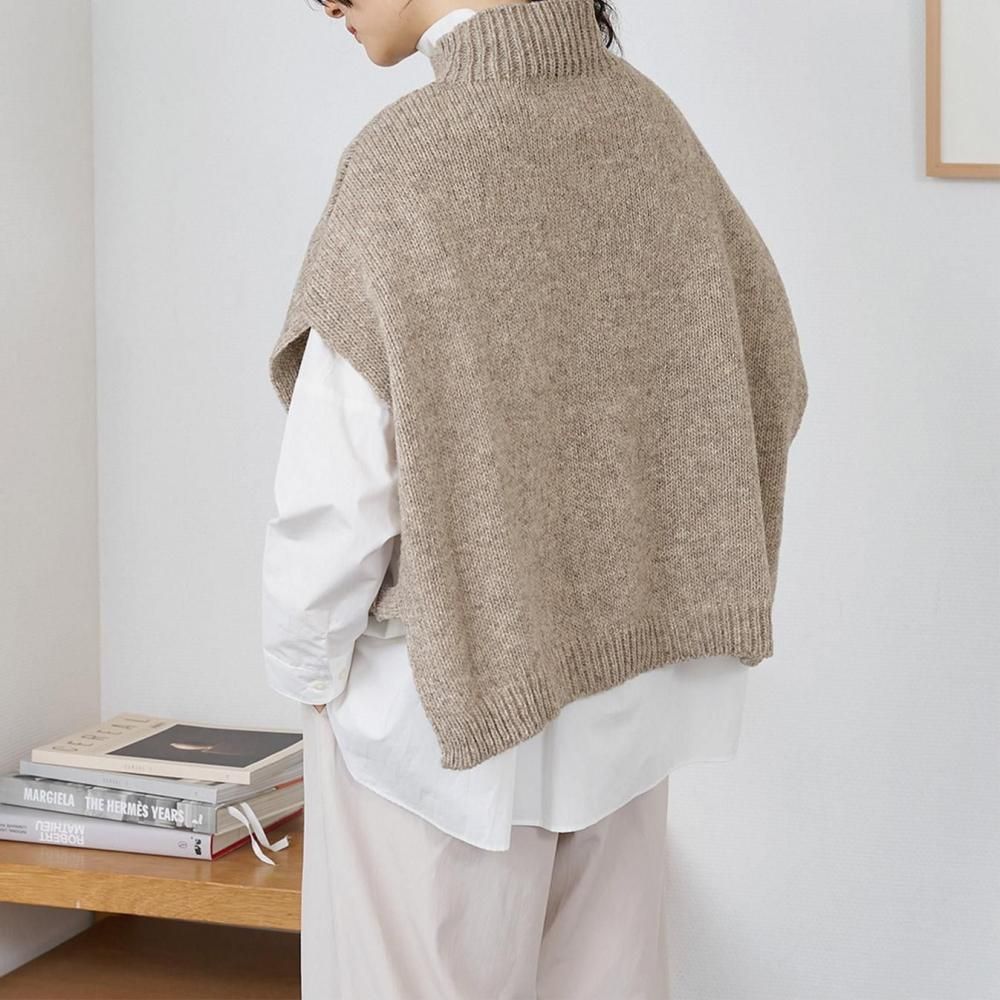 ゆるやかなモックネックとリラックス感のあるシルエットで、シャツやワンピースなど、どんなインナーにもさっと重ねるだけで、あたたかみのあるレイヤードスタイルが楽しめます。