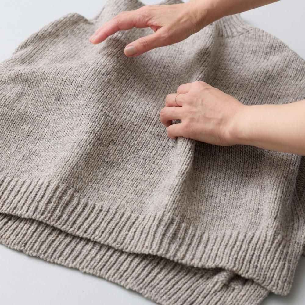 家庭用編み機ならではの、やわらかな編み立てで、包み込まれるようなあたたかさも魅力のひとつ。