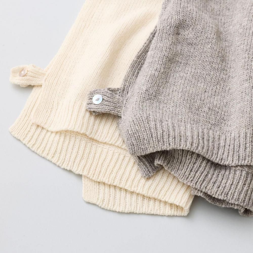 グレージュは、ベージュのやさしさとグレーの落ち着きを兼ね備え、さまざまなスタイルに自然に溶け込むカラーです。糸はミックス糸を使用しているため、編み地に自然な表情が生まれ、奥行きのある仕上がりに。