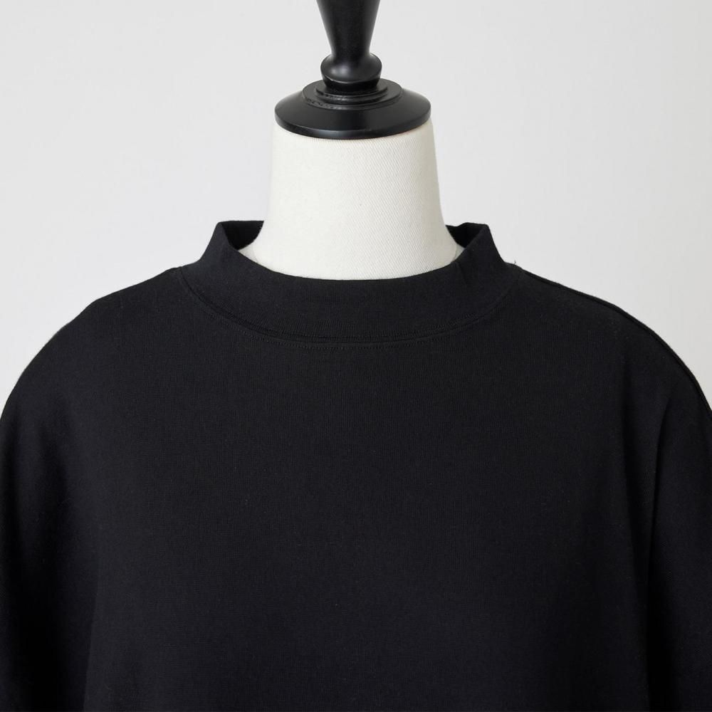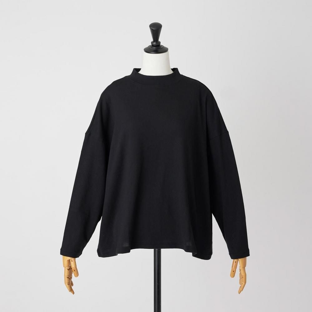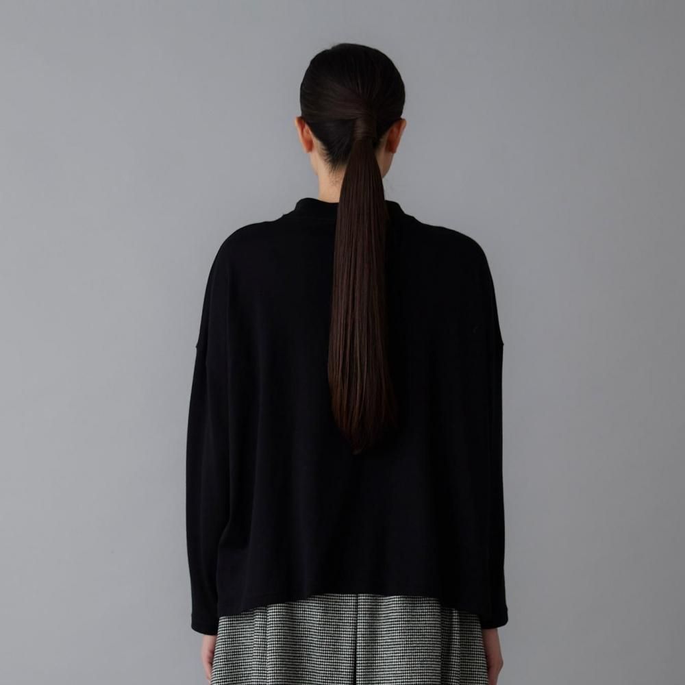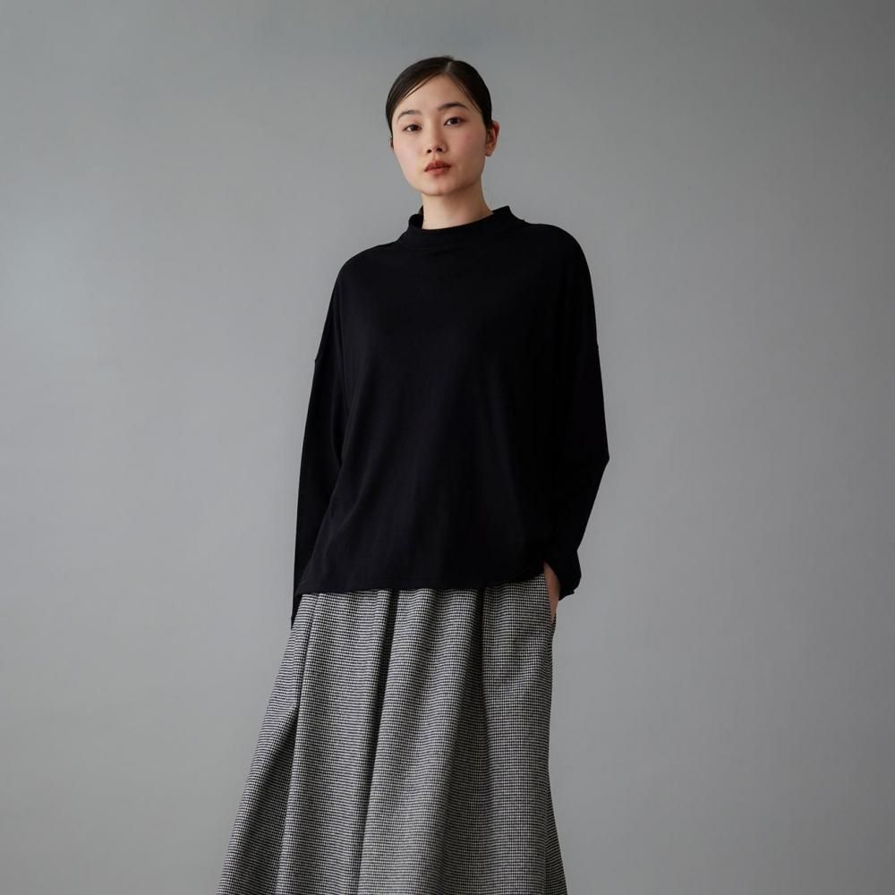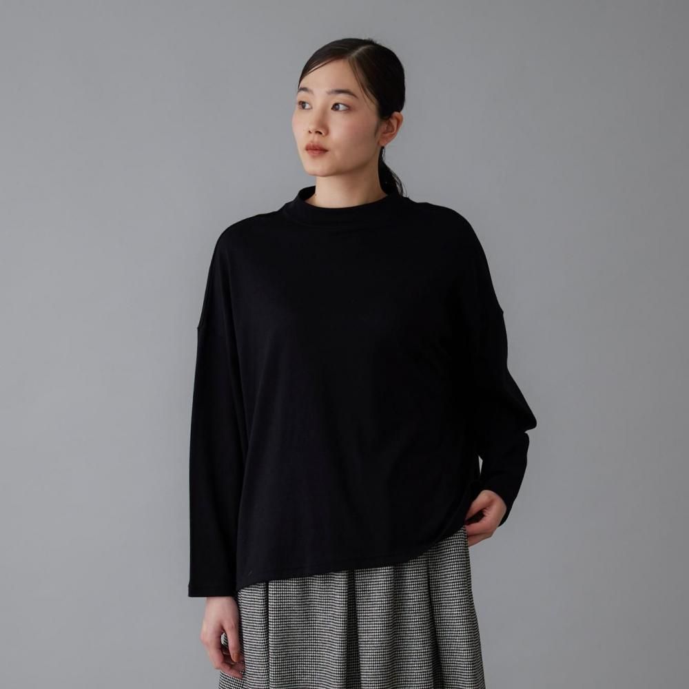 やや立ち上がりのあるモックネックが首元に上品なニュアンスを添え、