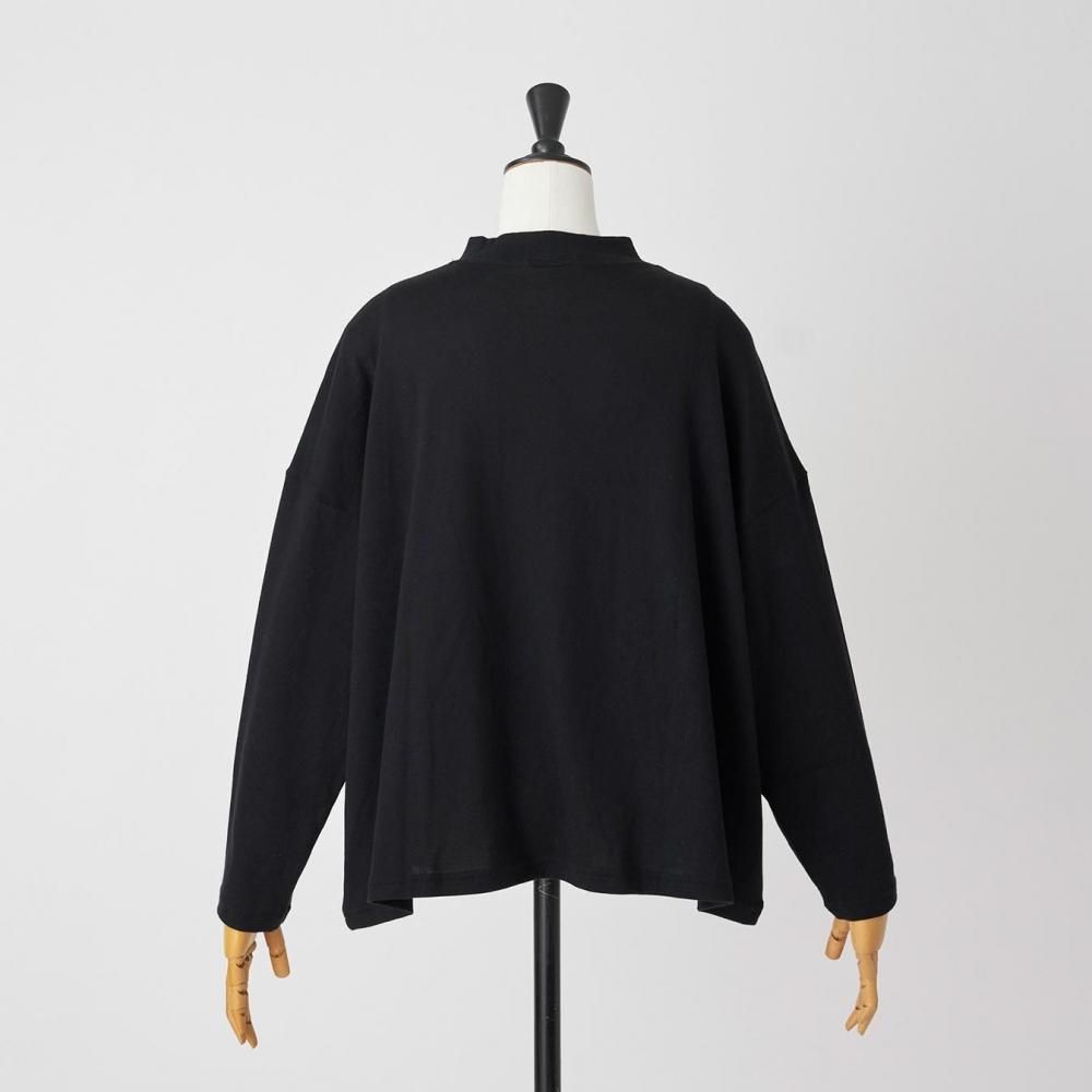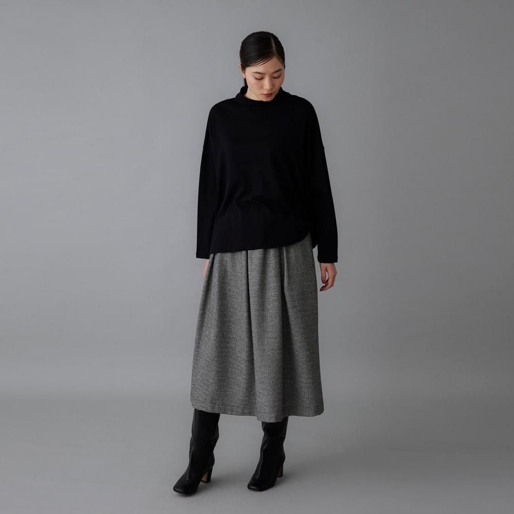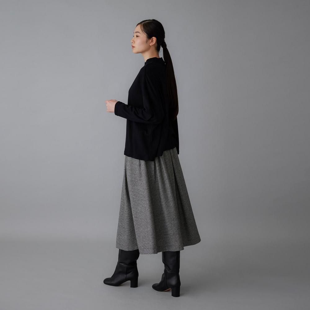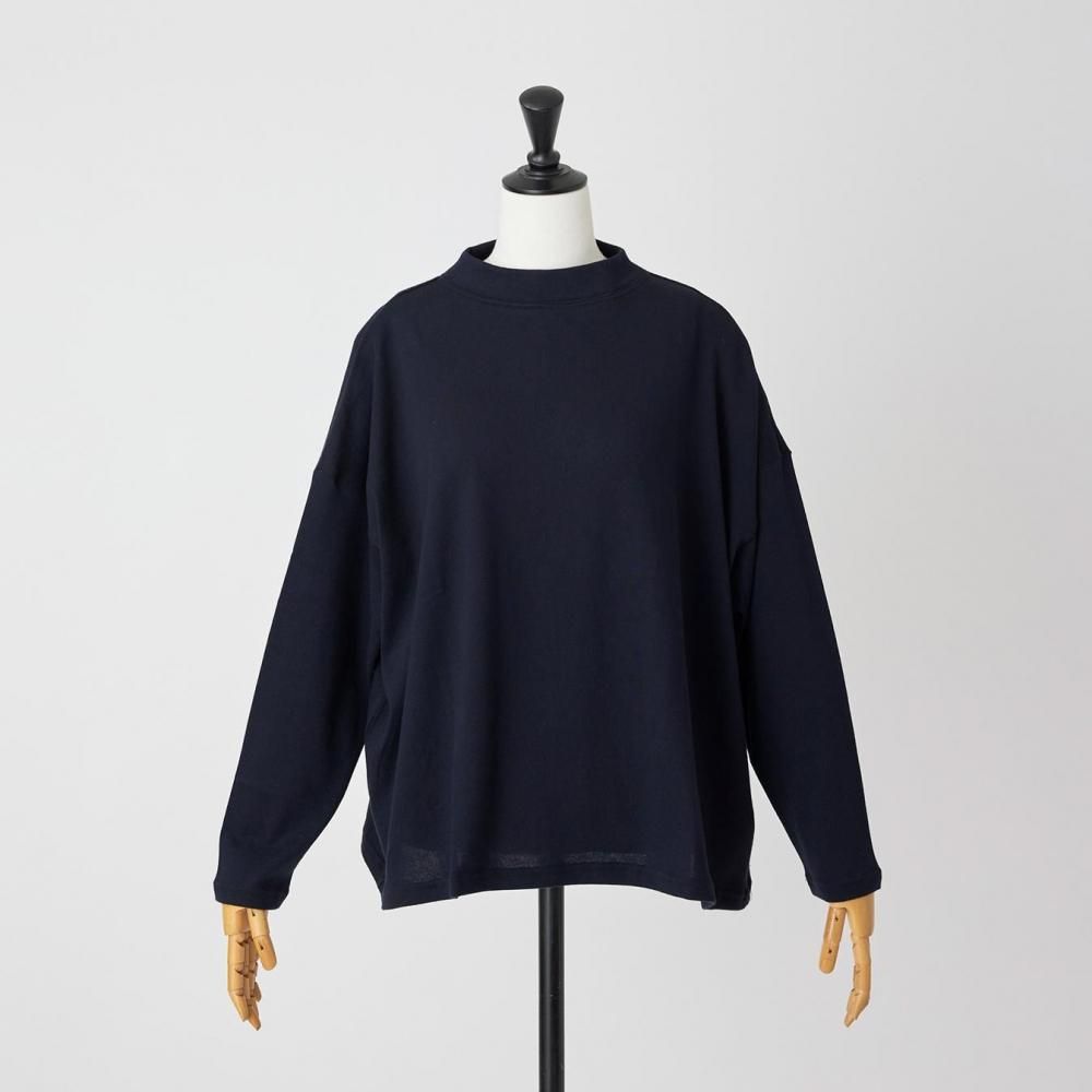 やや立ち上がりのあるモックネックが首元に上品なニュアンスを添え、